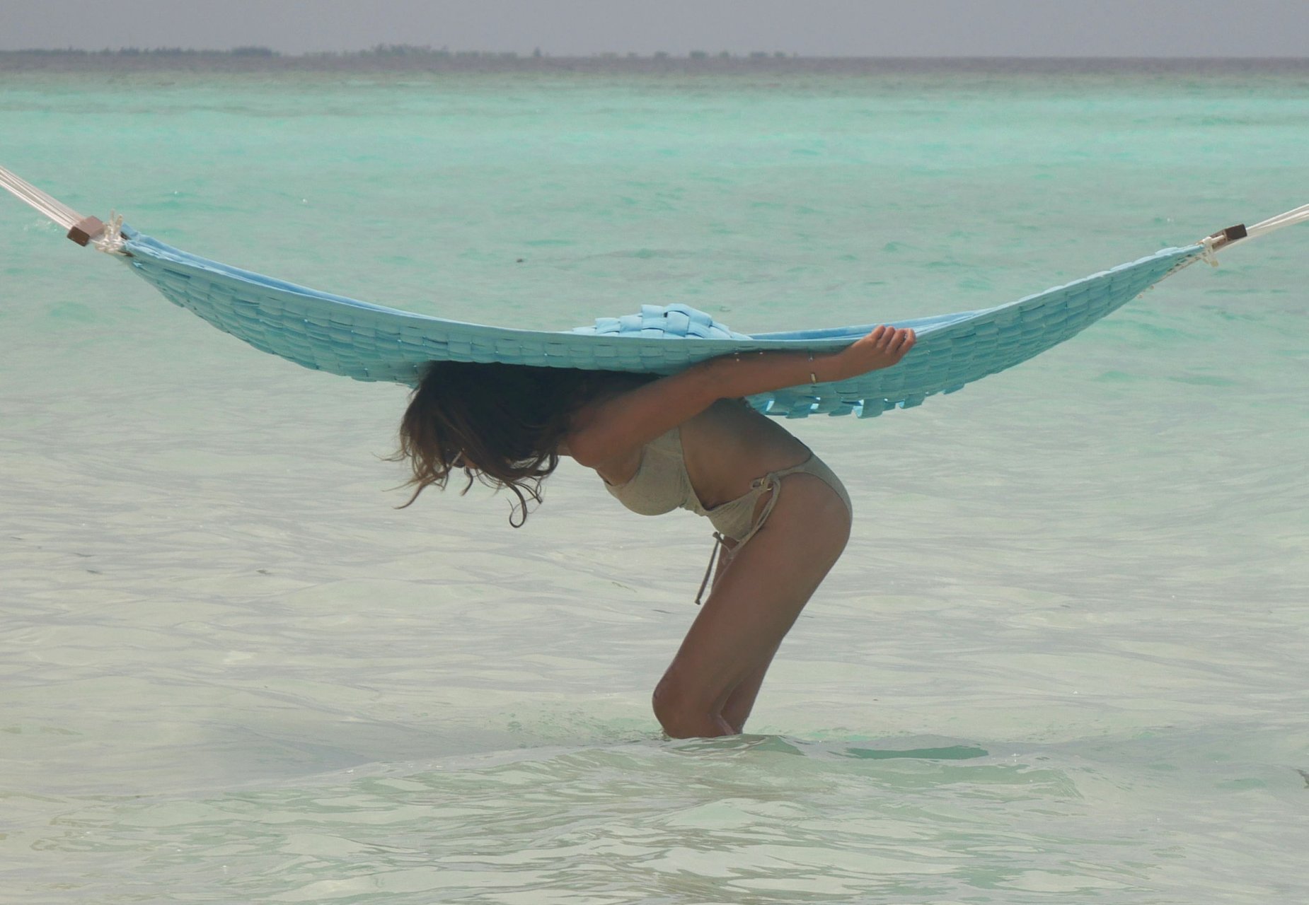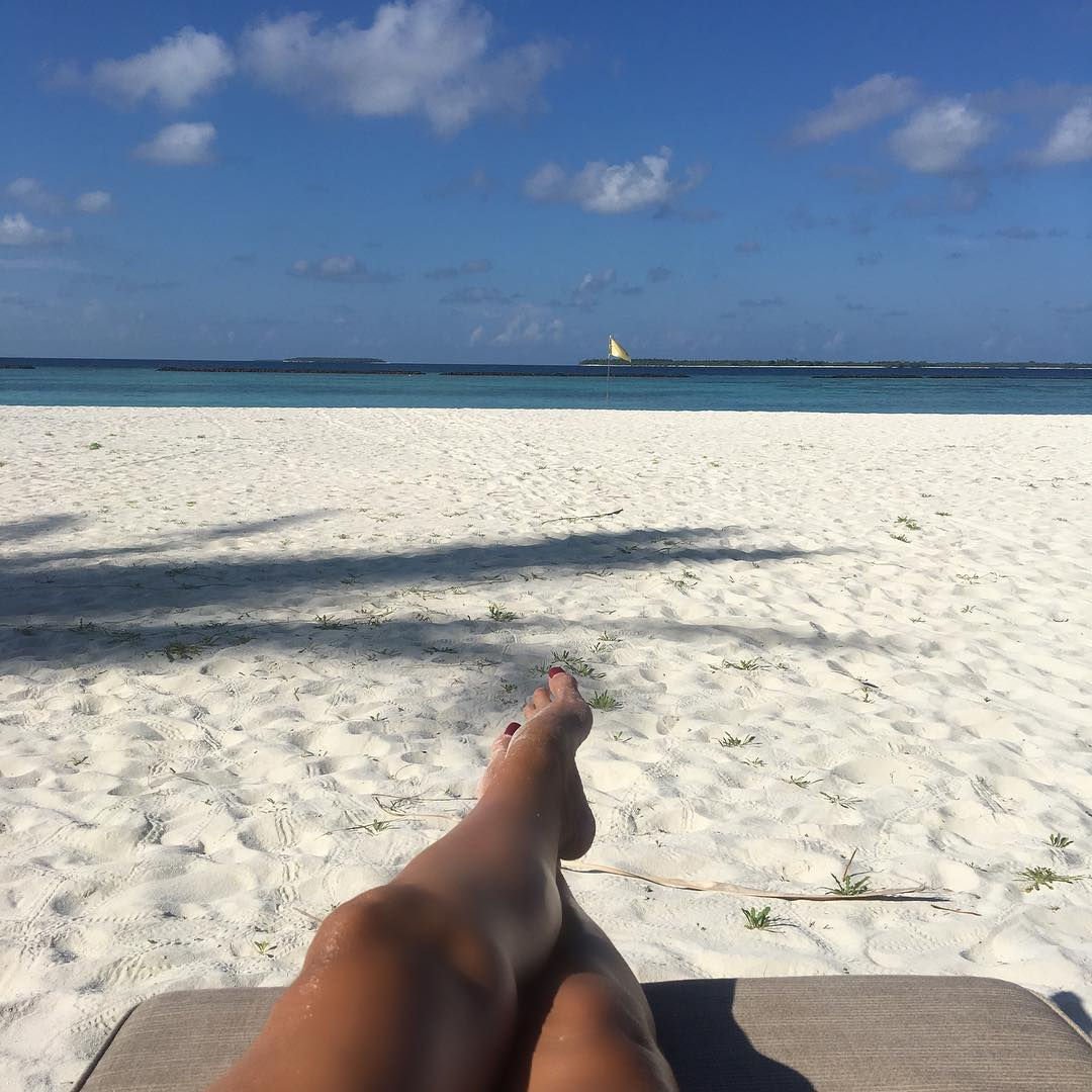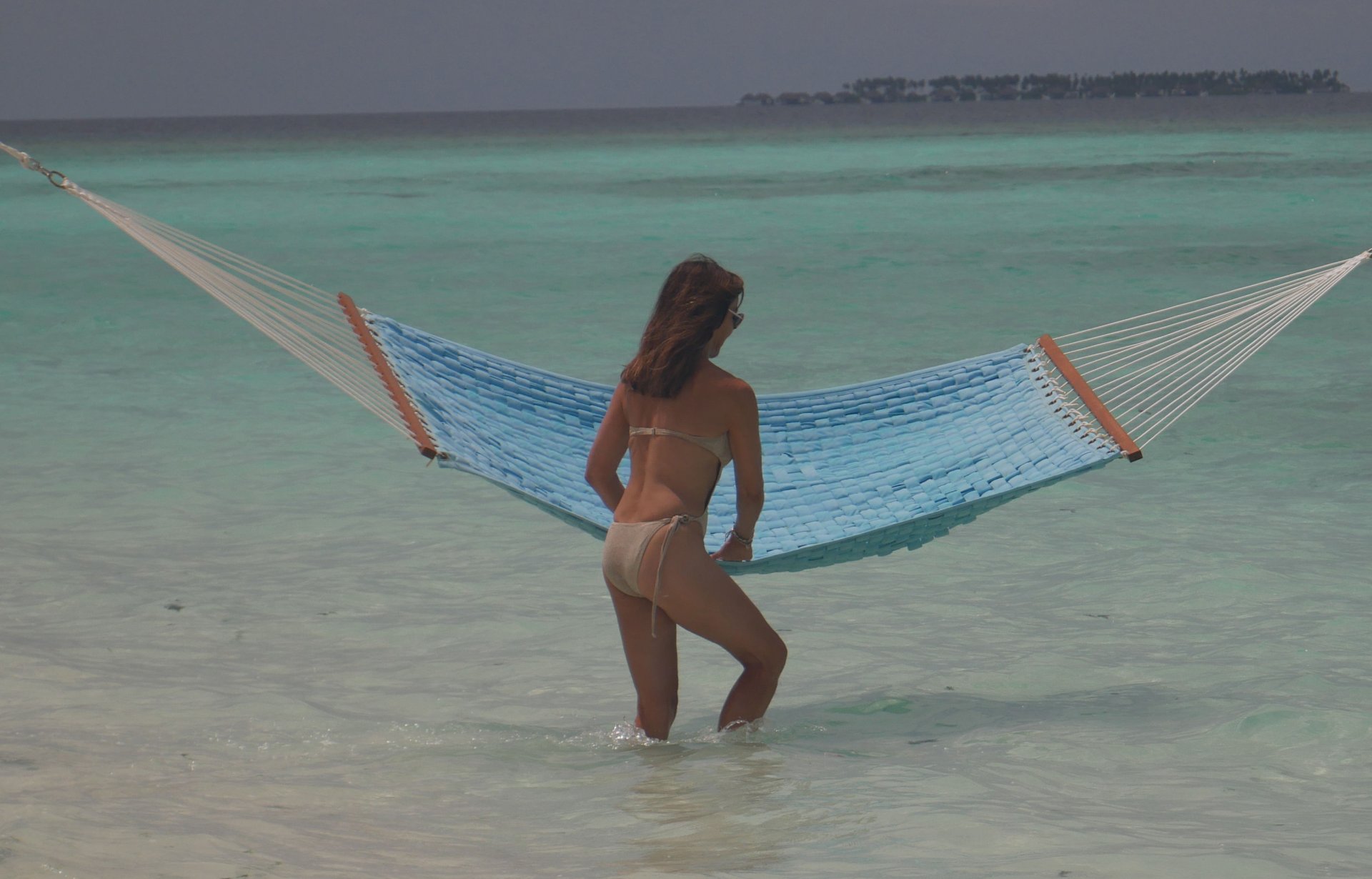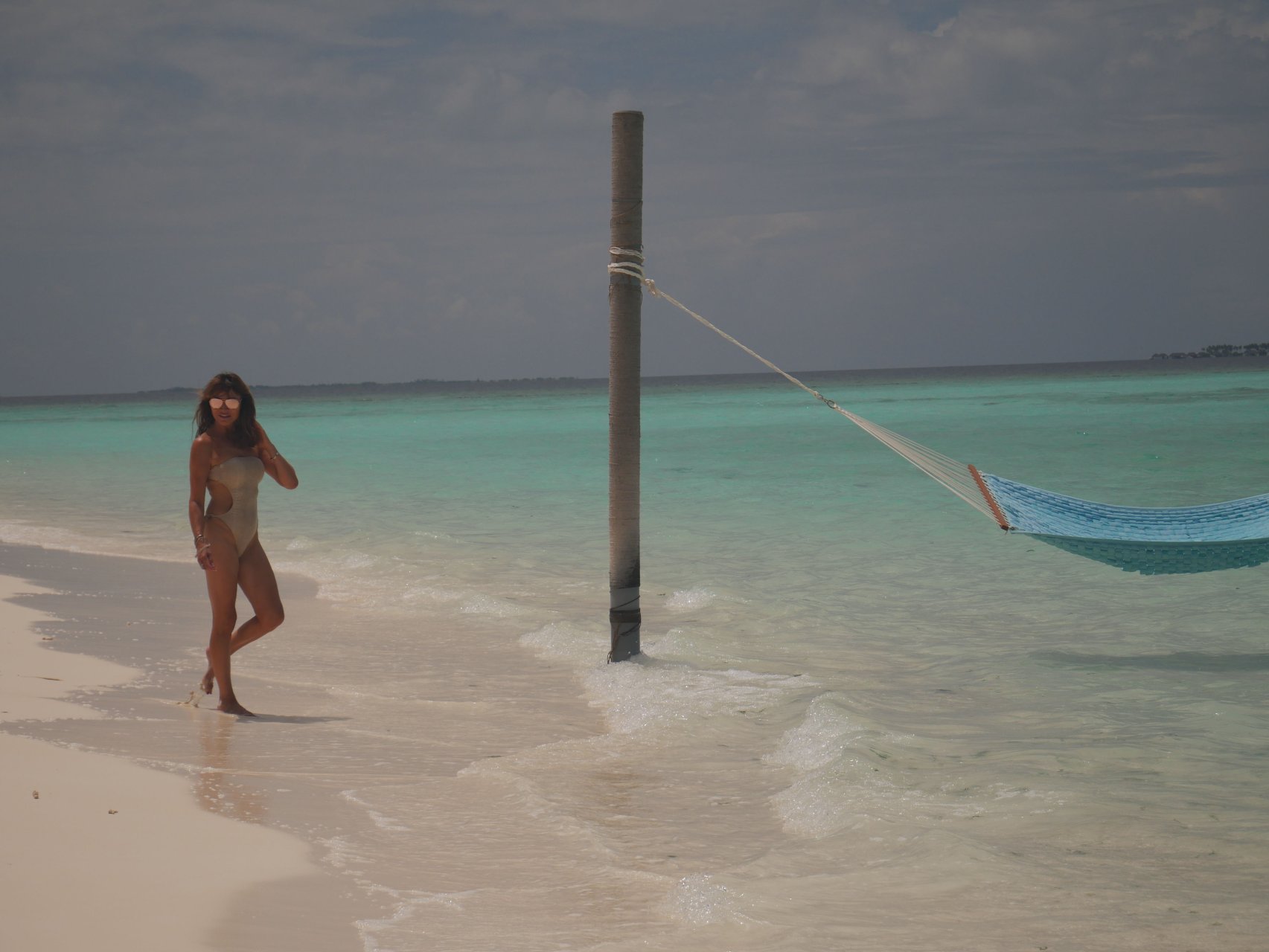Lizzie Cundy (48) apresenta o Festival Internacional de Cinema no Sun Siyam Iru Fushi, Maldivas. Ela consegue um pouco de tempo para relaxar em uma rede sobre o mar, 08/09/2018.