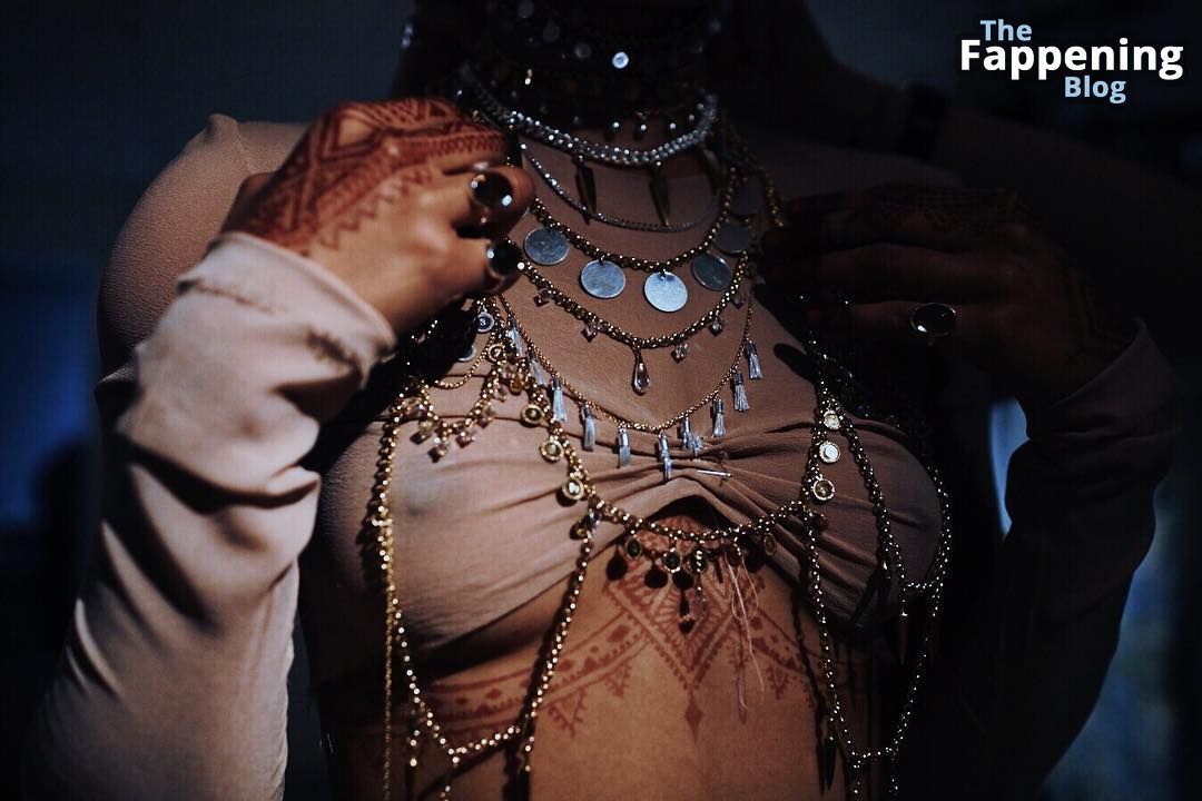Not only did the singer have some A.I. fake pics drop, but she’s also shown off her tits officially! She’s hit the red carpet rocking see-through dresses and showing off that bod. Loreen even did some nude modeling for mags, but kept her pussy and tits covered with her hands.