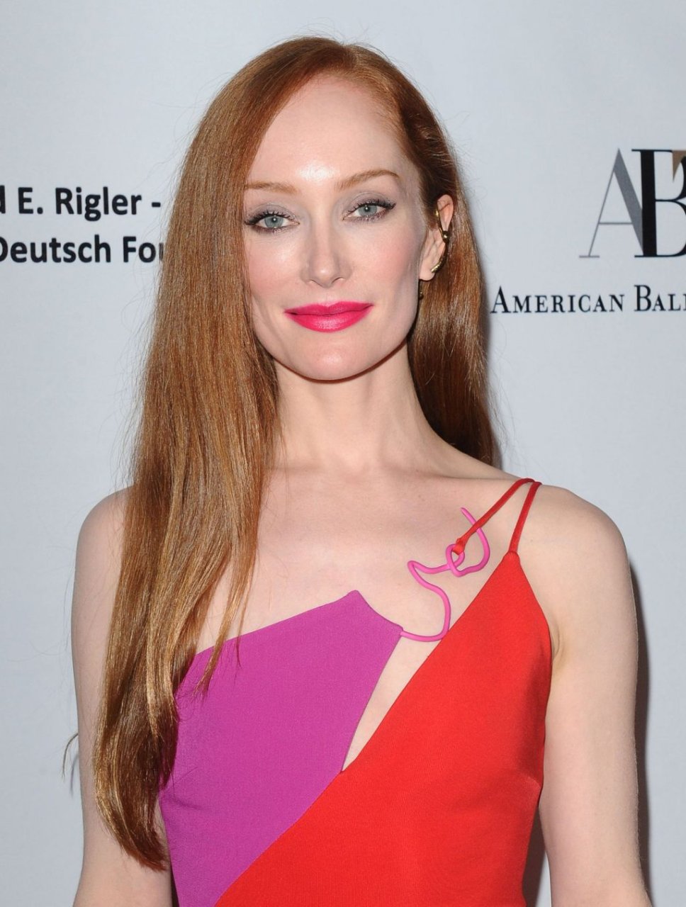 A ruiva Lotte Verbeek exibiu sua figura sexy no American Ballet Theatre Holiday Benefit Gala em Los Angeles, em 17/12/2018. A atriz de 36 anos apareceu no tapete vermelho com um vestido justo vermelho/rosa sem sutiã.