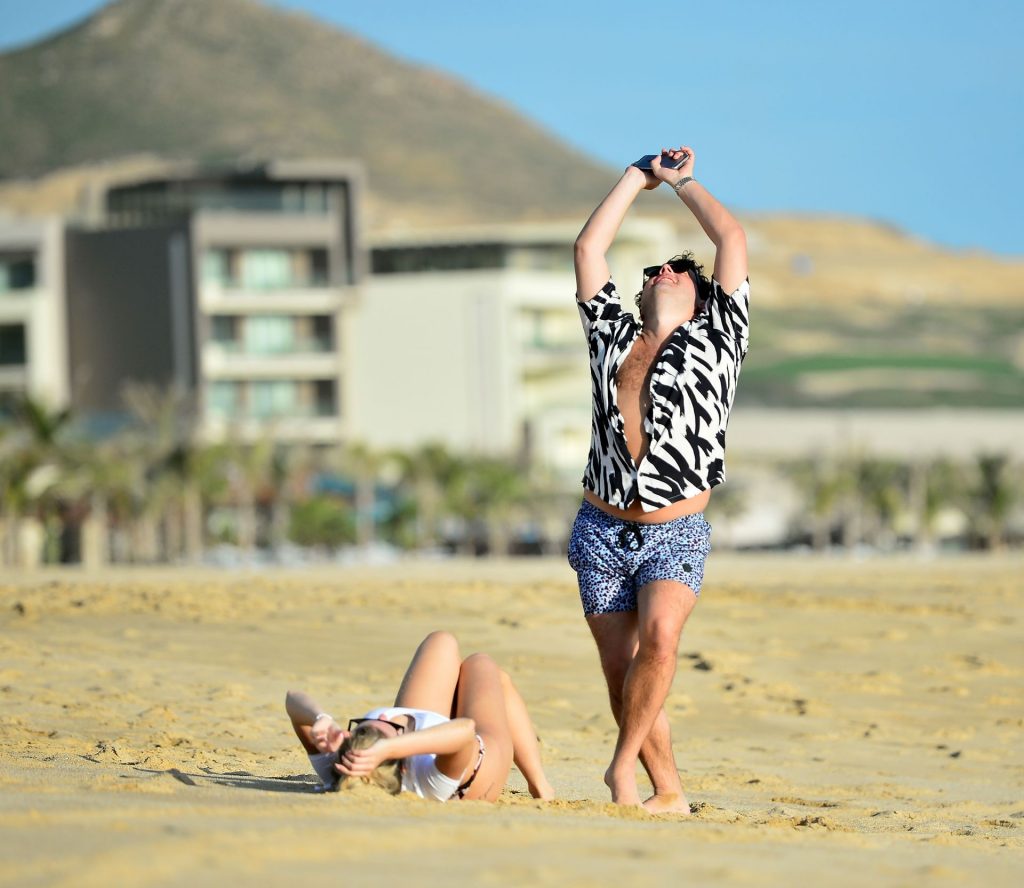 Lottie Moss exibe seu incrível corpo de biquíni ao ser vista no hotel Nobu em Cabo San Lucas com um amigo masculino em 25/01/2020. A atriz/modelo foi vista usando um biquíni oficial da Skatie!.