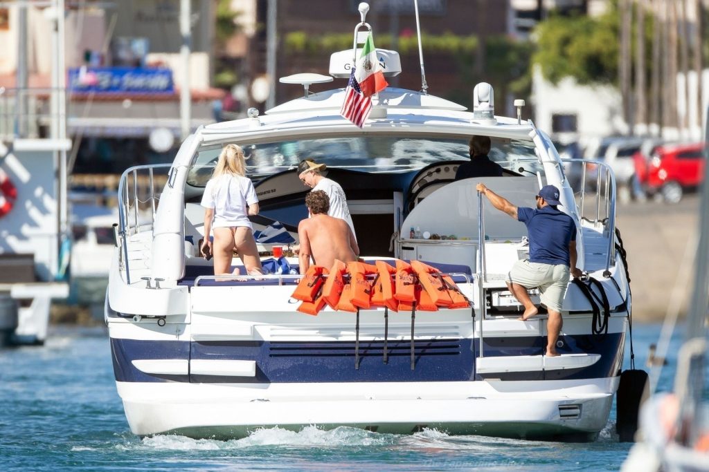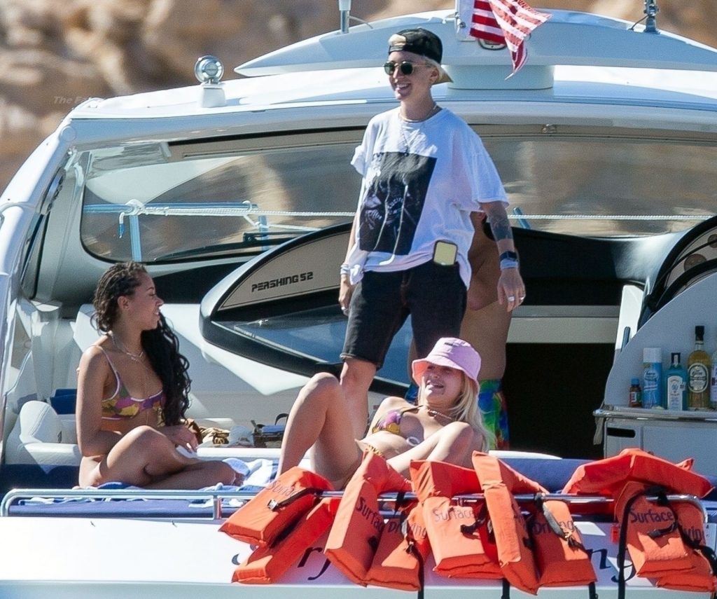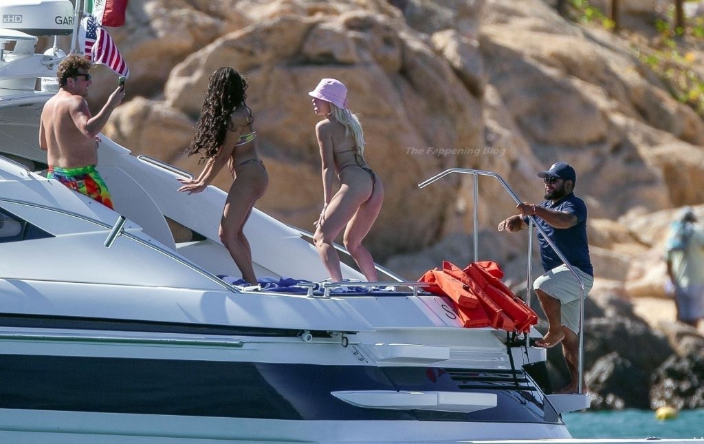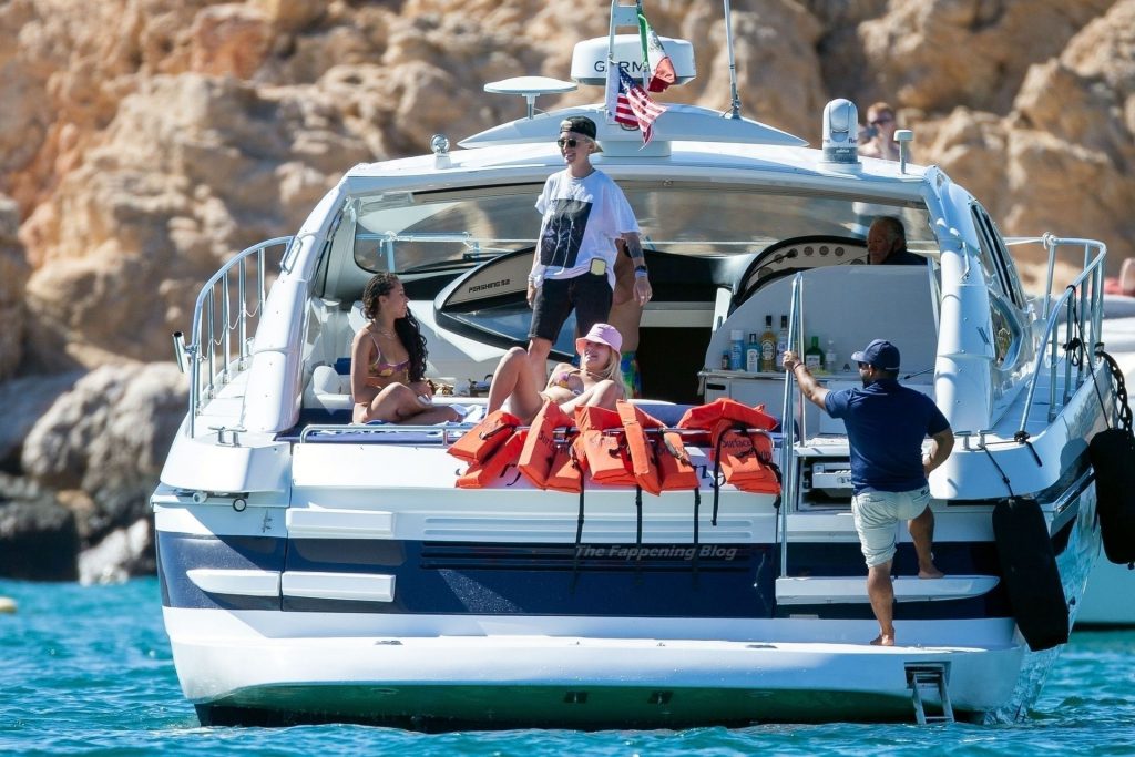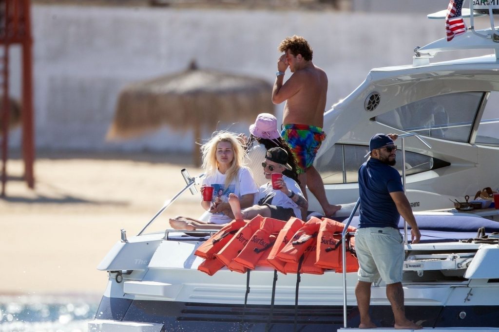 A modelo foi vista com amigos aproveitando o calor escaldante do México enquanto bebia e dançava em um barco, exibindo seu físico sexy em um conjunto de biquíni multicolorido realmente minúsculo.