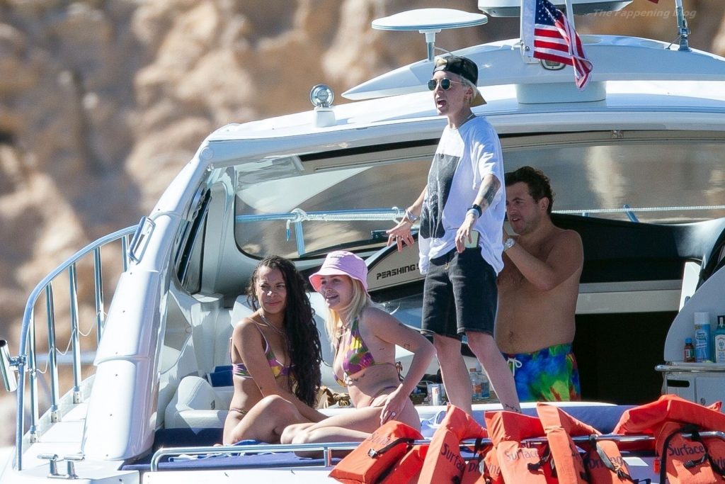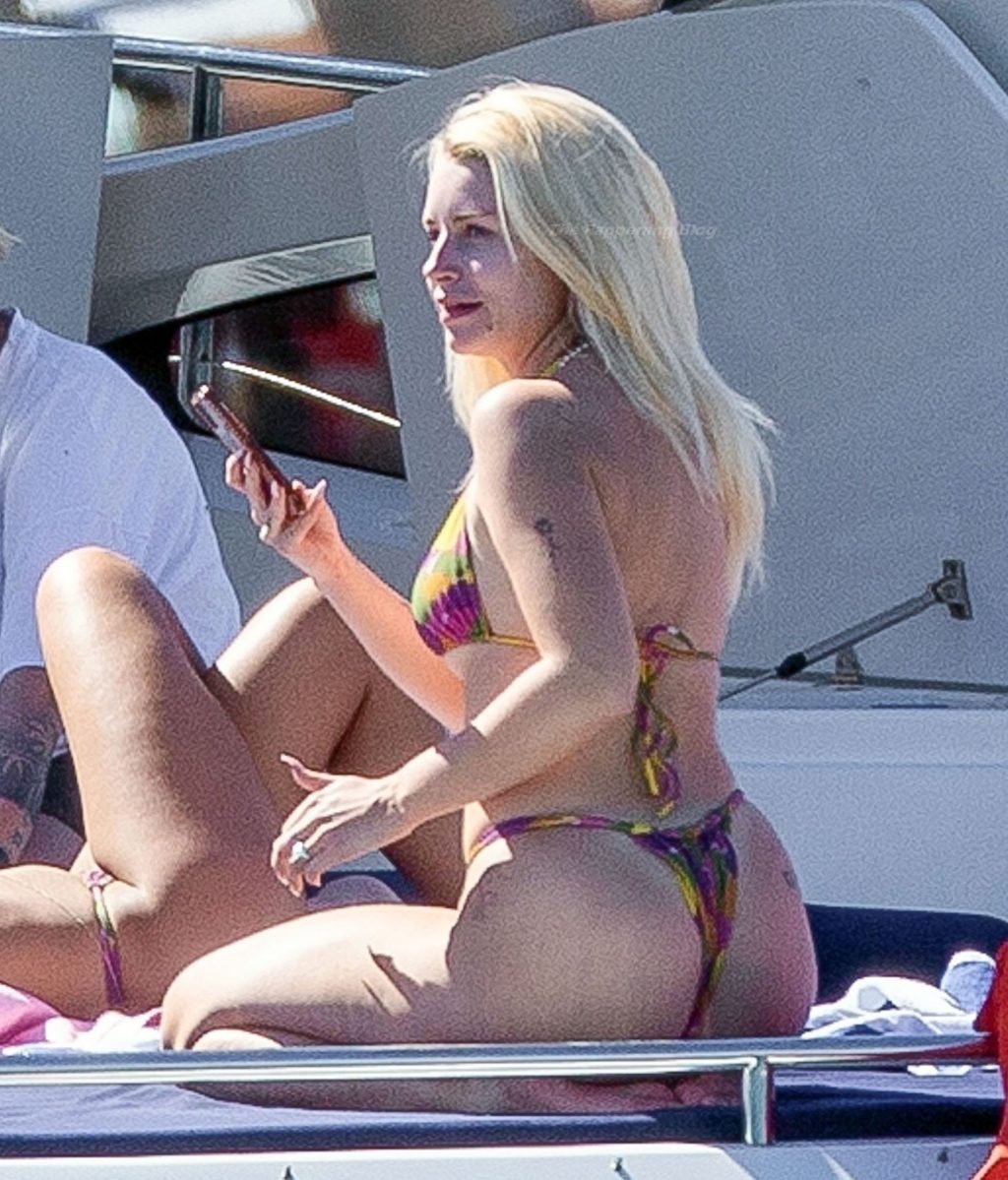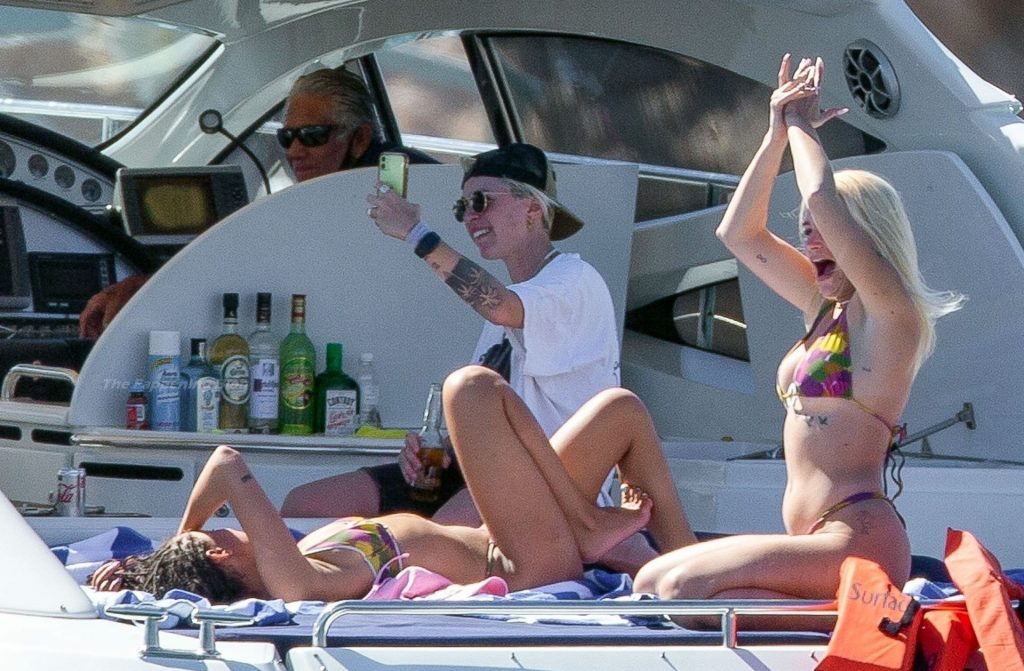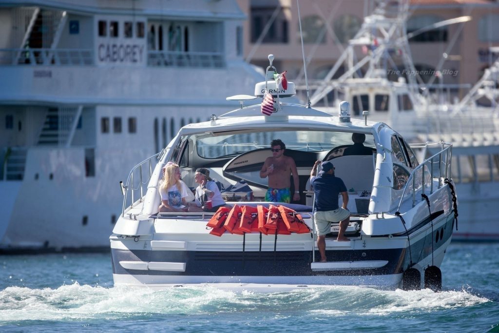 A modelo foi vista com amigos aproveitando o calor escaldante do México enquanto bebia e dançava em um barco, exibindo seu físico sexy em um conjunto de biquíni multicolorido realmente minúsculo.
