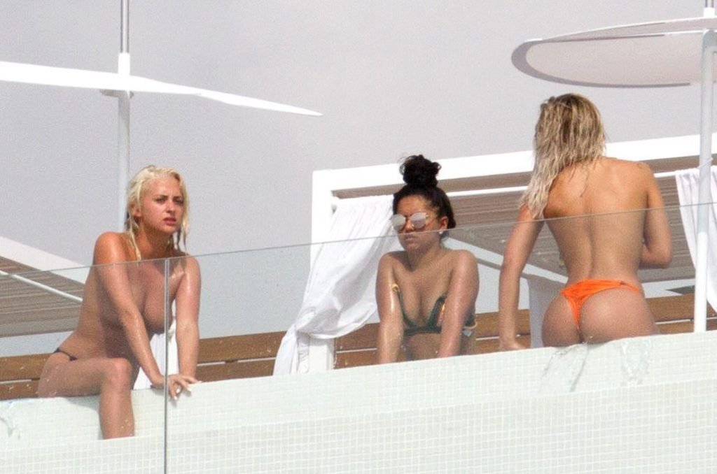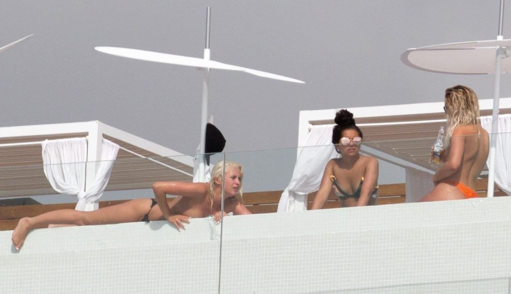 ‘Estrelas do ‘X Factor’ Louisa Johnson, Chloe Paige e Havva Rebke exibem seus corpos sexy de biquíni, bronzeando-se enquanto estão de férias em Ibiza, Espanha. Louisa e Chloe tomam sol topless, enquanto Havva é um pouco mais modesta!’