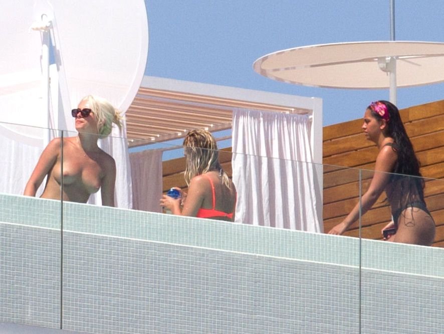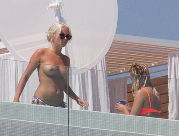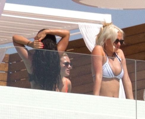 ‘Estrelas do ‘X Factor’ Louisa Johnson, Chloe Paige e Havva Rebke aproveitaram o sol, curtindo umas férias de verão topless em Ibiza, 18/08/2017.