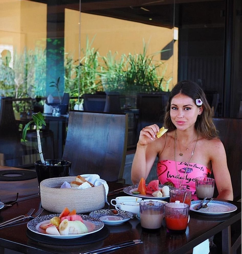 Louise Thompson (“Made in Chelsea”) foi flagrada topless enquanto tomava sol na piscina no Instagram Story do noivo Ryan Libbey (2018).