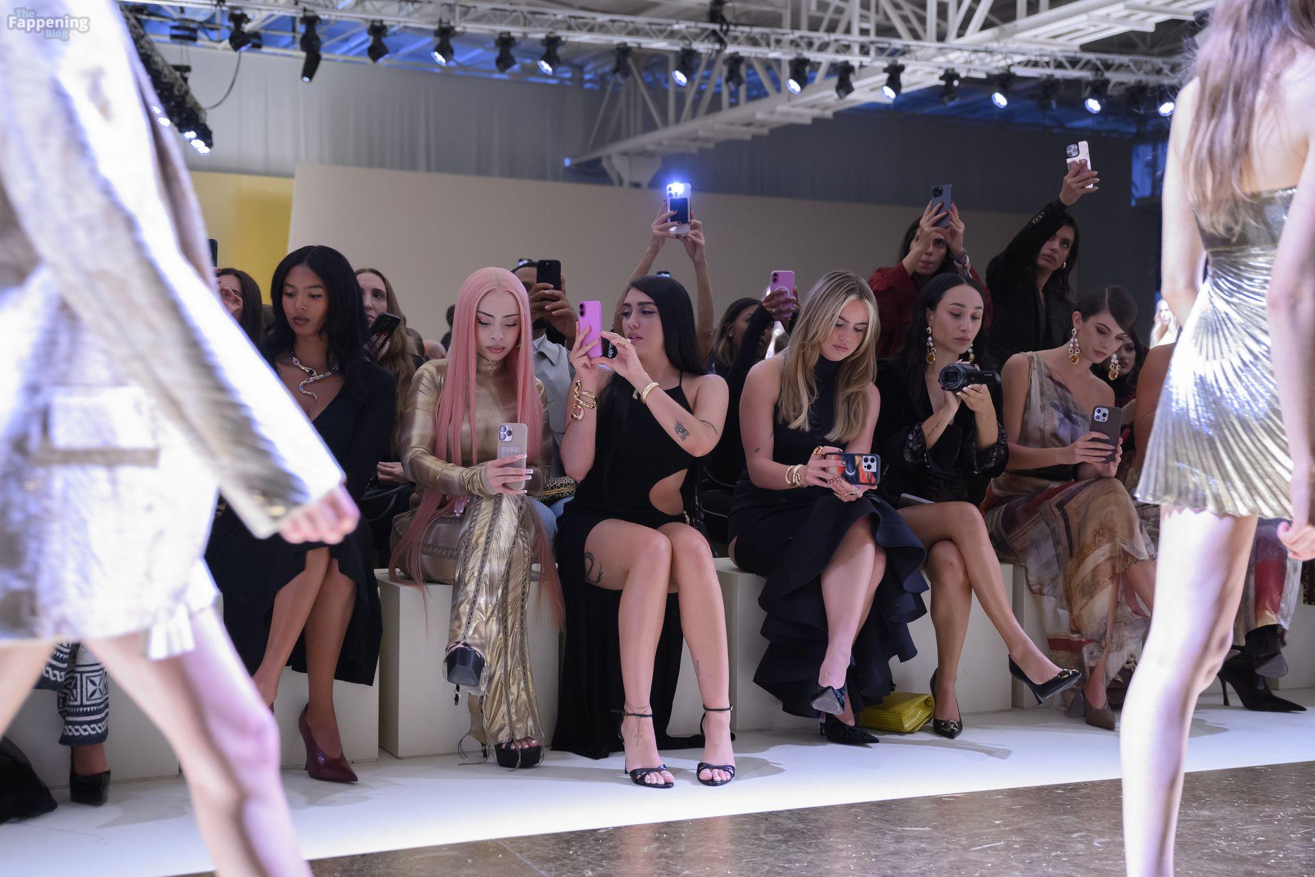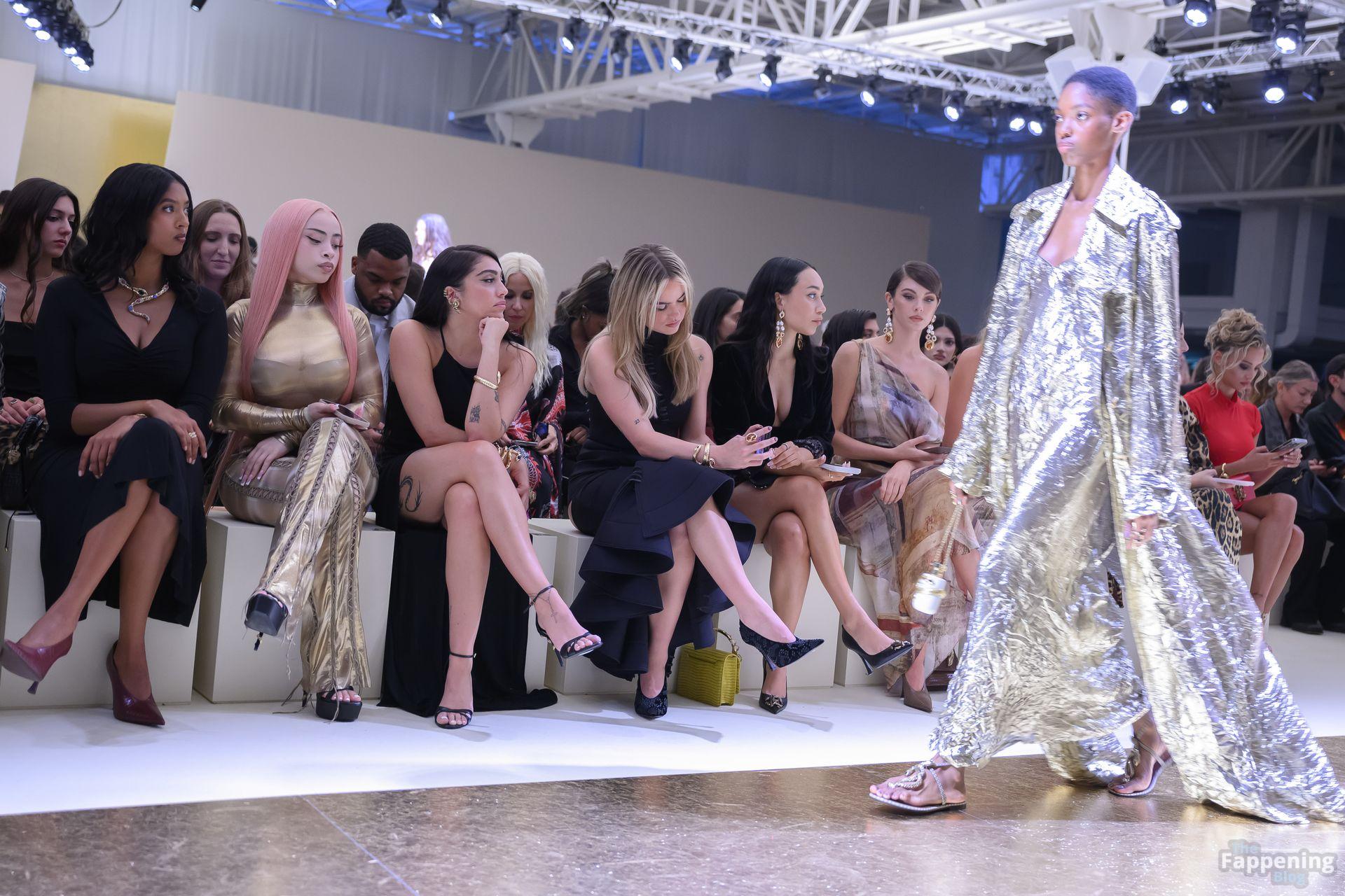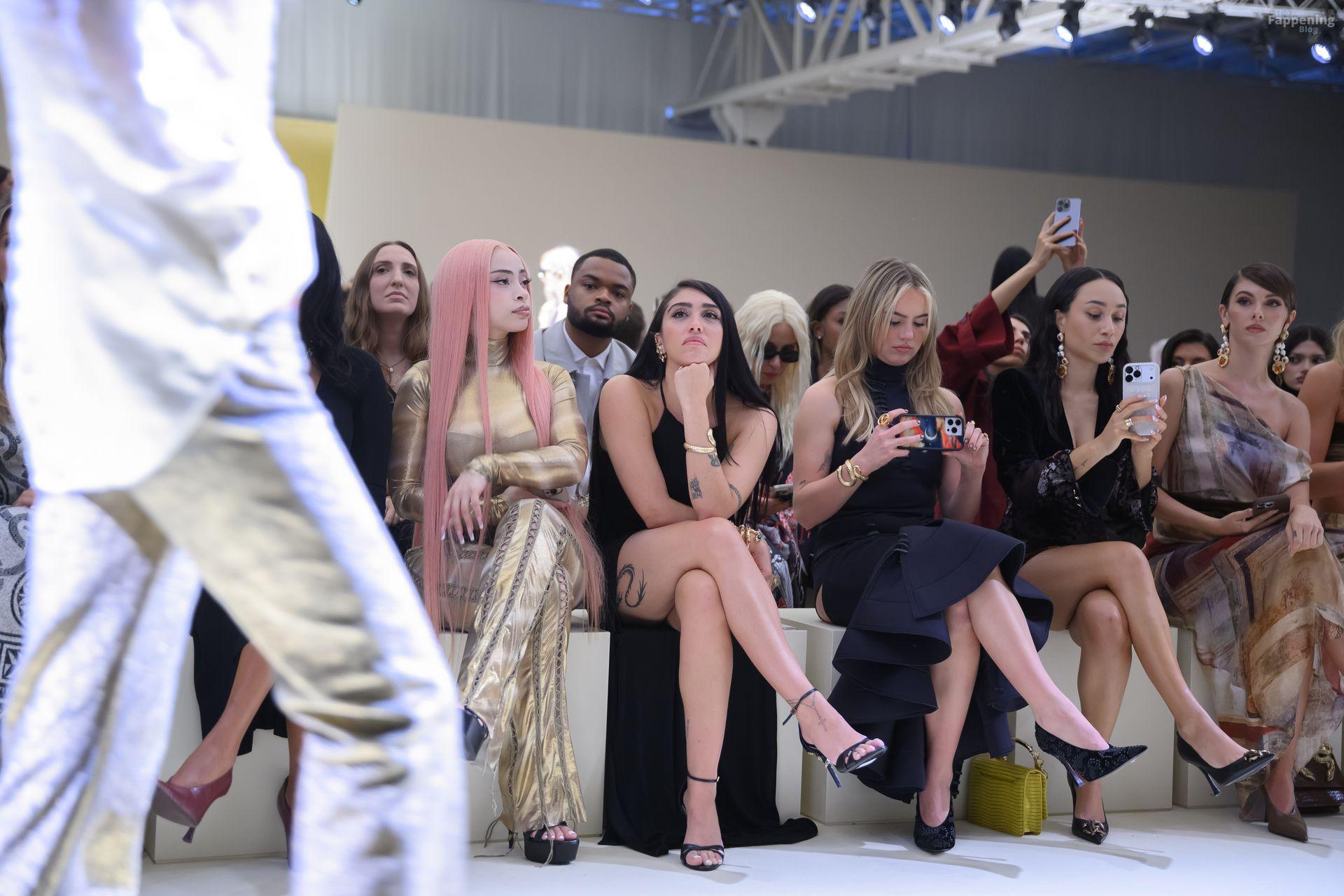 A filha de Madonna, Lourdes Leon, impressiona com suas pernas sexy e momentos de upskirt no desfile de moda Roberto Cavalli em Milão.
