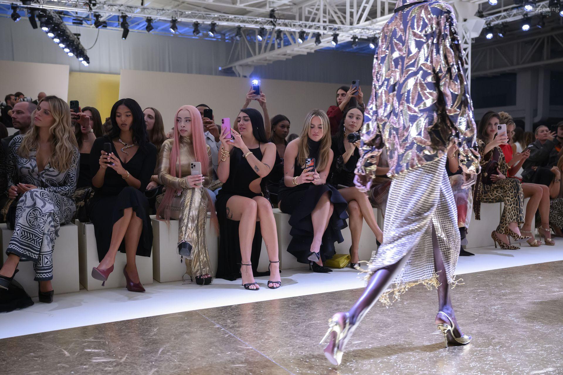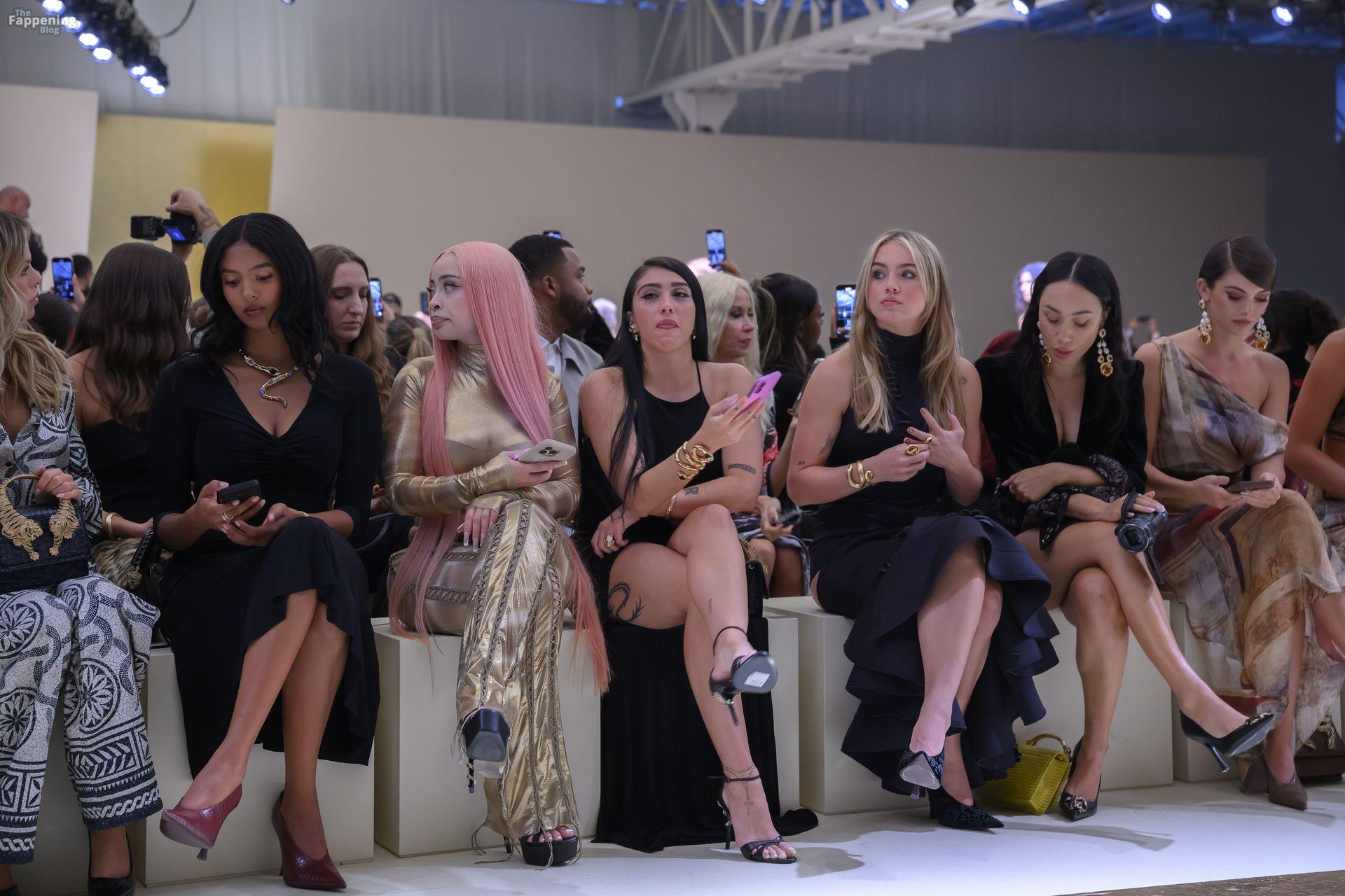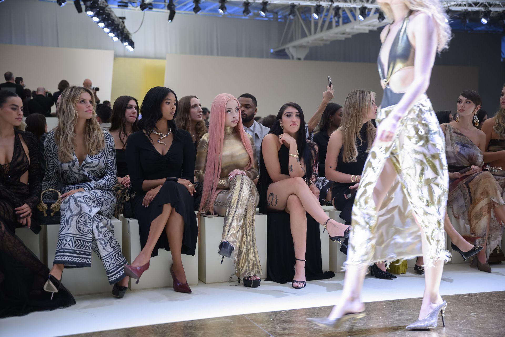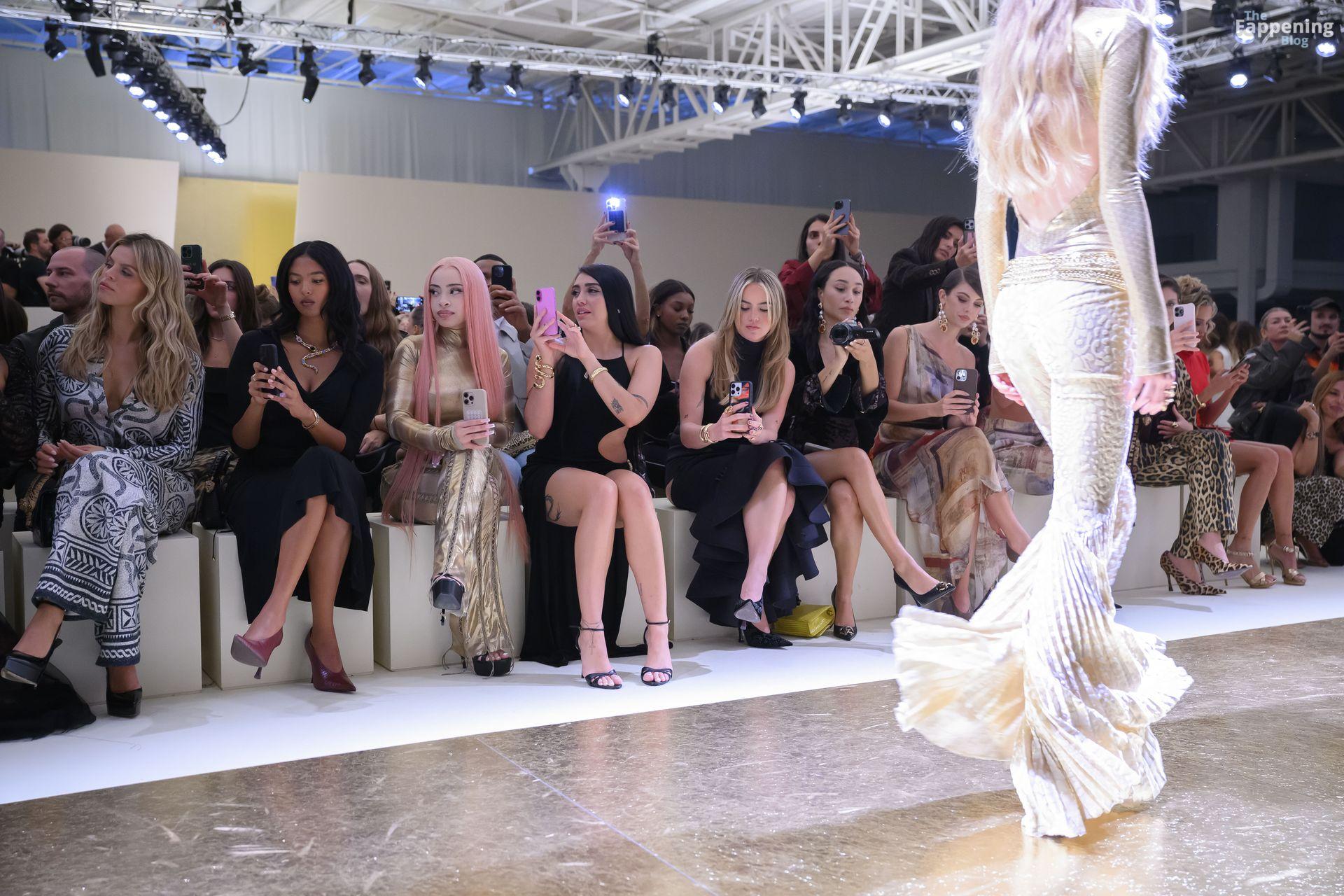 A filha de Madonna, Lourdes Leon, impressiona com suas pernas sexy e momentos de upskirt no desfile de moda Roberto Cavalli em Milão.