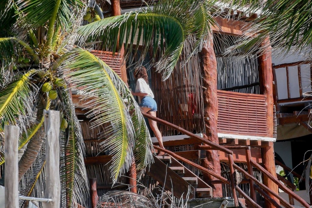 Após um mergulho no oceano e uma caminhada na praia, Luann retorna ao seu quarto emergindo com um baseado.