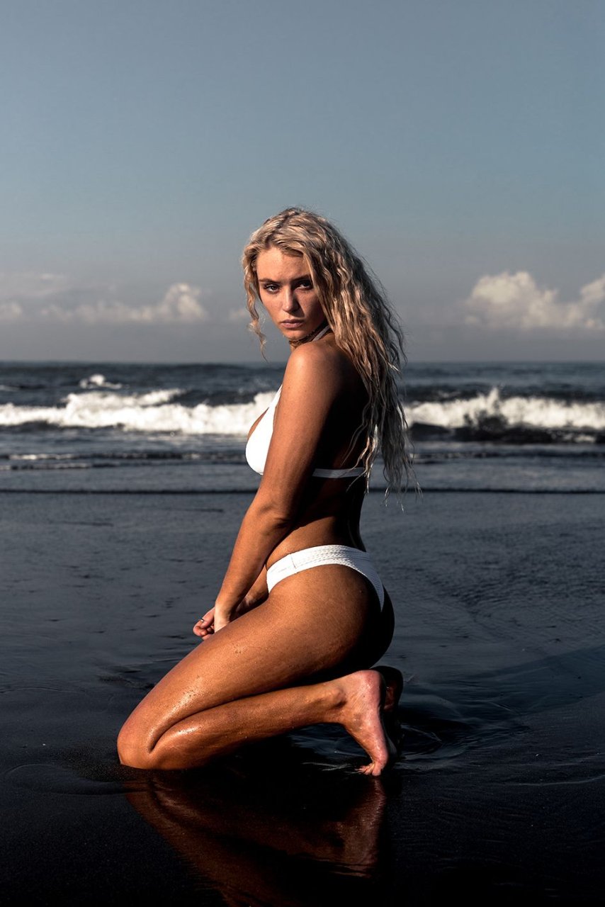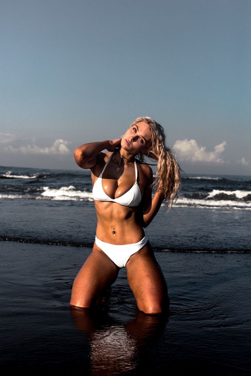A participante de “Love Island” Lucie Donlan arrasa de biquíni branco em Bali, Indonésia (2019). A surfista de 21 anos de Newquay posou para as fotos glamourosas nua (coberta) no início deste ano, antes de sua participação no reality show.