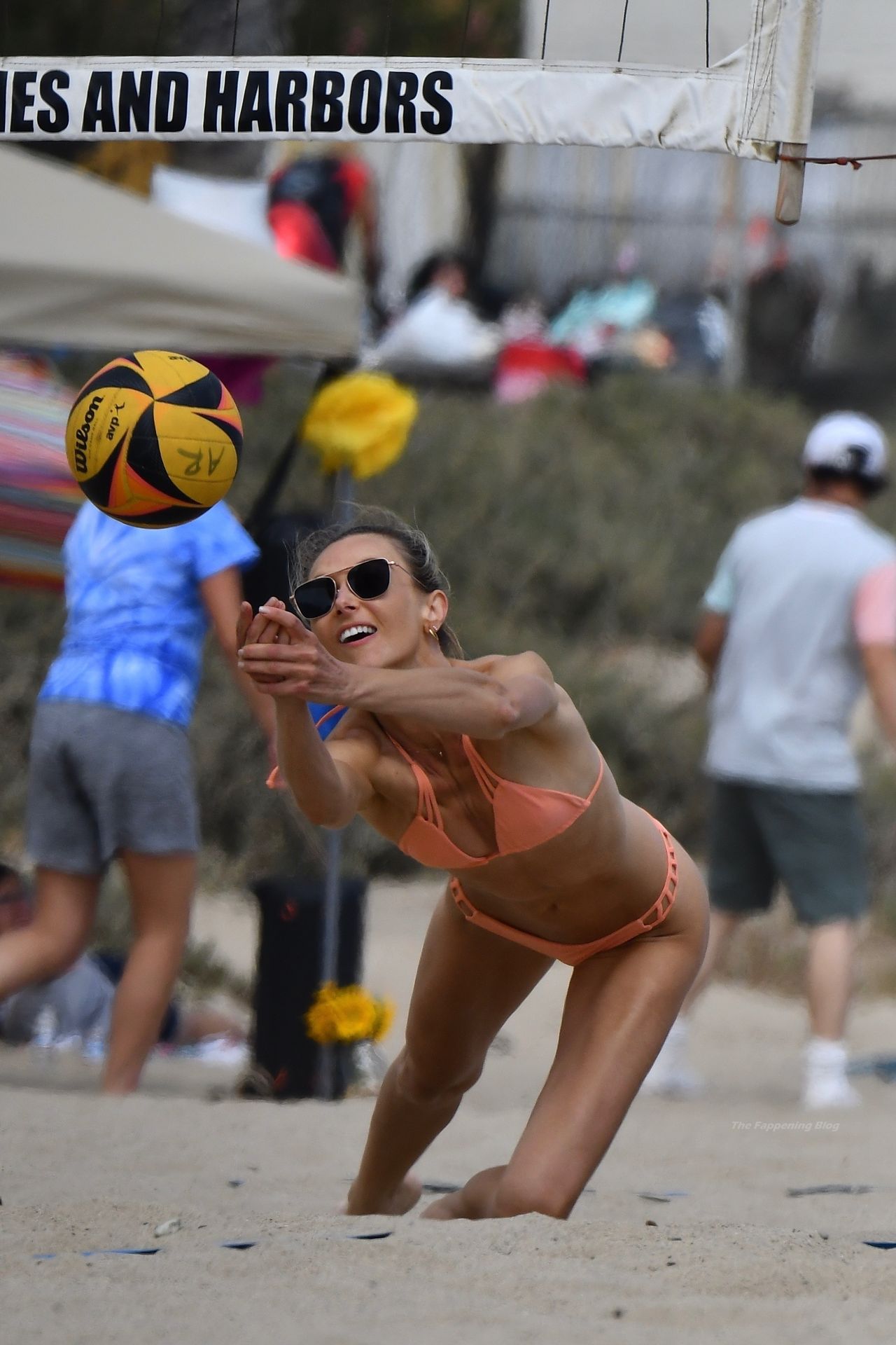 Modelo brasileira Ludi Delfino passa o dia deitada na praia aproveitando um jogo de vôlei de praia – Santa Monica, 19/06/2021.