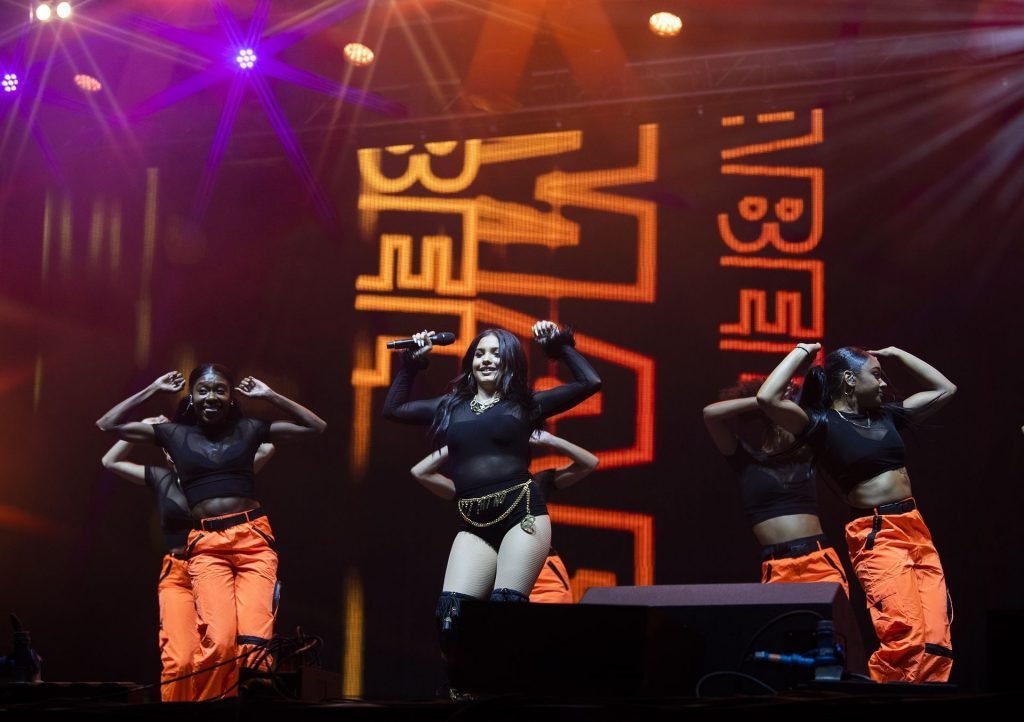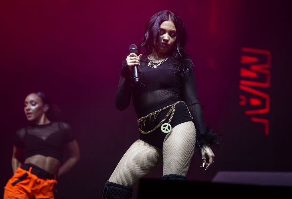 A cantora e compositora inglesa Mabel Alabama Pearl McVey foi vista enquanto se apresentava ao vivo no Reading Festival 2019 em Reading, 24/08/2019.