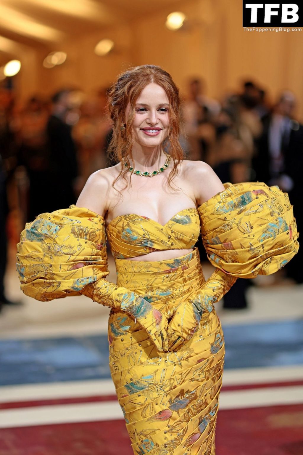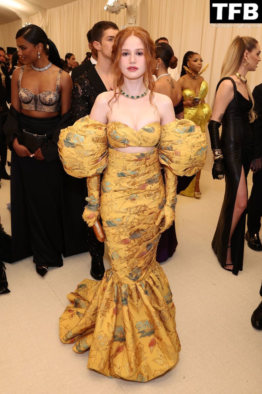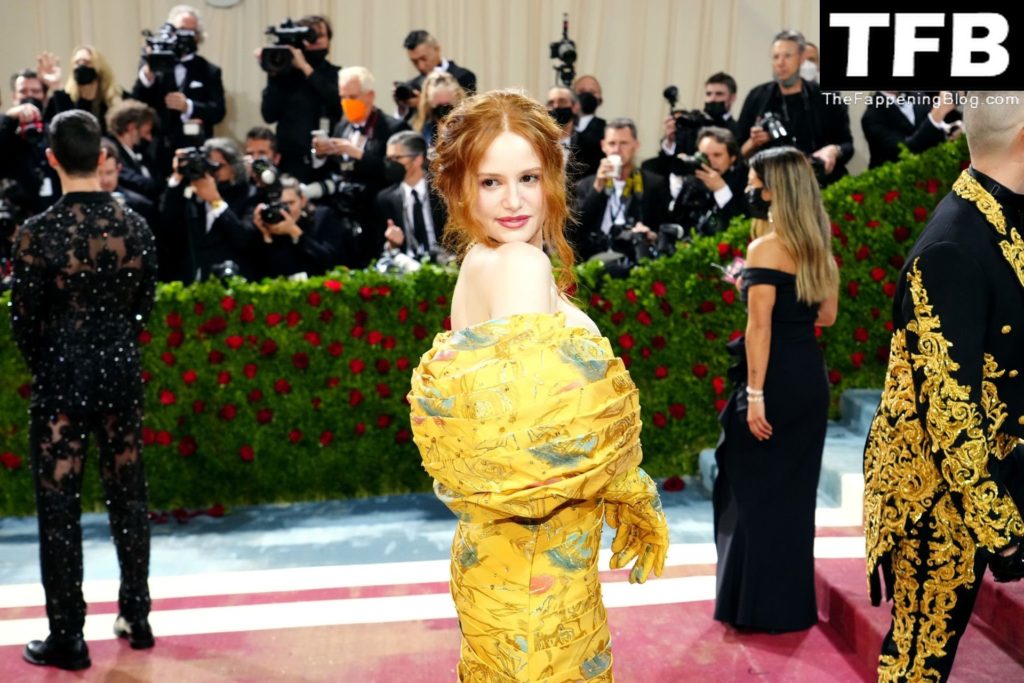 Atriz Madelaine Petsch vestindo Moschino chega ao Met Gala com o tema In America: An Anthology of Fashion no Metropolitan Museum of Art em Nova York, 02/05/2022.