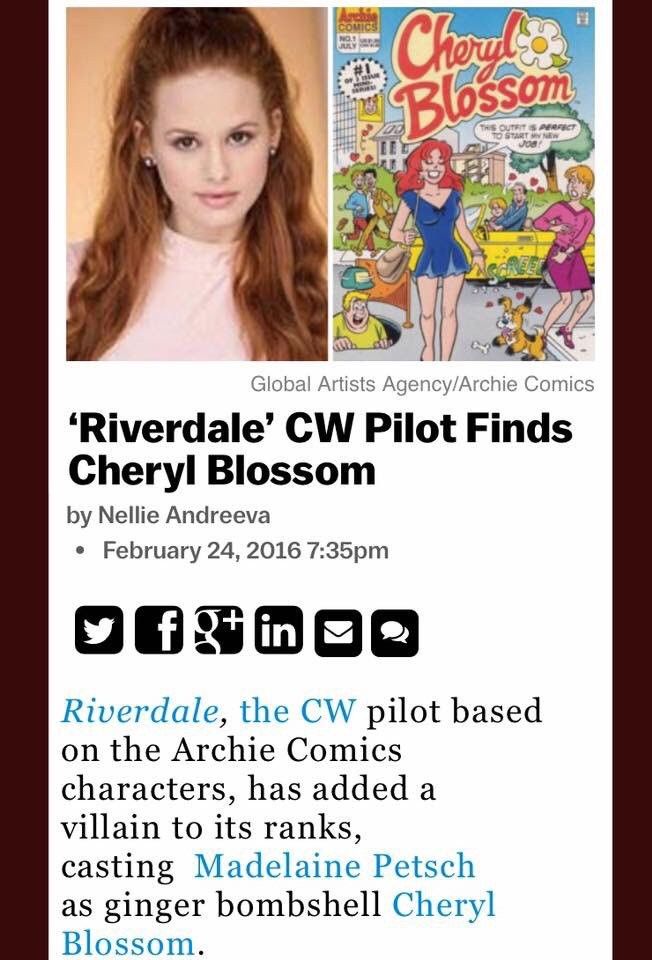 Madelaine Grobbelaar Petsch (nascida em 18 de agosto de 1994) é uma atriz e YouTuber americana. Ela é conhecida por interpretar Cheryl Blossom na série de televisão “Riverdale” da CW e Marissa em “F*&% the Prom”.