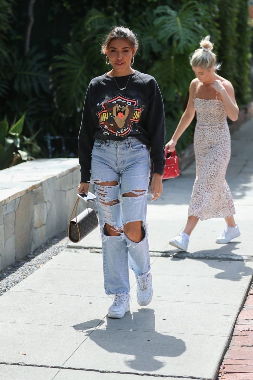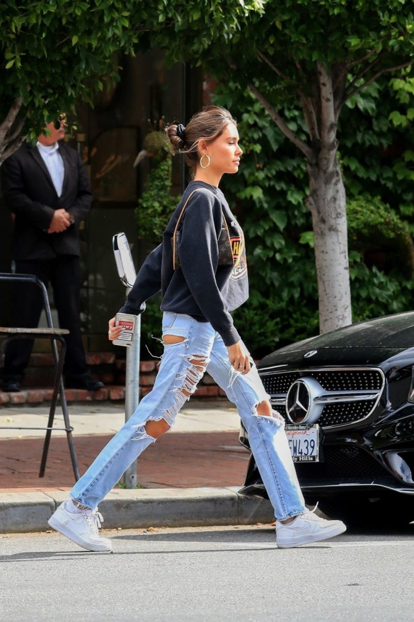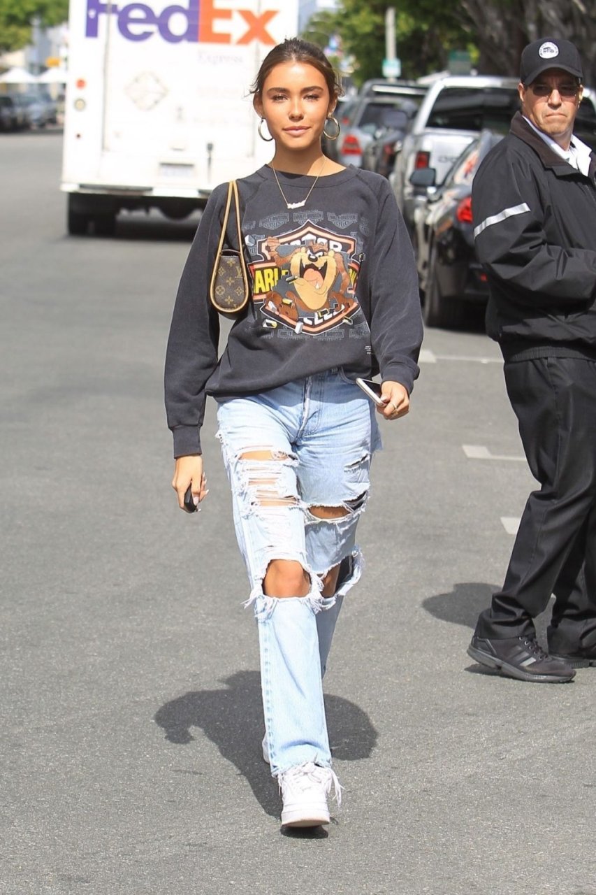 Cantora, a gata de 20 anos Madison Beer está de volta a West Los Angeles após retornar do Festival de Cinema de Cannes e a jovem cantora de R&B sai com jeans muito rasgados e tênis Nike para tomar um café com uma amiga no Alfred Coffee em West Hollywood, 21/05/2019.