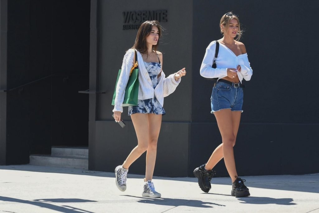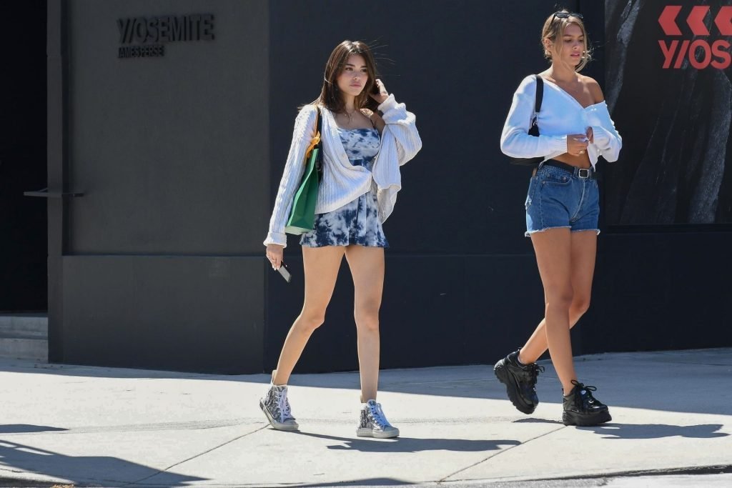 Cantora/modelo de pernas longas Madison Beer retorna ao valet após almoço com sua avó no Il Pastaio em Beverly Hills, 20/08/2019. Ela foi fotografada com um vestido curto demais revelando sua roupa íntima.
