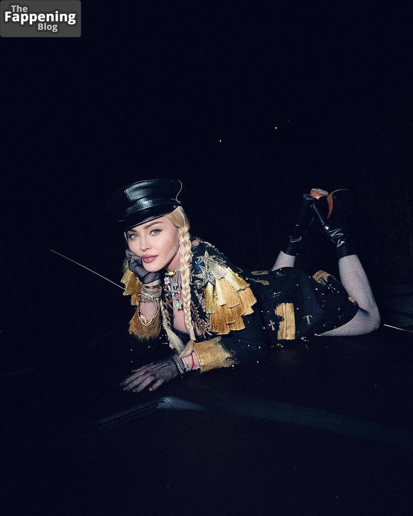 Madonna posa com suas poses explícitas características e exibe orgulhosamente o estilo fashion dos pelos pubianos e das axilas. Apesar das mudanças nas tendências da moda ao longo dos anos, essa cantora continua sendo a gata mais quente de Hollywood!