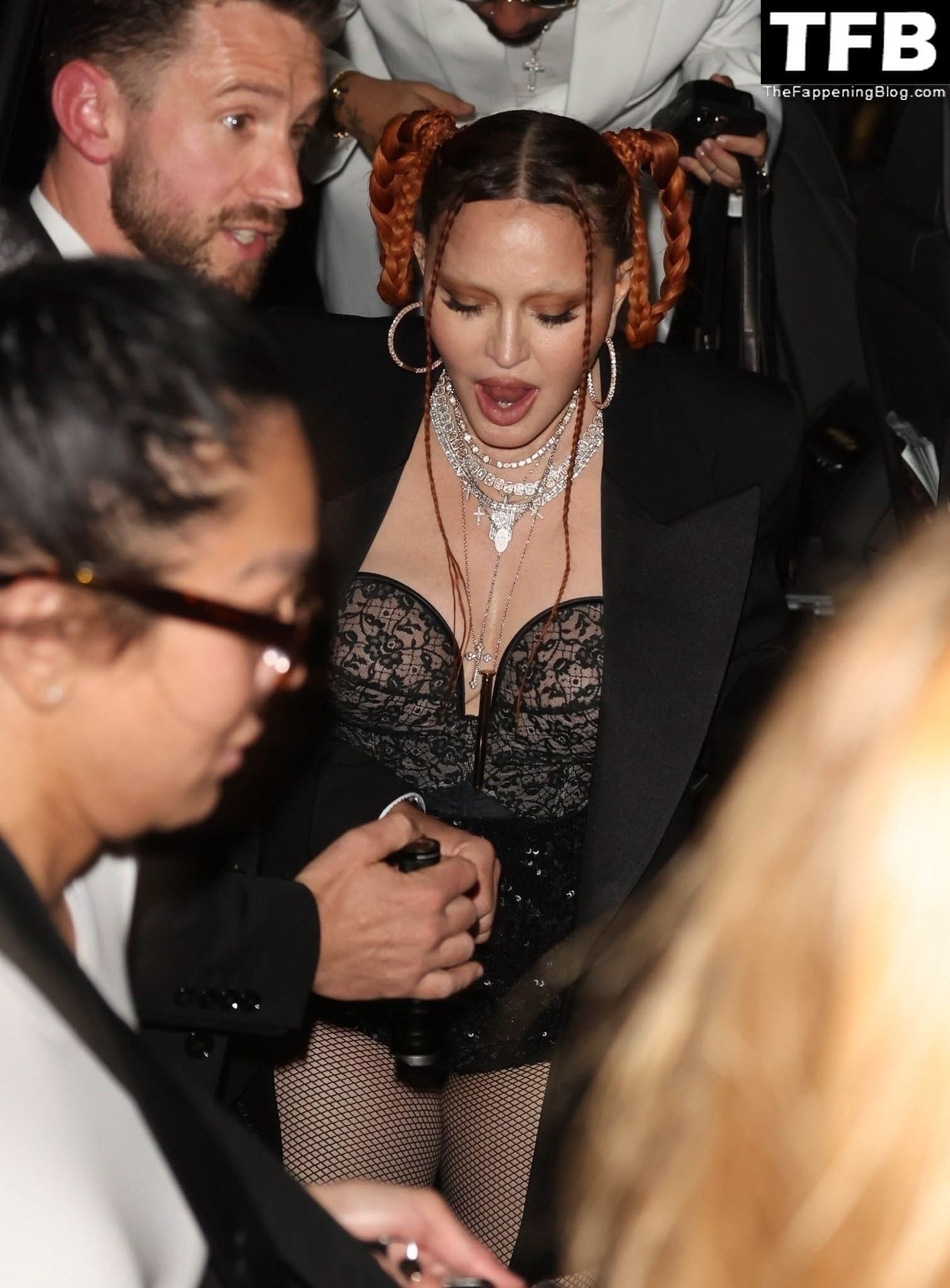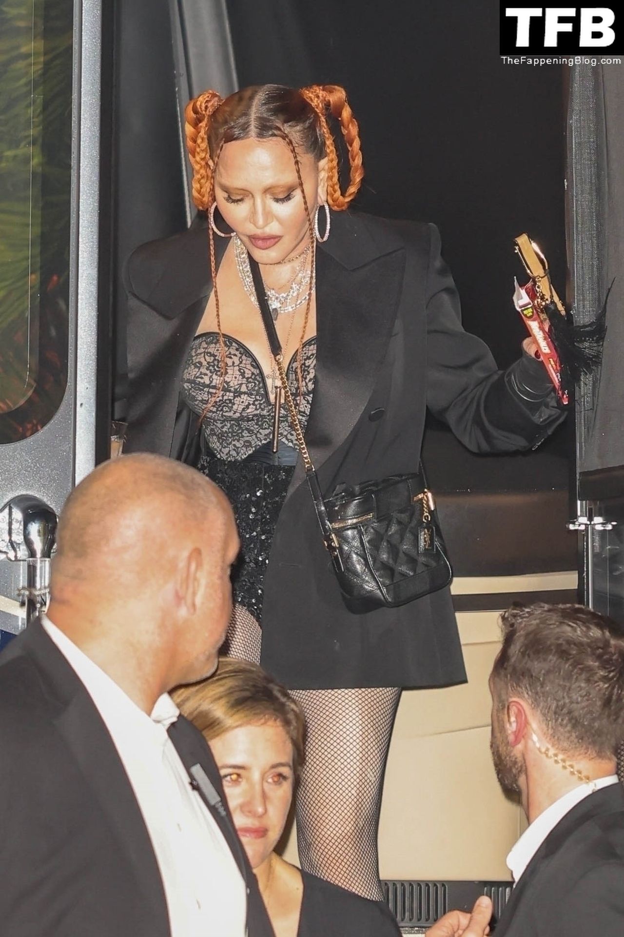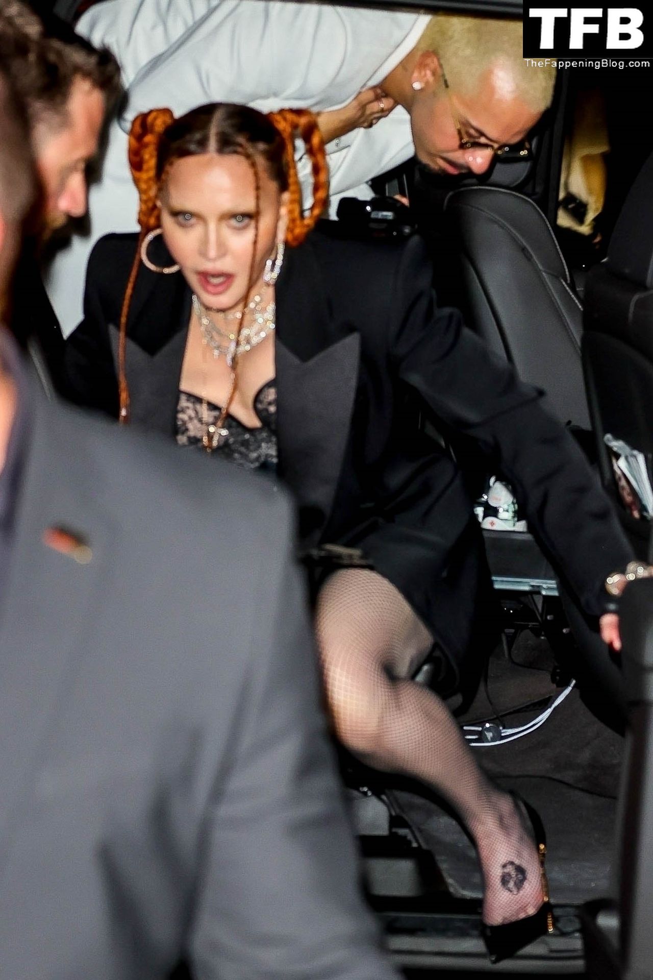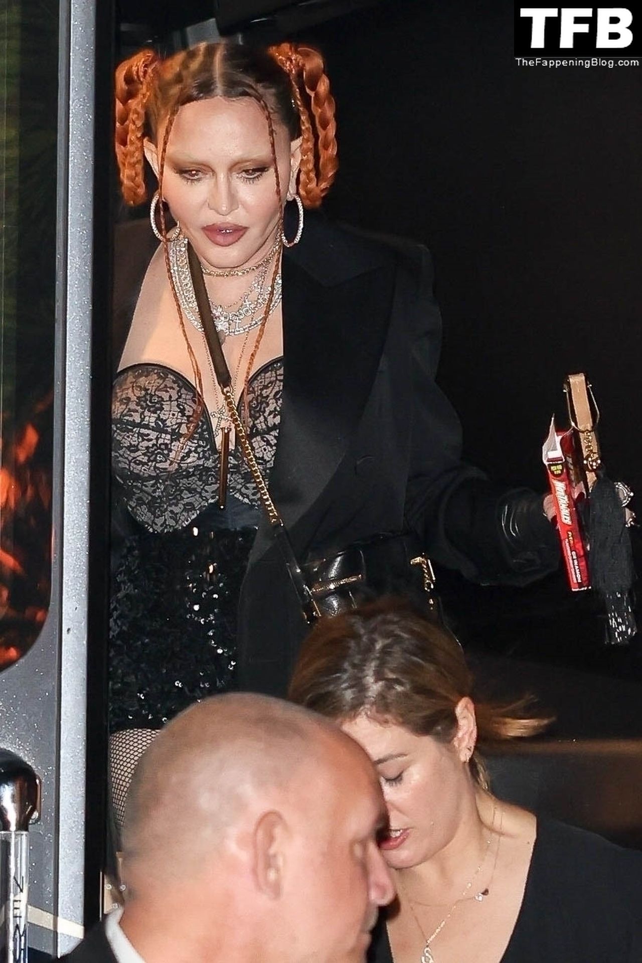 A ícone pop Madonna impressiona ao sair com um conjunto ousado de renda preta e tranças laranja arrojadas para uma noite de festa em South Beach, 01/12/2022.