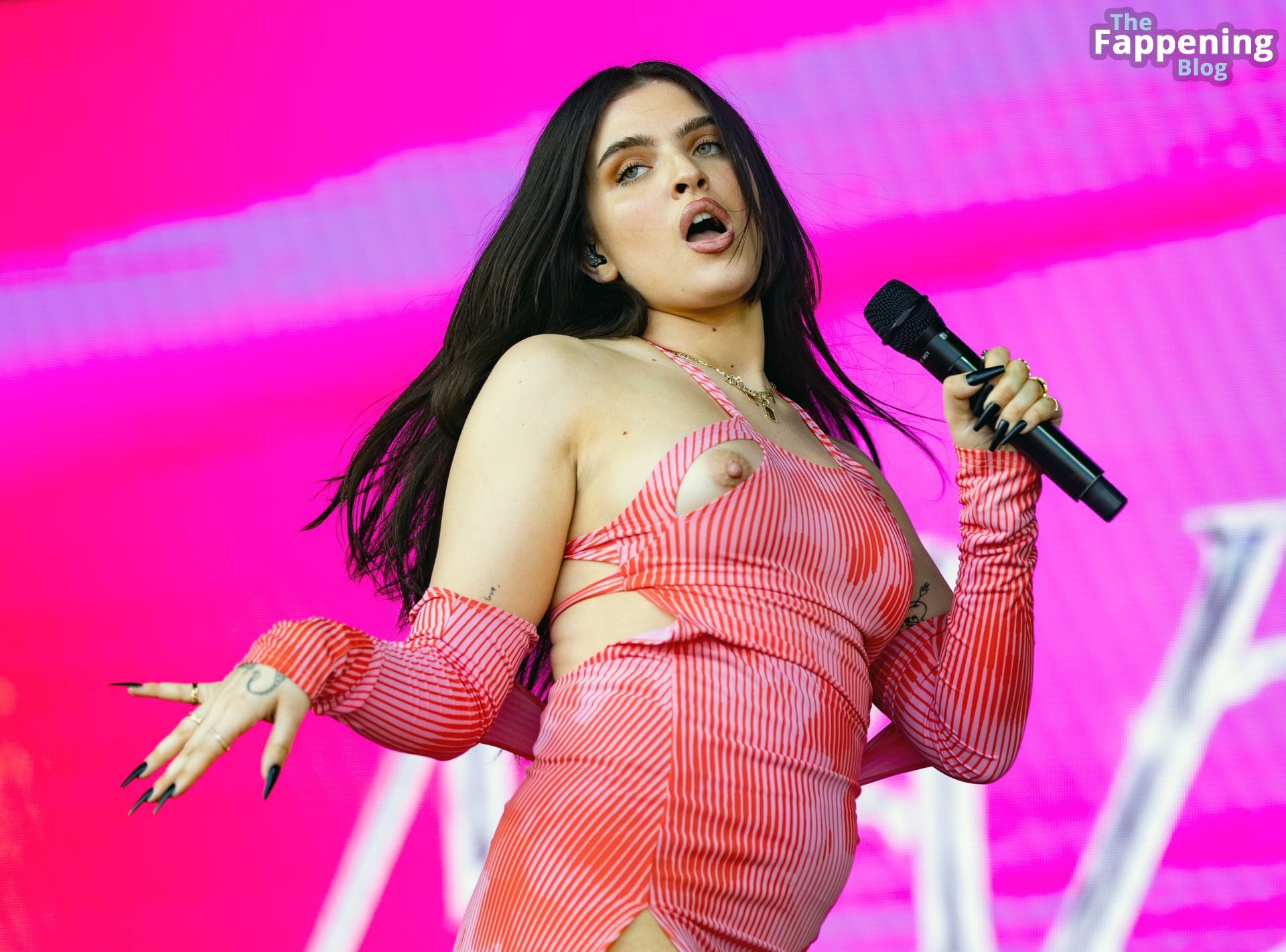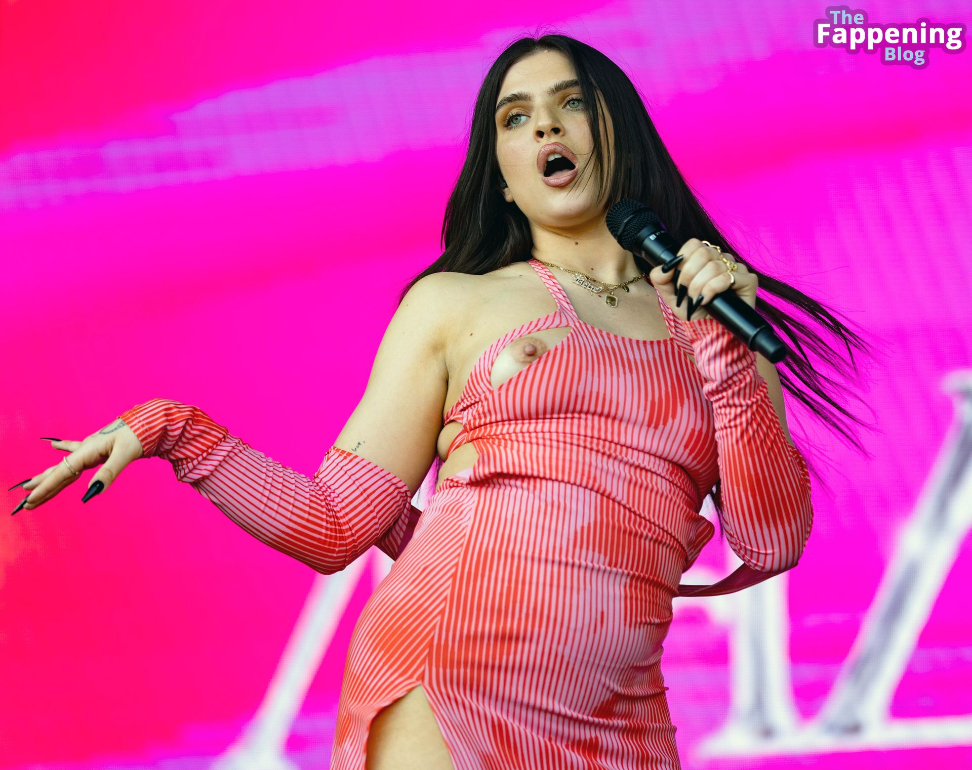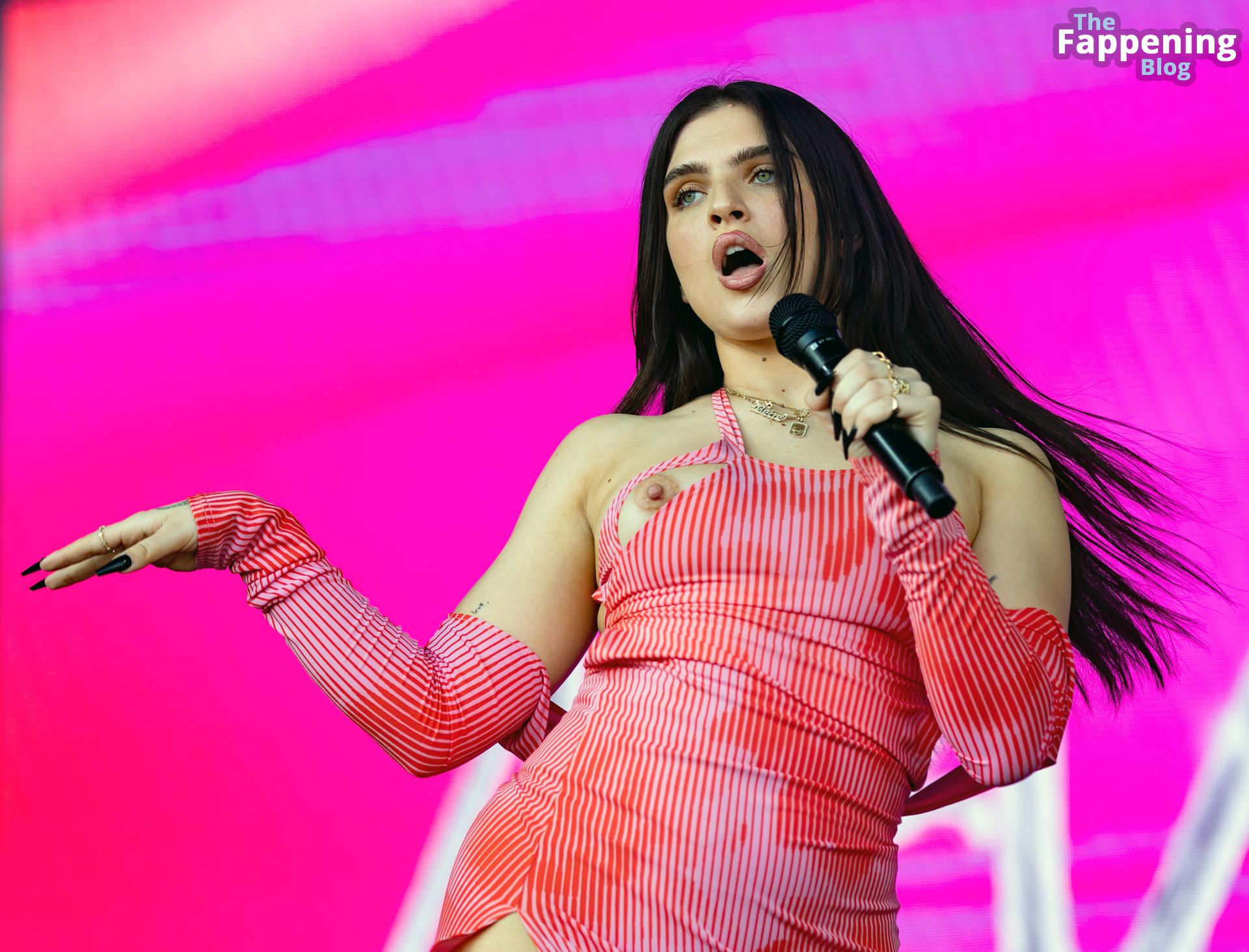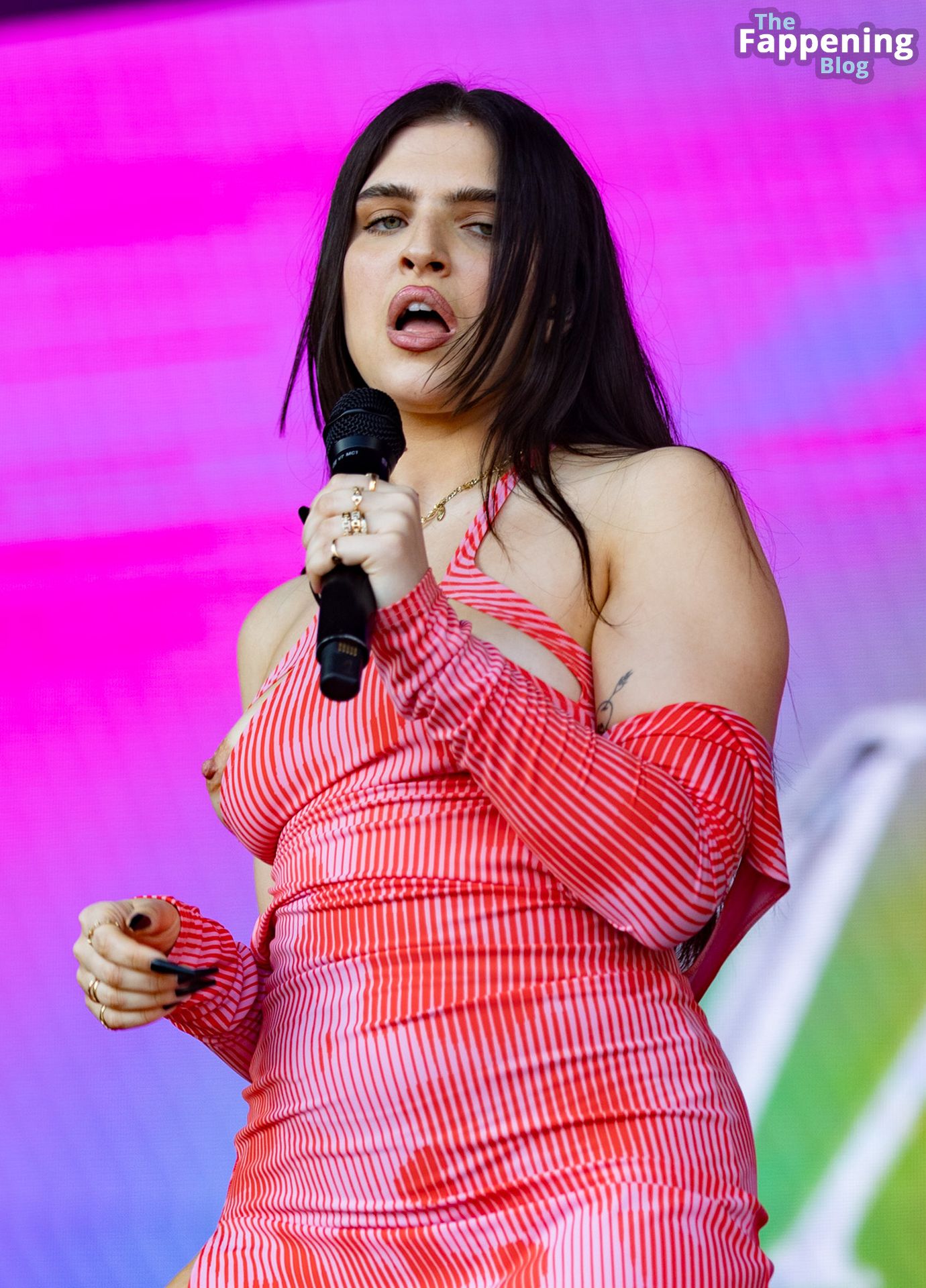 Mae Miller sofre um acidente de figurino no palco do Pride Birmingham. A cantora exibiu seu seio nu sem vergonha durante o show, balançando o microfone como uma chefe.