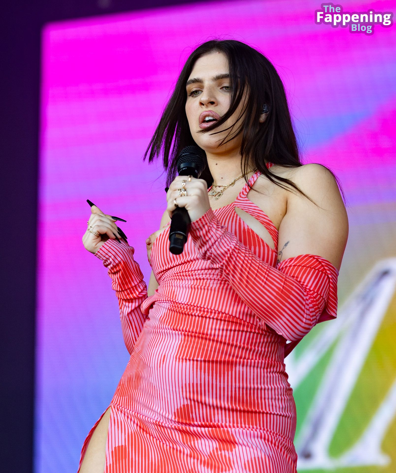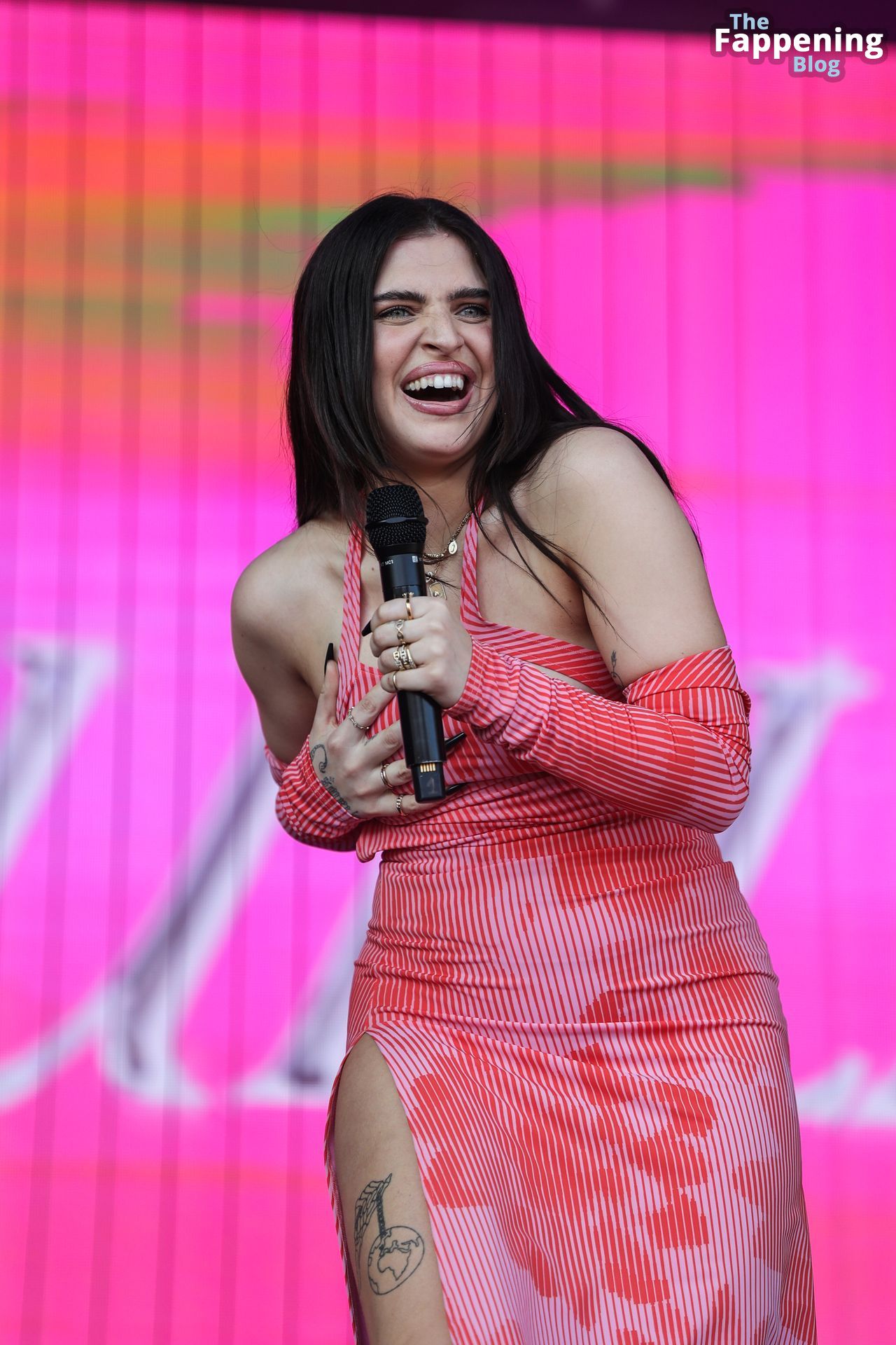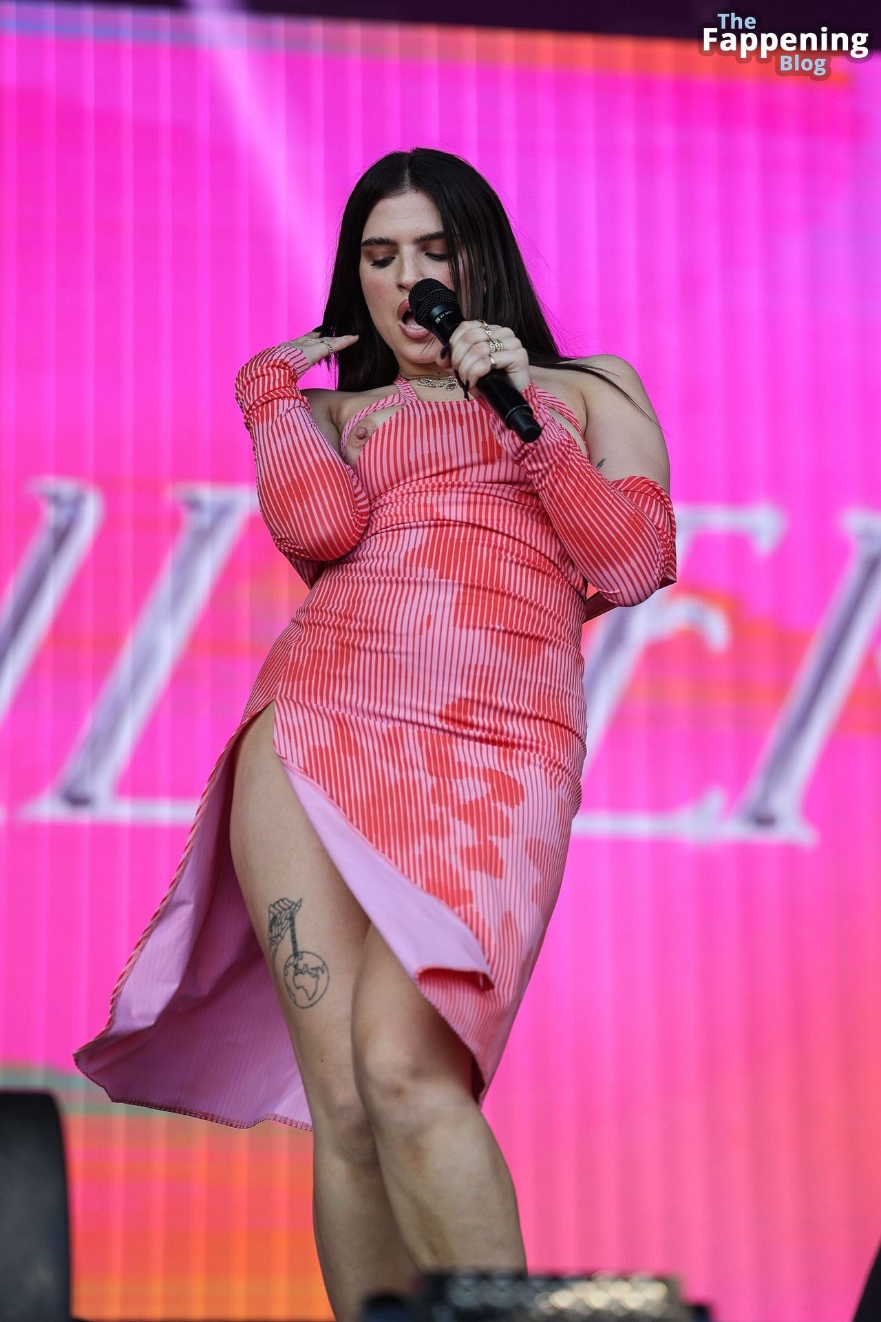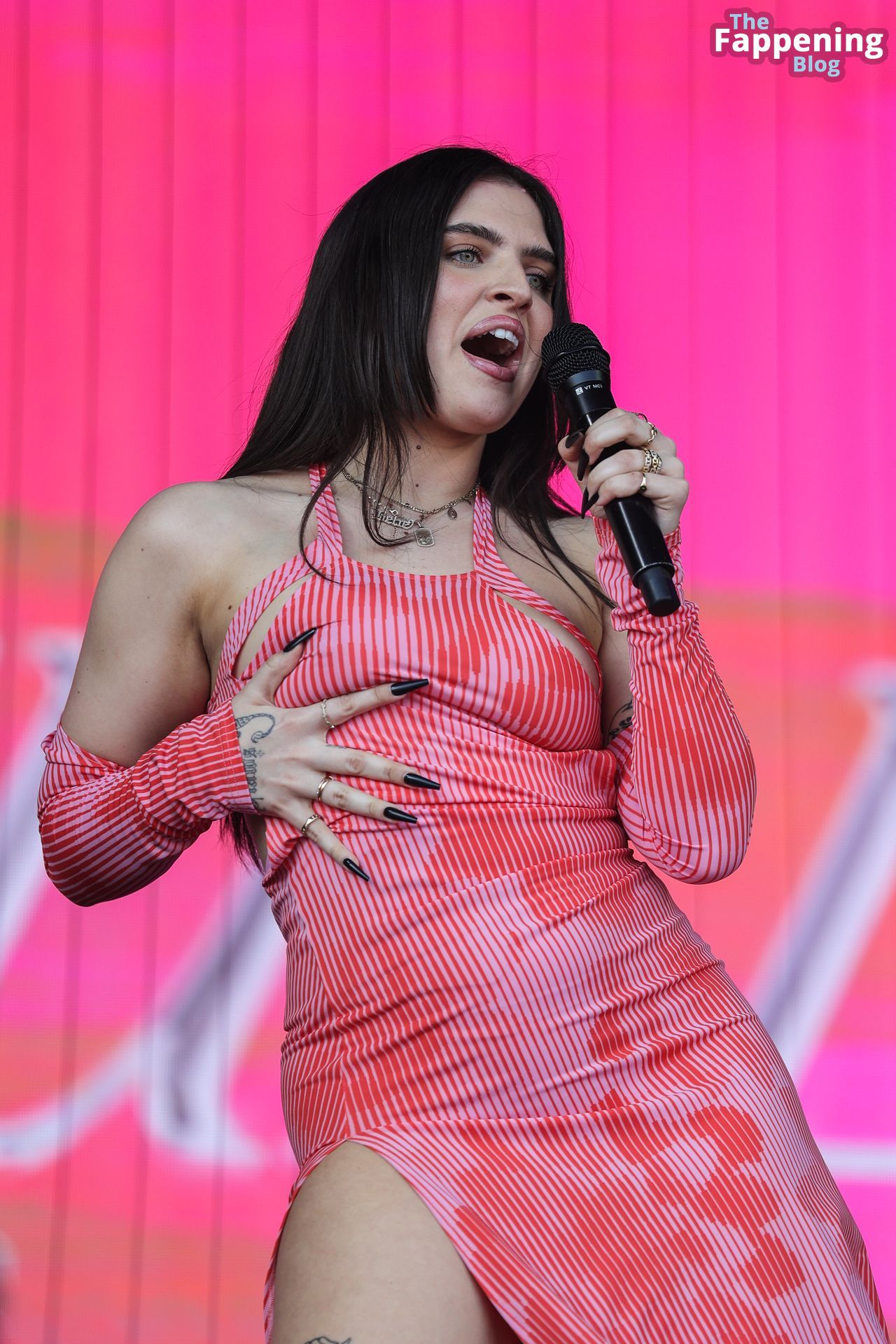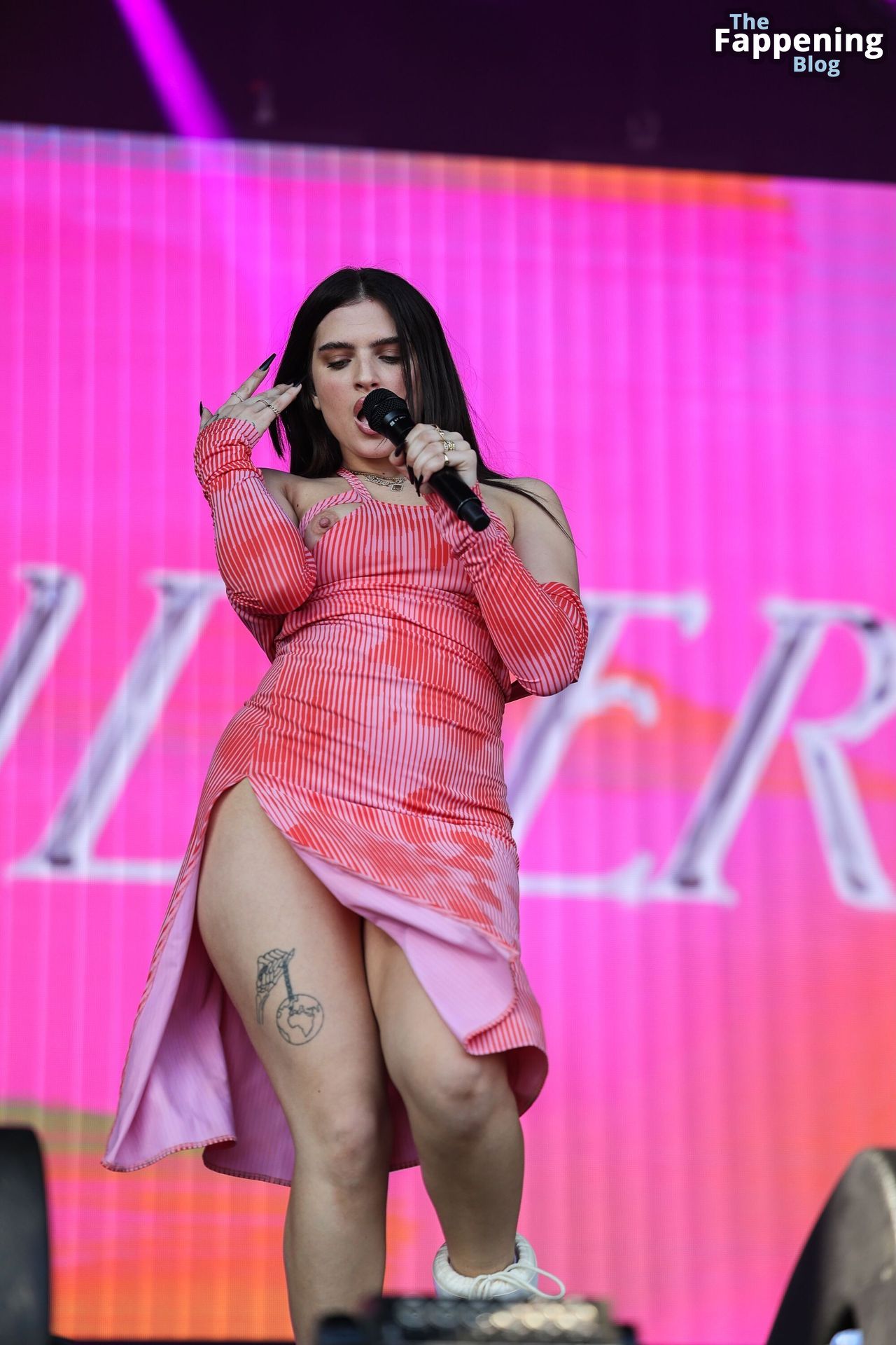 Mae Miller sofre um acidente de figurino no palco do Pride Birmingham. A cantora exibiu seu seio nu sem vergonha durante o show, balançando o microfone como uma chefe.