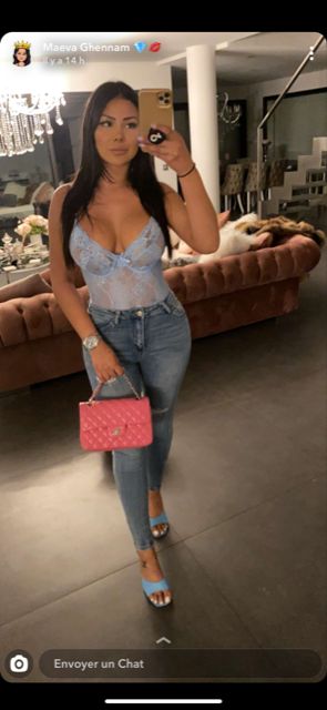 Confira as fotos levemente nuas de Maeva Ghennam do Instagram/Snapchat, 15/03/2020. Você pode ver os seios grandes, enquanto a estrela francesa de reality show de 22 anos posa com sua lingerie azul.