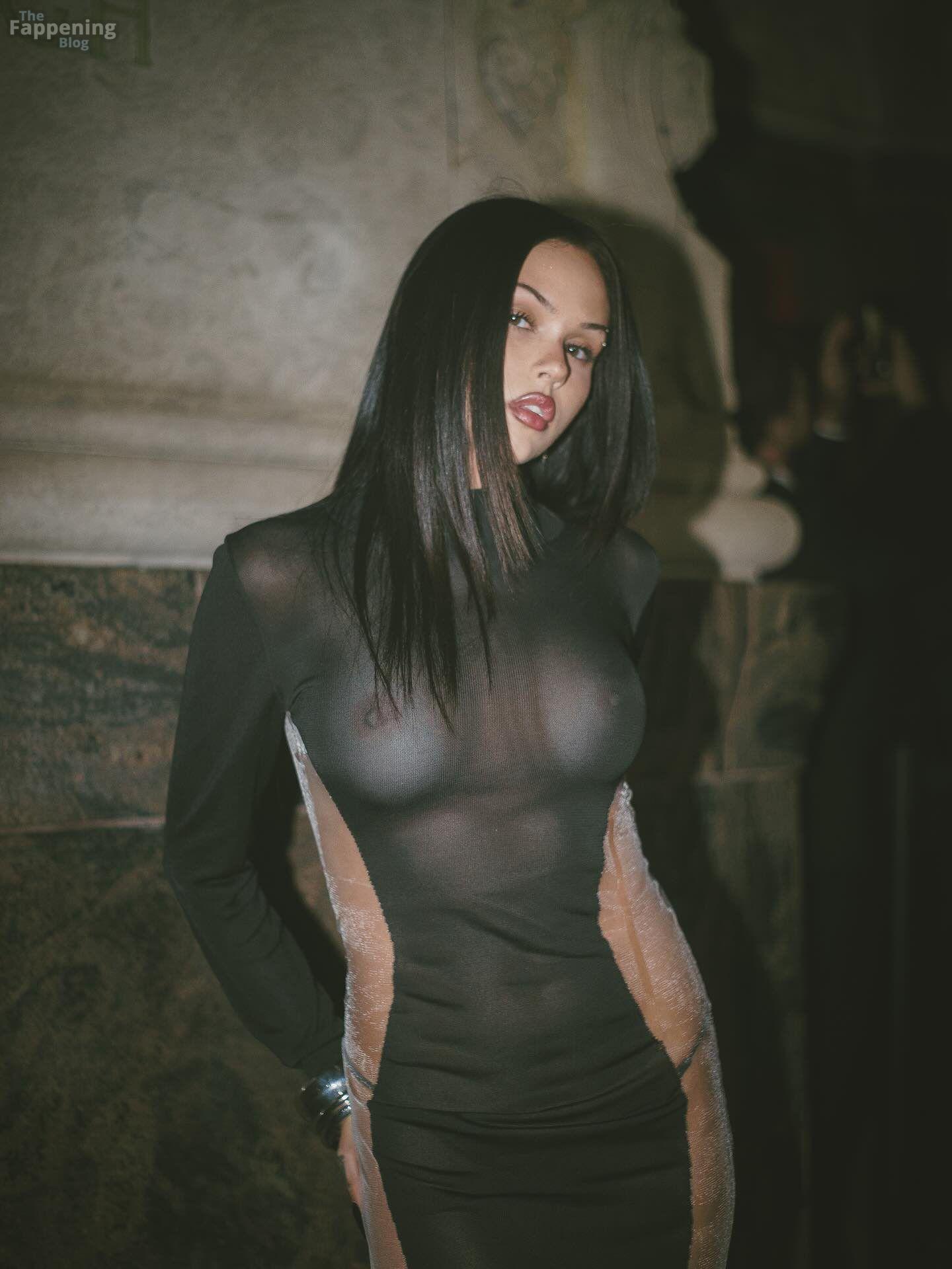 Maggie Lindemann exibe seus seios nus e bumbum em um vestido transparente Grace Ling na NYFW.