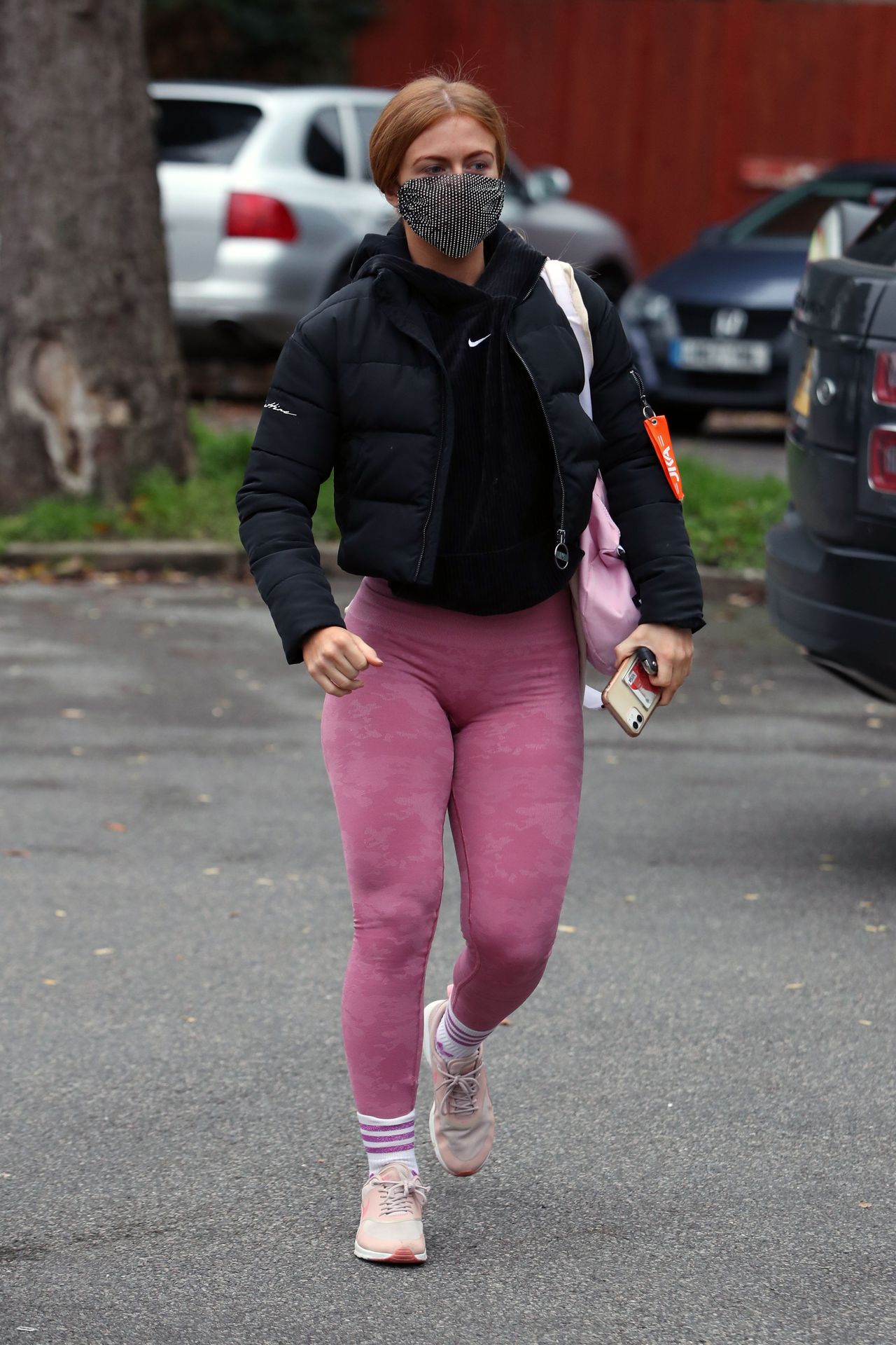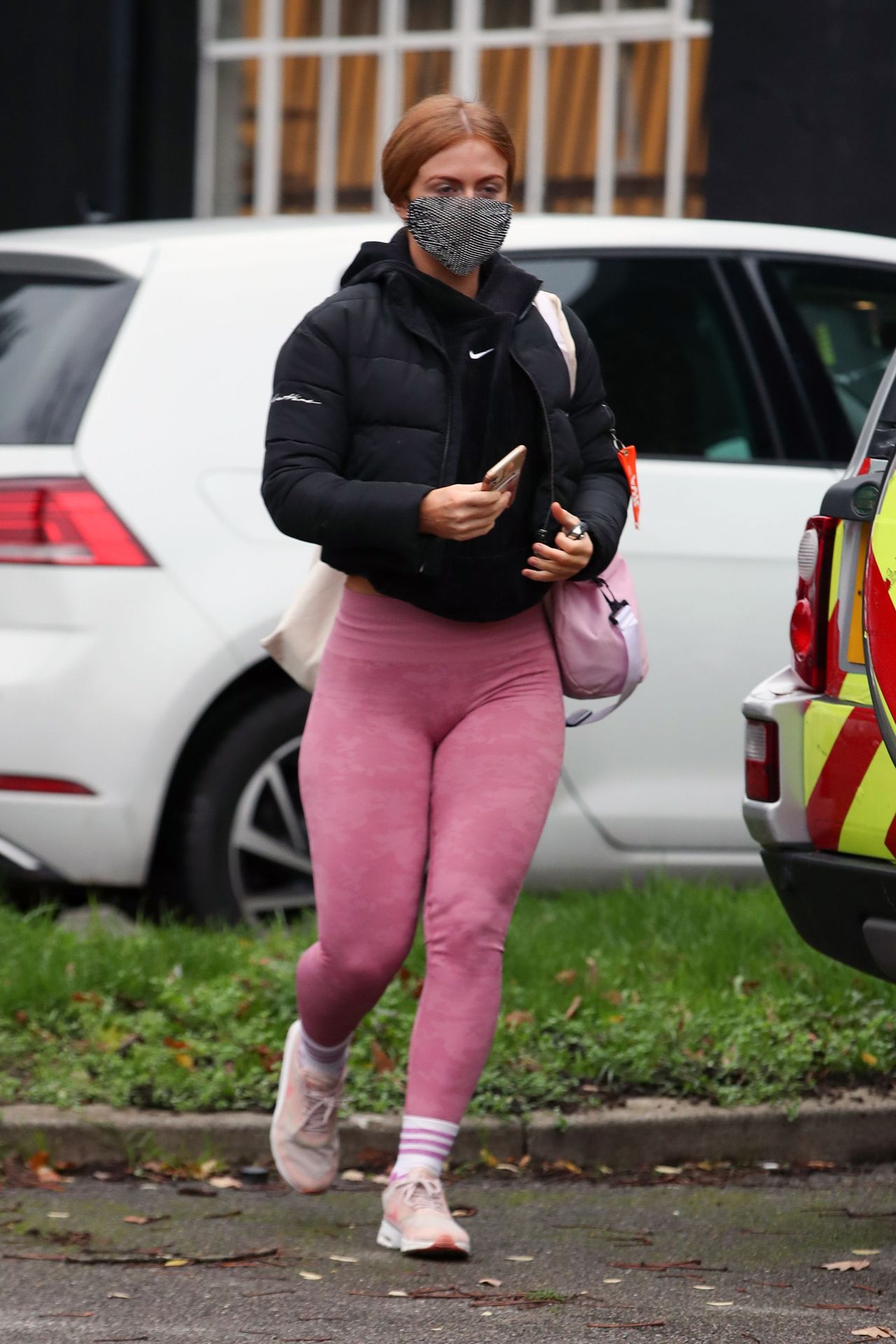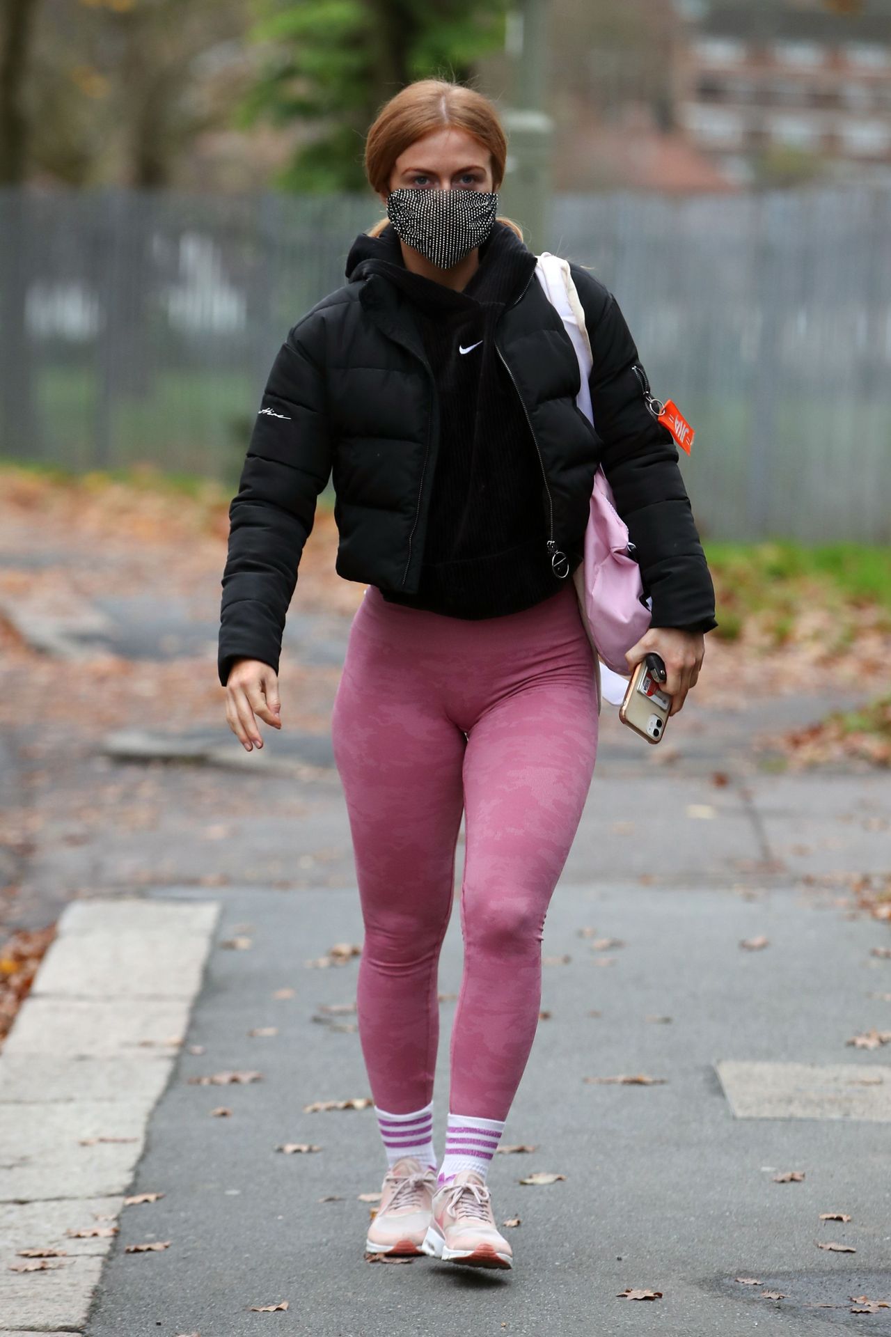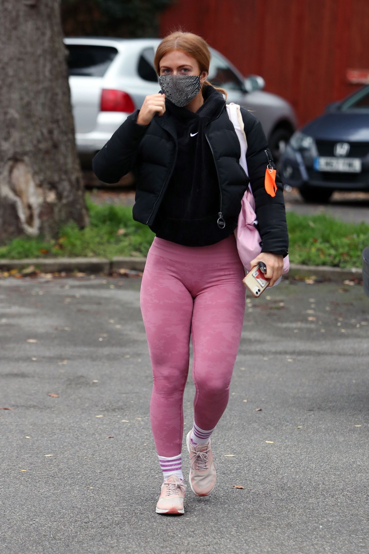“Eastenders” atriz e estrela do “Strictly Come Dancing” Maisie Smith dá o sinal de positivo enquanto é fotografada chegando e saindo dos estúdios de ensaio do Strictly usando máscara facial em Londres, 16/11/2020.