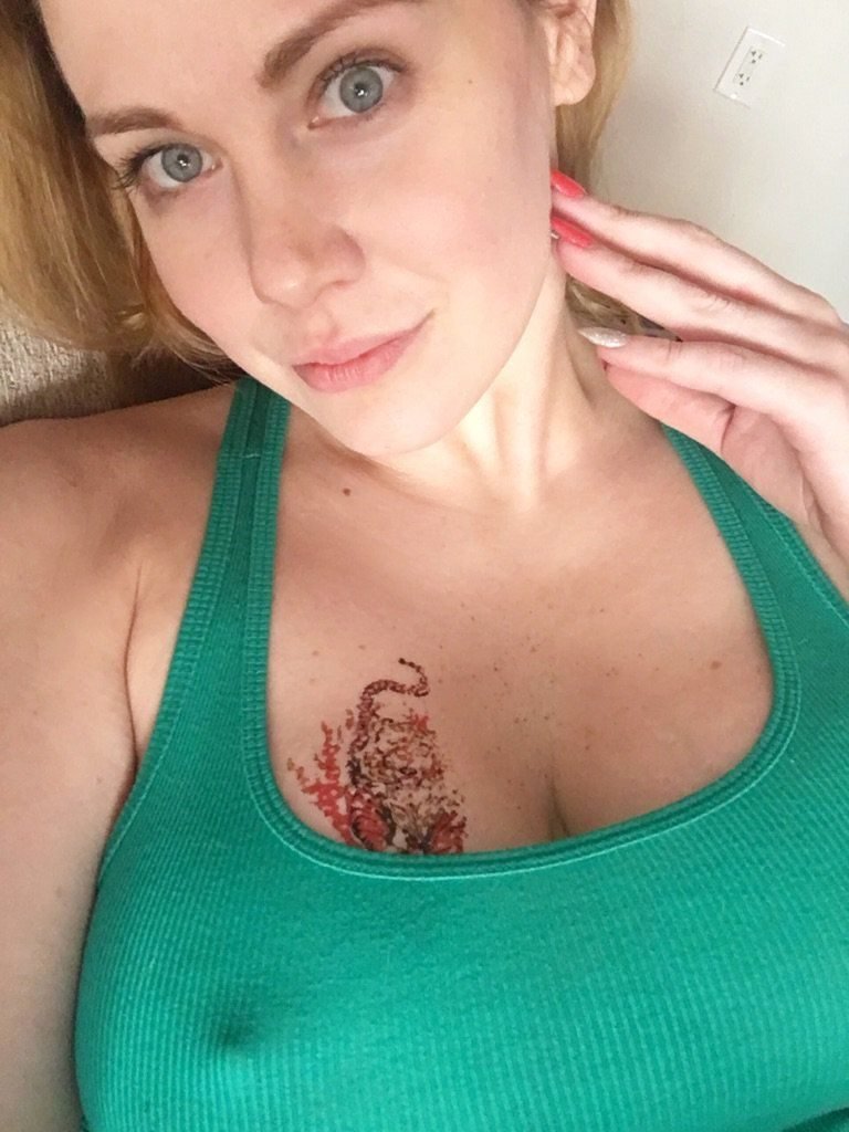 Maitland Ward mostra sua tatuagem temporária após um ensaio fotográfico recente – Snapchat, Twitter, 04/02/2017. Maitland Ward Baxter é uma atriz americana (Boston Public – TV (2002)). Idade – 40 anos (nascida em 3 de fevereiro de 1977).