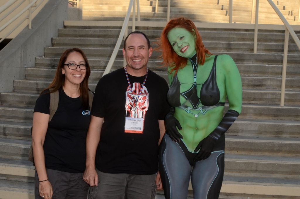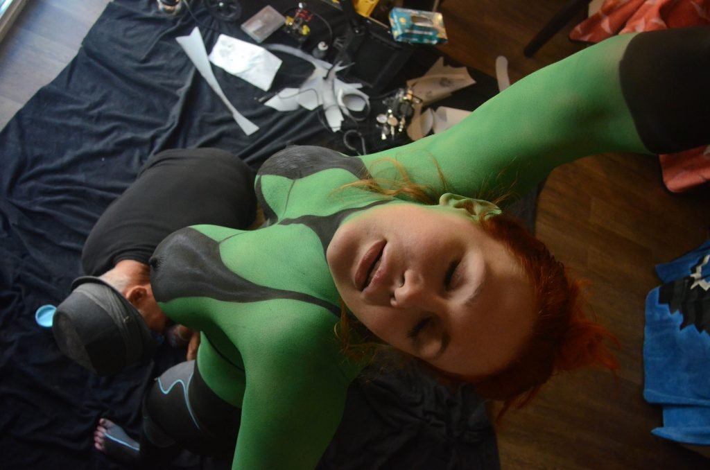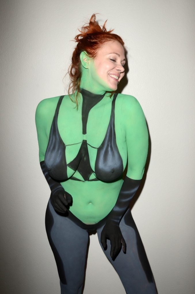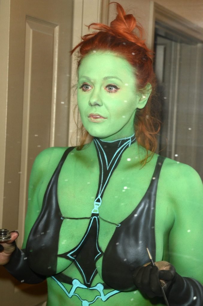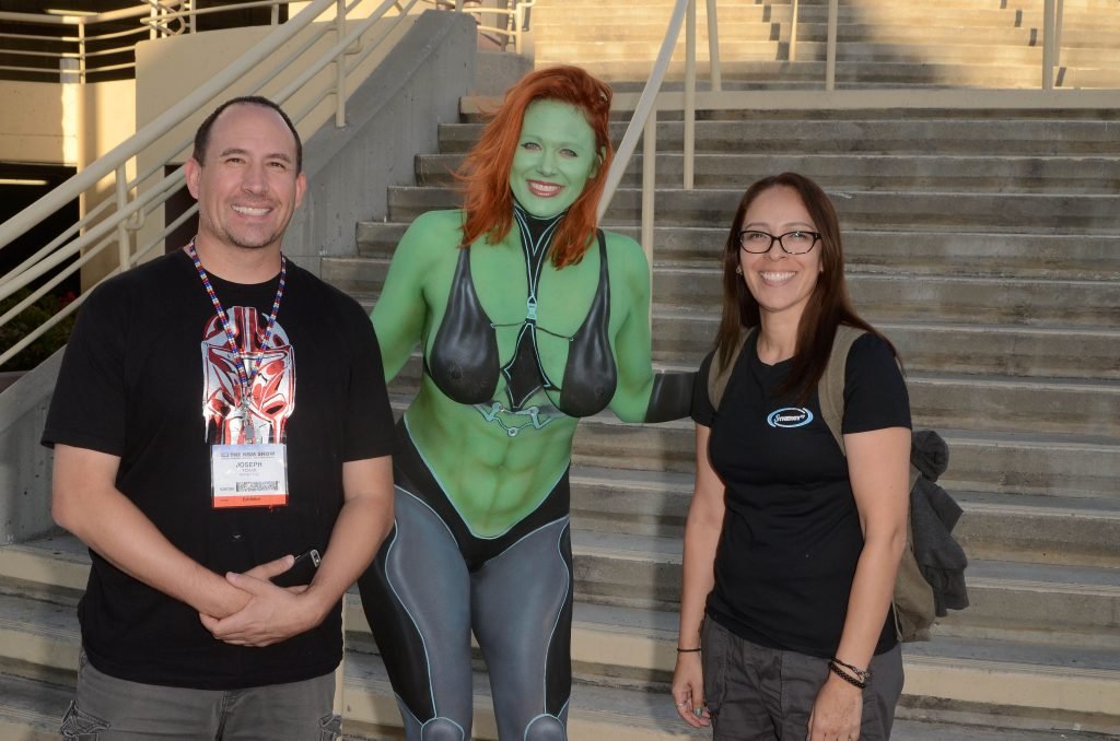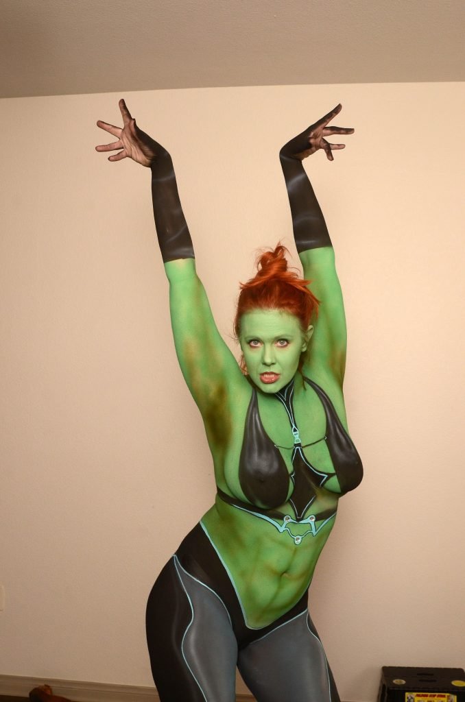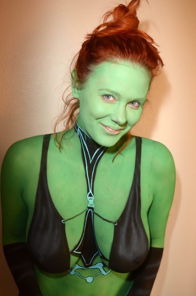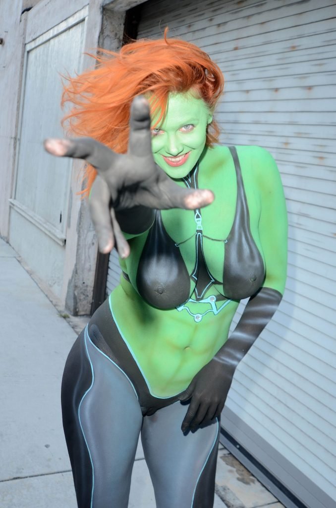 Se ela é provocante ou não, se é 'cosplayer' ou fashionista ou não, há um fato incontestável... essa mulher nunca seria permitida perto da Comic Con com essa 'roupa'. Embora as pessoas lá sejam bastante permissivas quanto às roupas que as pessoas usam, são bastante rígidas (sem trocadilhos) quando se trata de nudez. Adrianne Curry, que tem muito mais credibilidade na comunidade de cosplay e Comic Con, foi avisada para se cobrir ou sair há alguns anos por usar o que basicamente eram shorts curtíssimos. Além do fato de que isto é obviamente pintura corporal—quer dizer, vamos, seus mamilos e lábios são visíveis—ela não entraria em nenhuma das salas. A Comic Con tem uma mistura justa de sensualidade (eu já estive lá e há bastante pele visível, embora não nudez). Isso está além do que alguém acharia remotamente aceitável.