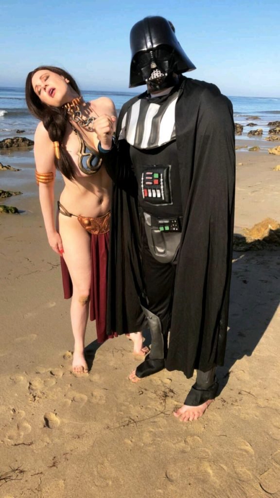 A estrela de “Boy Meets World”, Maitland Ward, celebra o “May The Fourth”, dia de Star Wars, tentando recriar o ensaio fotográfico de Carrie Fisher como Escrava em “O Retorno de Jedi” para a Rolling Stone, Matador Beach, Malibu, 05/04/2018.