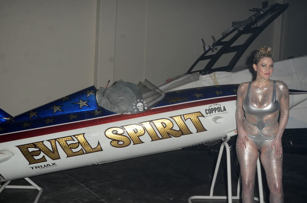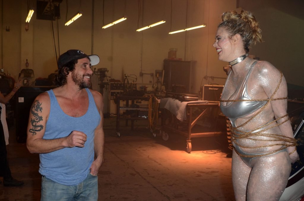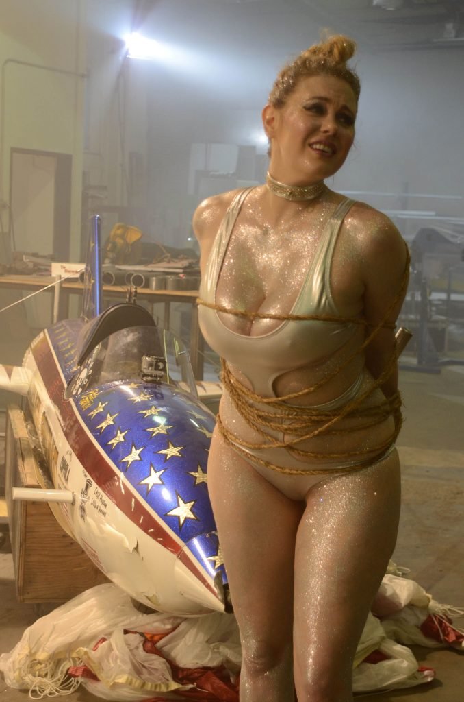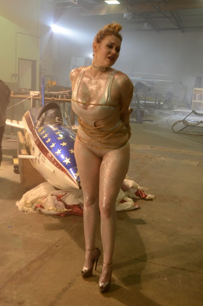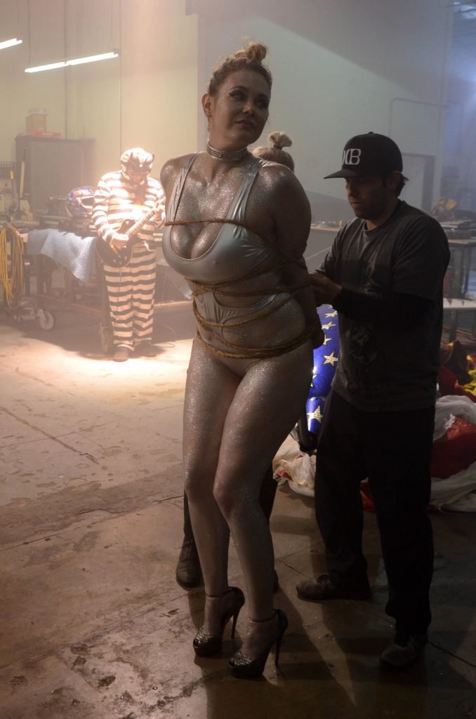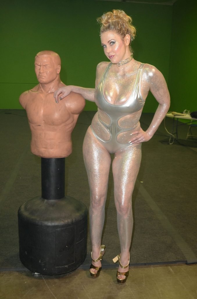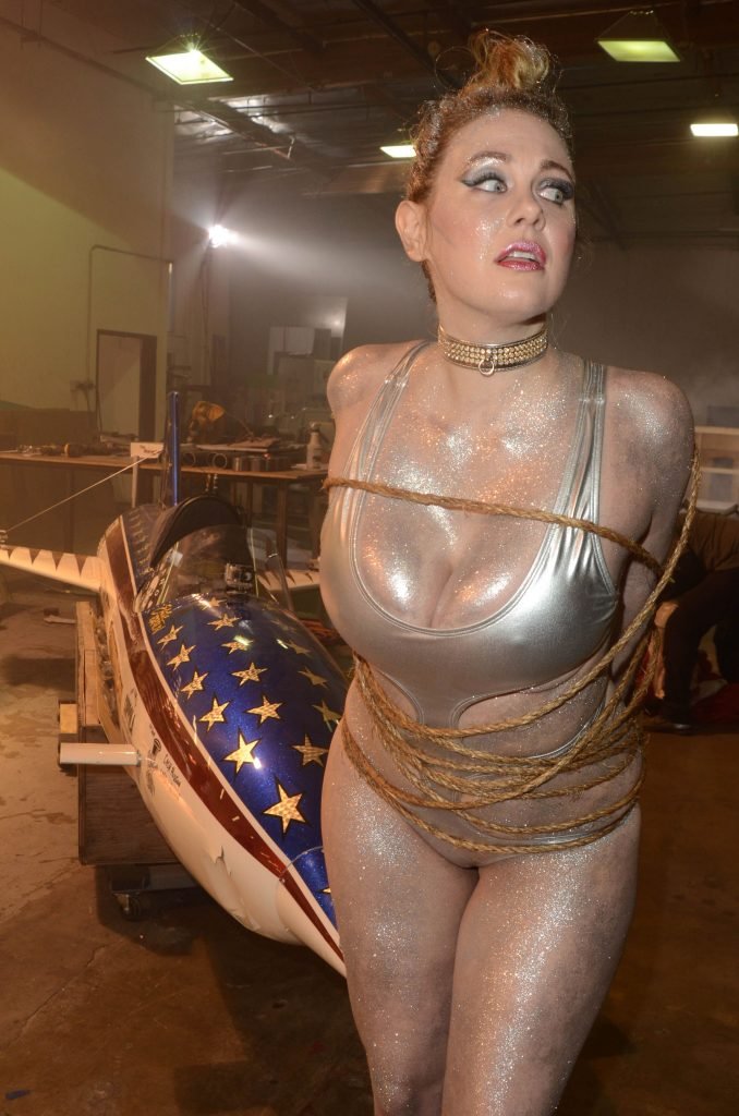 Maitland Ward usa um maiô prateado sexy no set do novo trailer ALL TIME COMICS de Samuel Bayer em Chatsworth, Califórnia, 05/03/2017. Maitland Ward Baxter é uma atriz de Long Beach, EUA. Idade – 40 (3 de fevereiro de 1977).