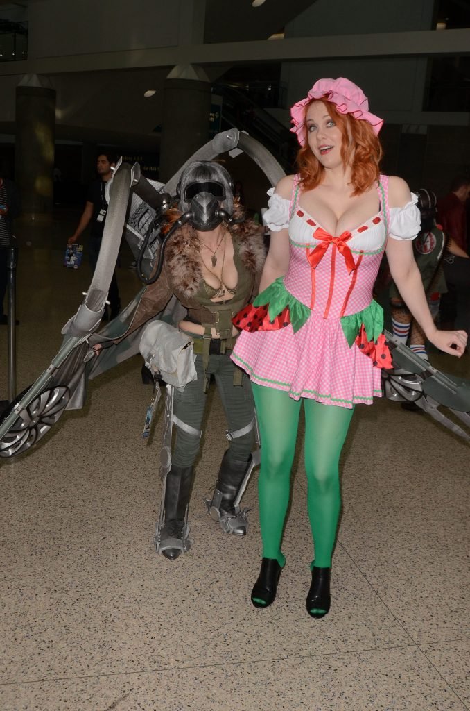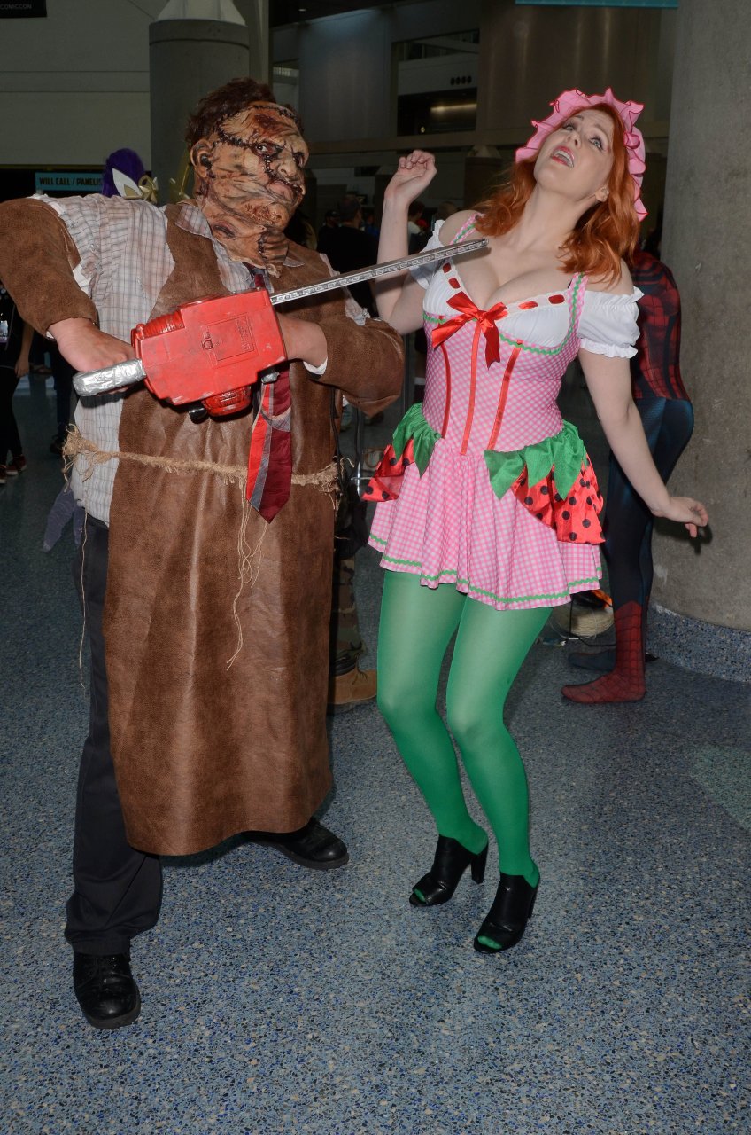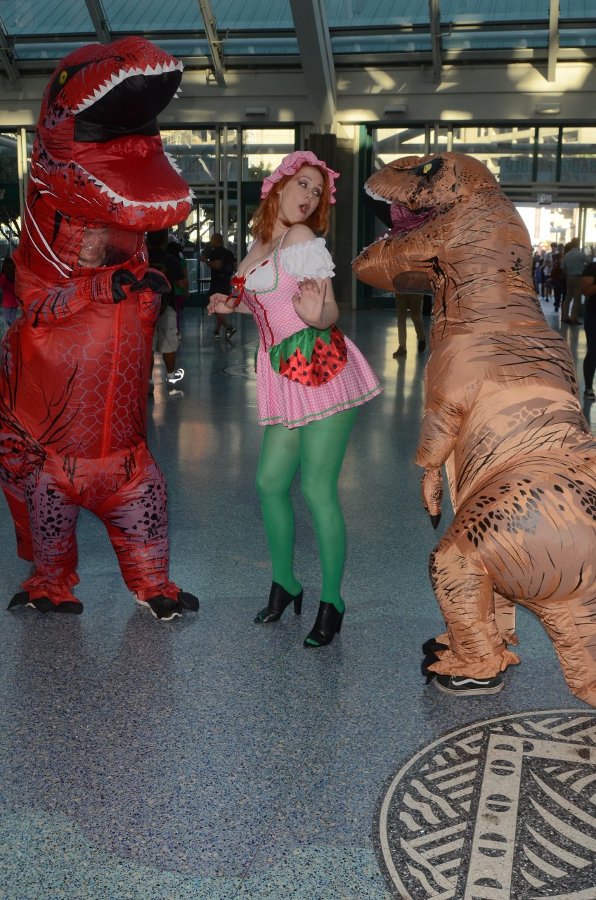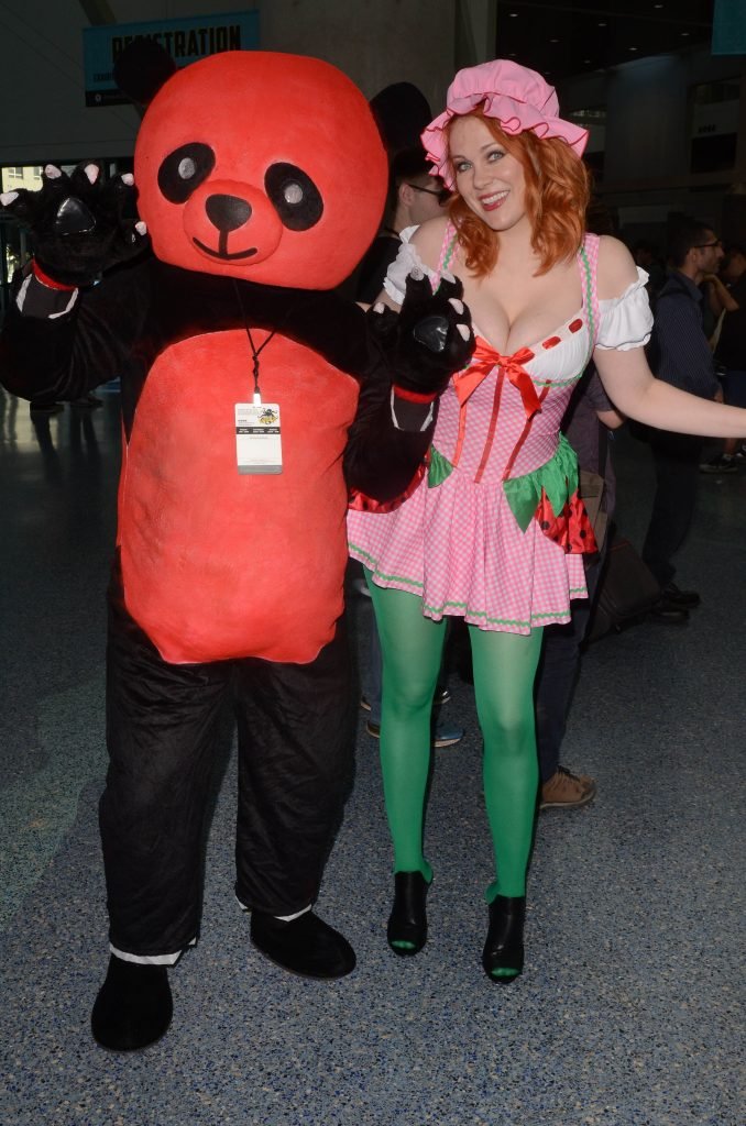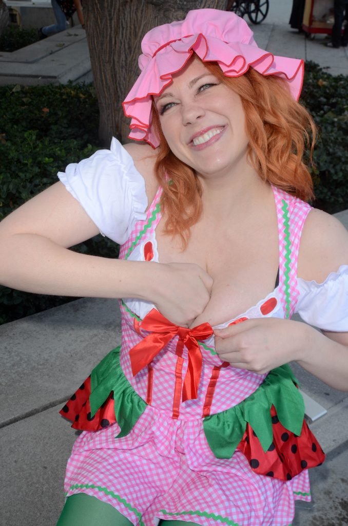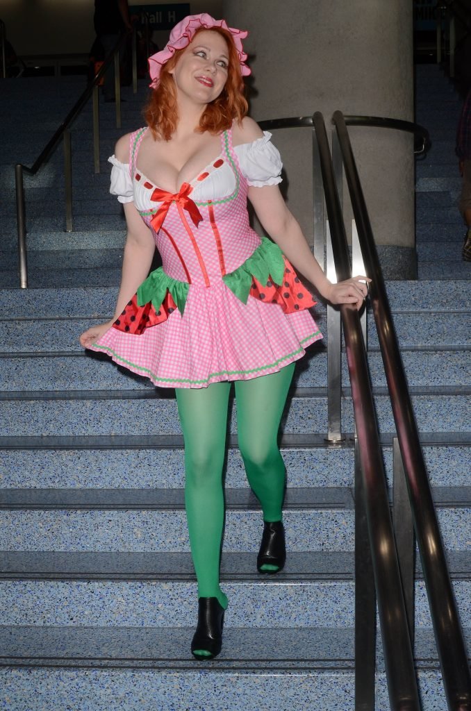 “Boy Meets World” gata Maitland Ward, vestida como “Strawberry Shortcake” na Comic-Con de Los Angeles do Stan Lee, fica bagunçada enquanto come um Sorvete de Strawberry Shortcake, 28/10/2017.