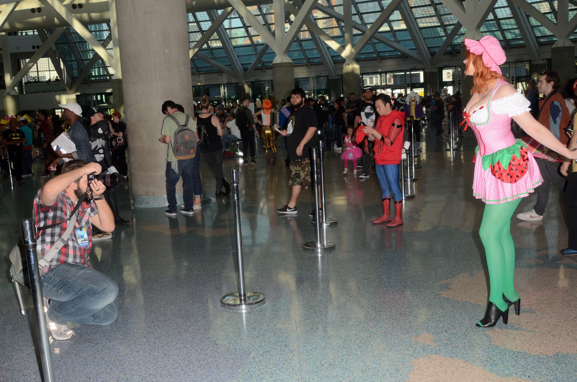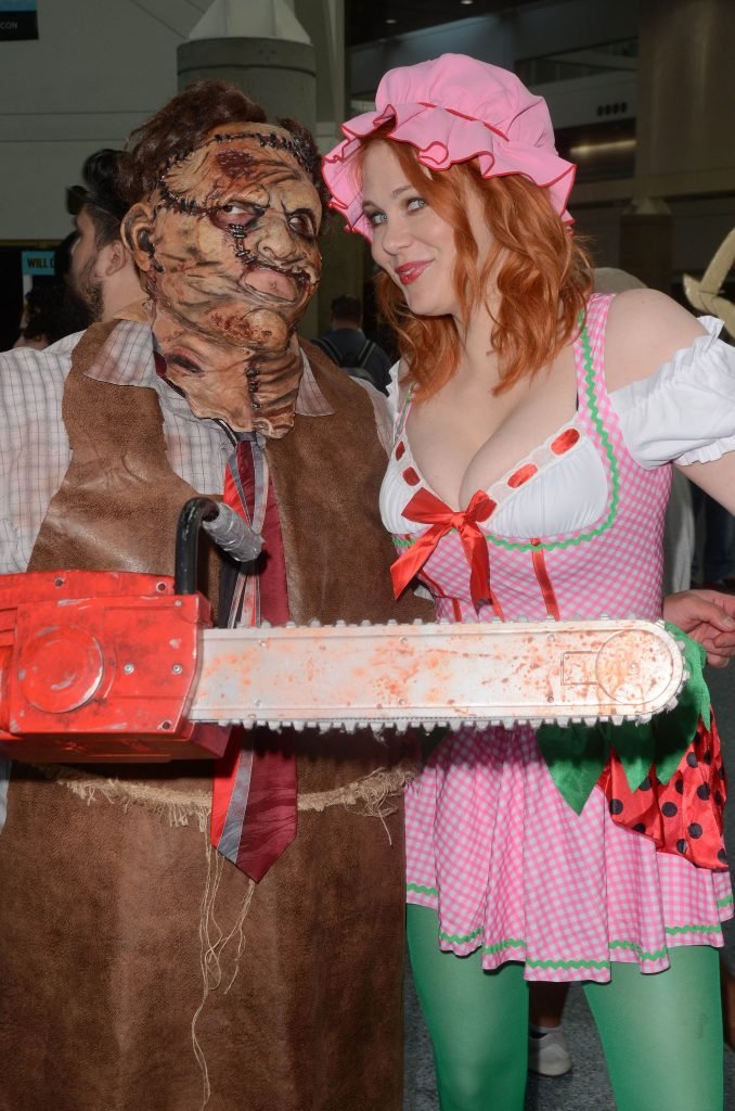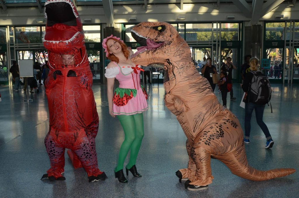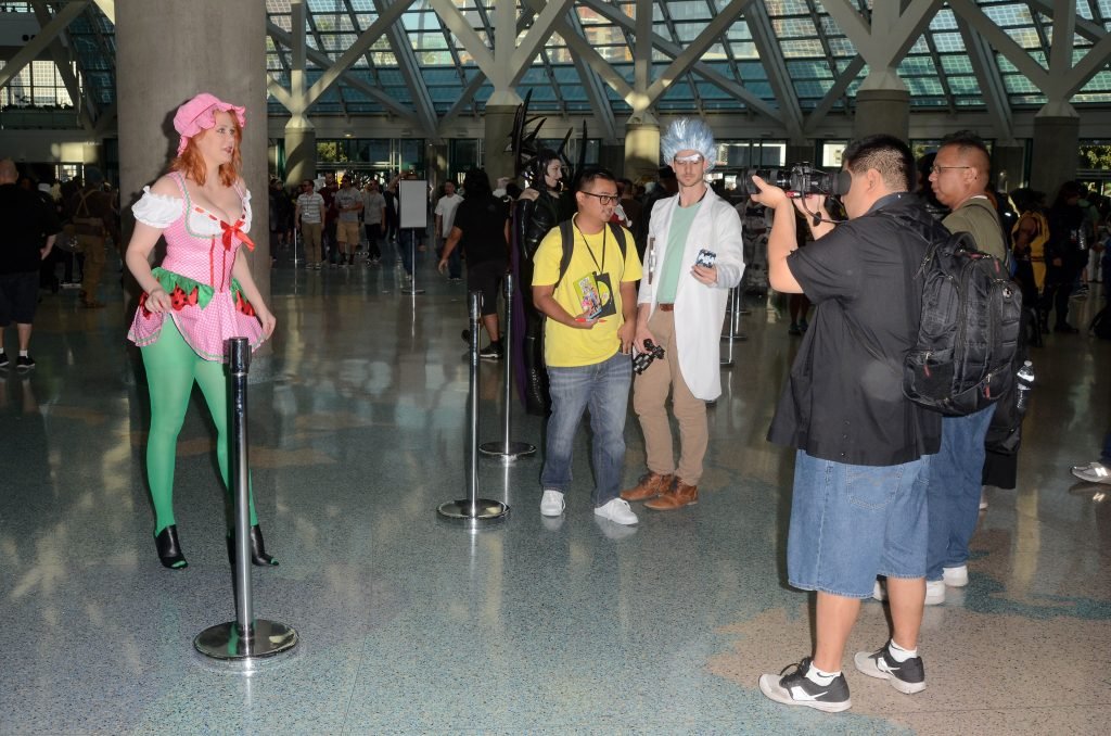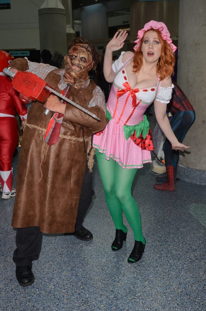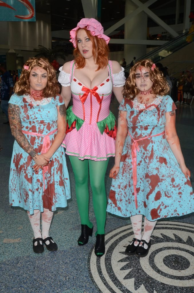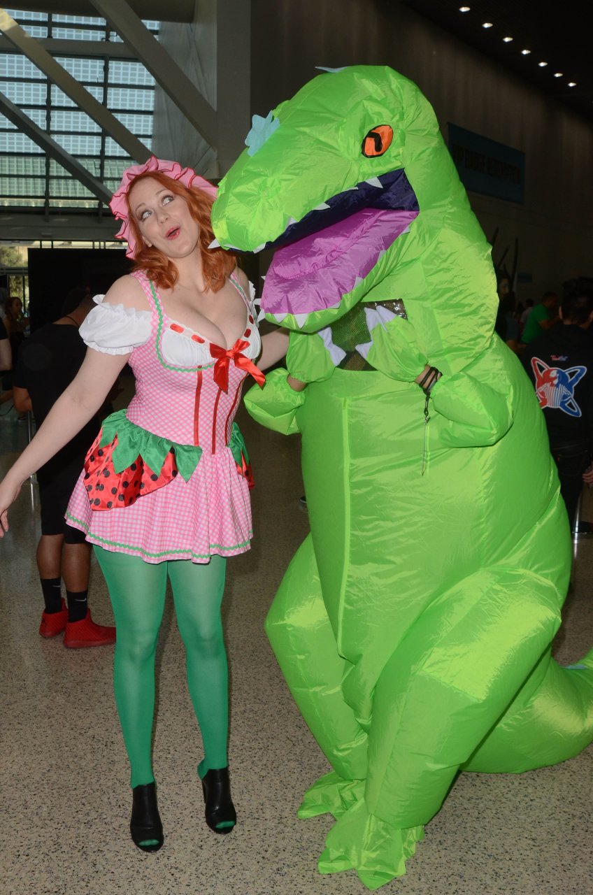 “Boy Meets World” gata Maitland Ward, vestida como “Strawberry Shortcake” na Comic-Con de Los Angeles do Stan Lee, fica bagunçada enquanto come um Sorvete de Strawberry Shortcake, 28/10/2017.