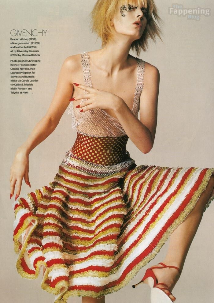 Malin Persson nasceu em 26 de abril de 1979 em Osby, Suécia. Ela é uma modelo de moda sueca. Trabalha em tempo integral em Paris, Nova York e Milão. Ela mora em Roma com seu marido Damiano Mazzarella e seu filho Tiago.