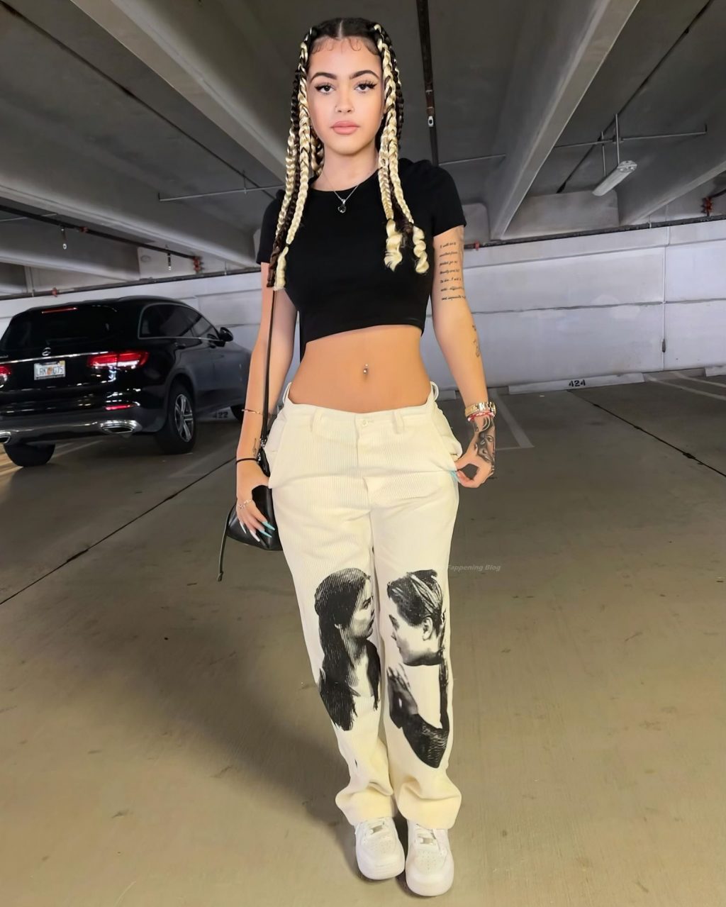 A estrela do TikTok Malu Trevejo (18) provoca os fãs com seu corpo deslumbrante, posando de biquíni e com roupas sensuais para sessões de fotos nas redes sociais (2021).