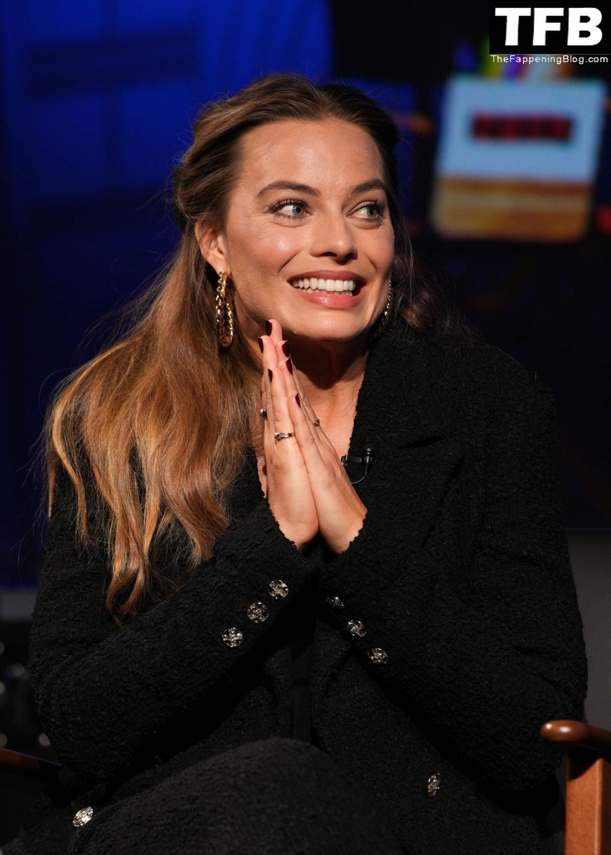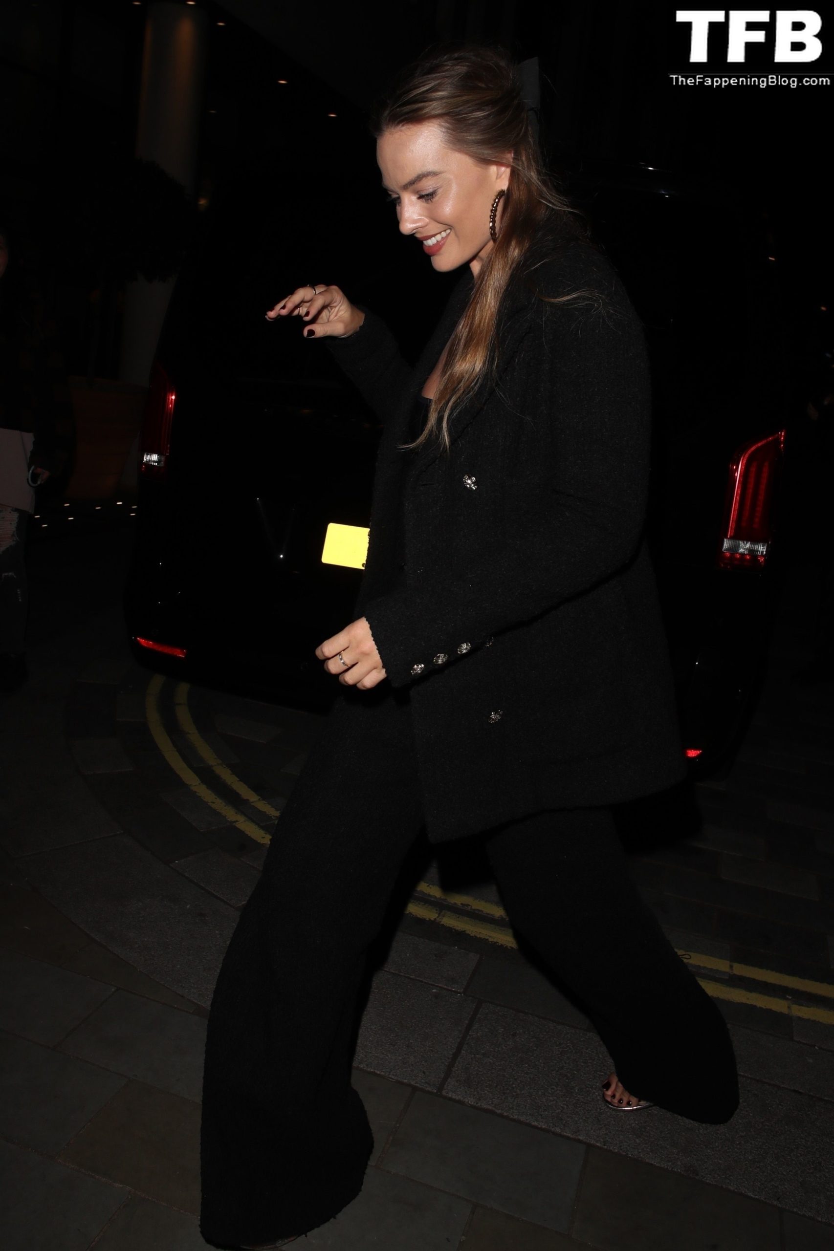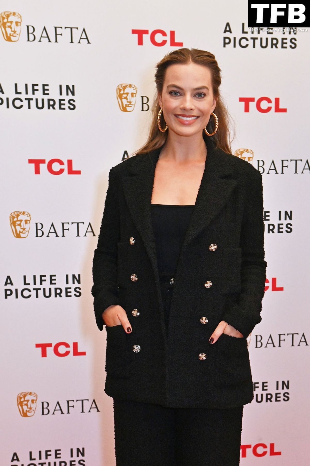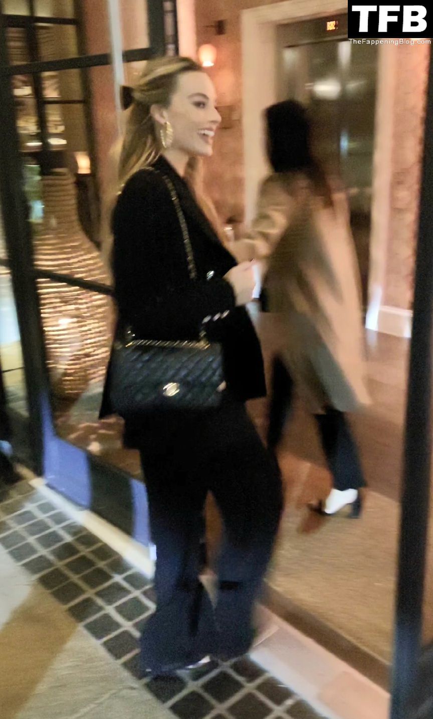 Margot Robbie é fotografada no BAFTA A Life in Pictures em Londres, 22/11/2022. A atriz sai do BAFTA em Piccadilly. Ela sorri para os fãs ao chegar de volta ao seu hotel.