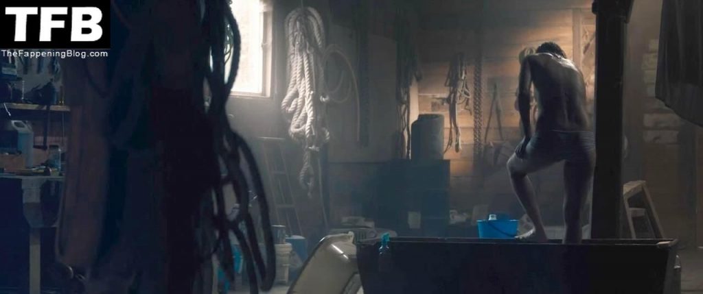 Assista à cena nua (coberta) de Margot Robbie em “Z for Zachariah” (2015), mostrando suas pernas sensuais, bumbum e lateral do seio.