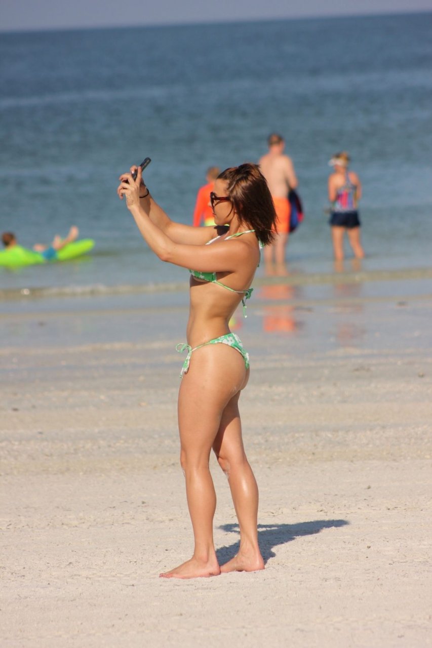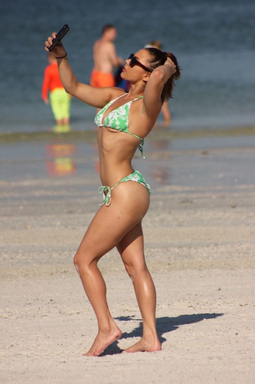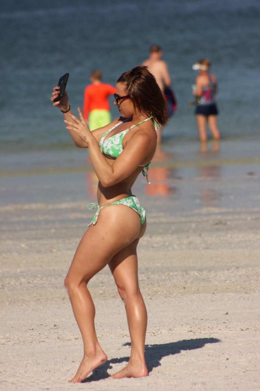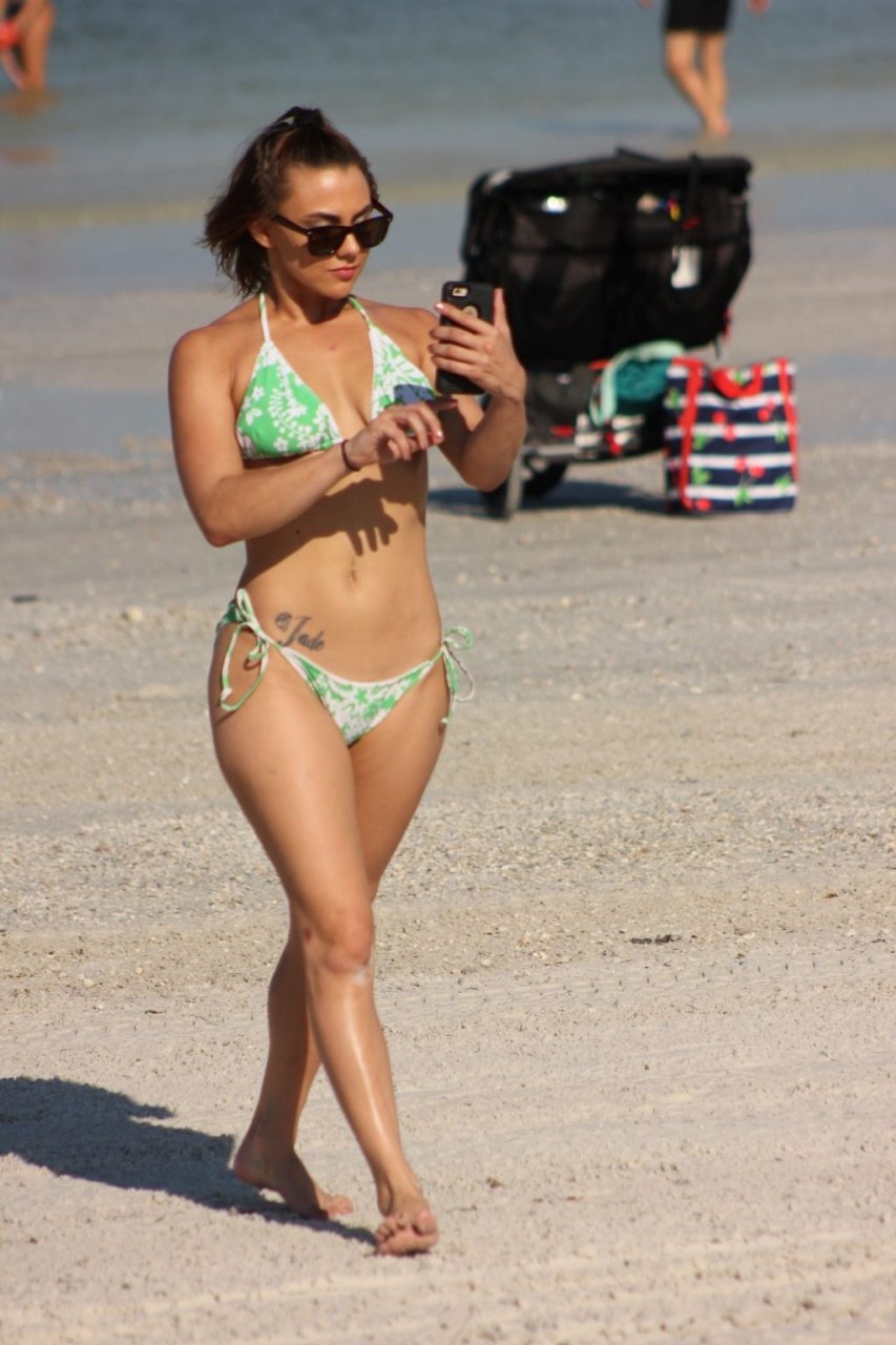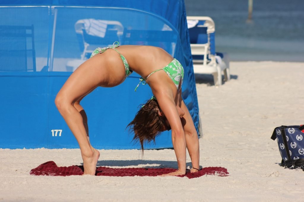 Maria Jade mostra sua flexibilidade enquanto aproveita um lindo dia na praia em Miami, 14/10/2018. A modelo tonificada e atriz de filmes adultos também foi líder de torcida no ensino médio, de acordo com sua conta no Twitter.