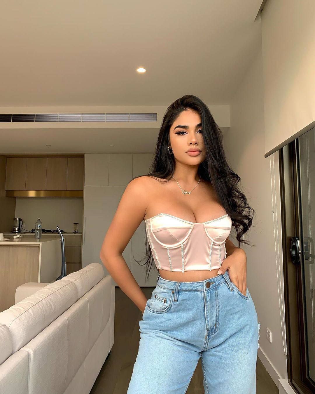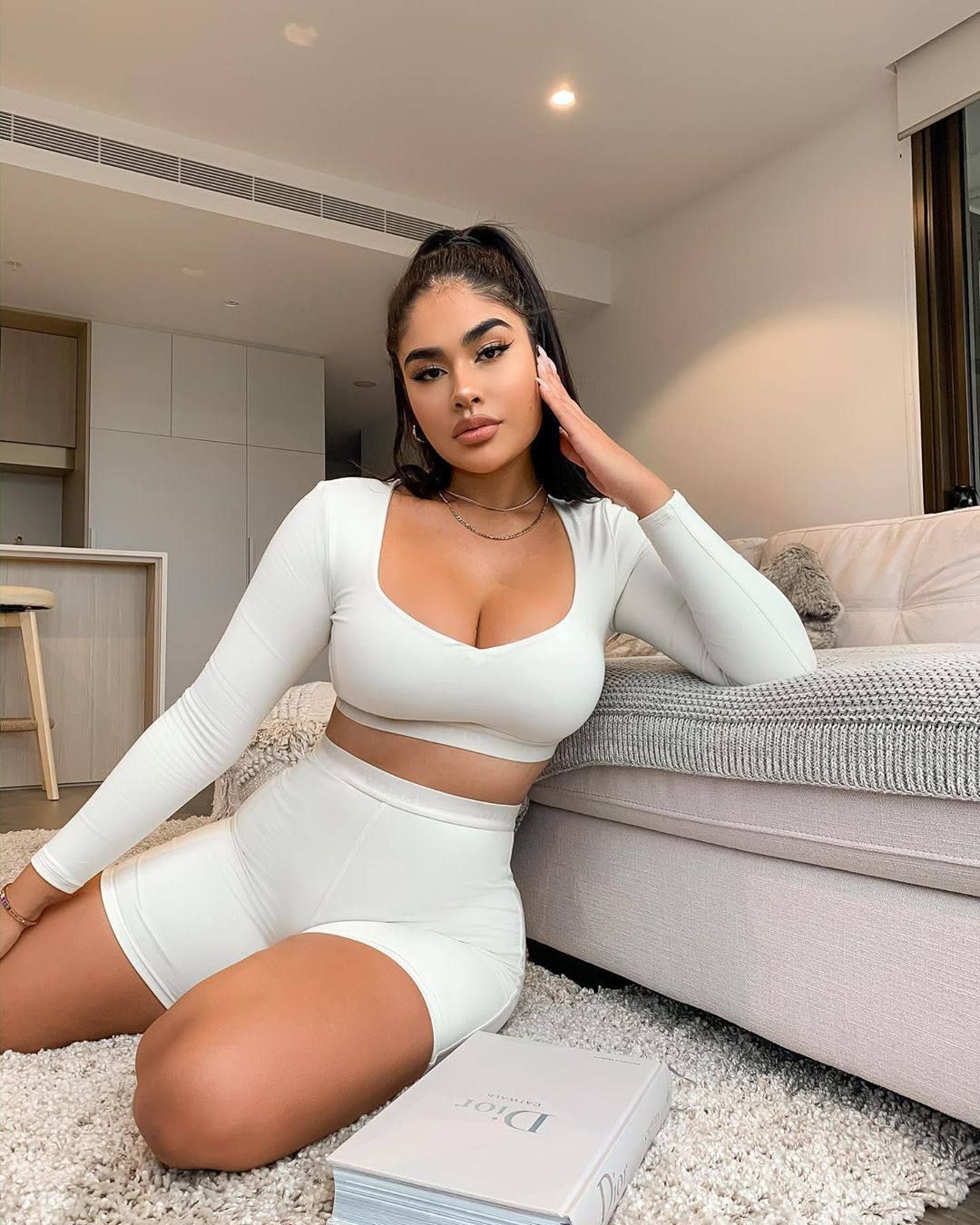 Confira a coleção de fotos sexy de Maria Perez do Instagram (2020). A modelo morena de 23 anos gosta de mostrar suas curvas, posando de biquíni/lingerie e roupas coloridas para seus 1,3M de seguidores.