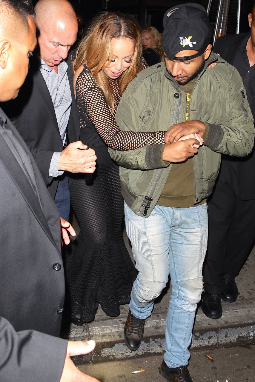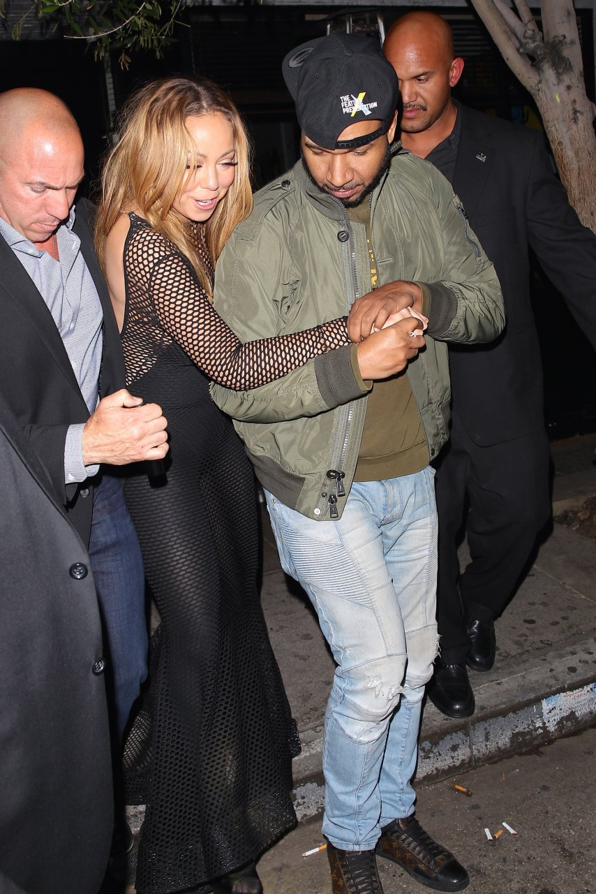 Mariah Carey sem sutiã em uma malha preta – Vista no Berri’s Cafe para um jantar em West Hollywood, 06/05/2016. Um belo vislumbre da aréola! Mariah Carey é uma cantora, compositora, produtora musical e atriz ocasional americana. Idade: 47 (27 de março de 1969).