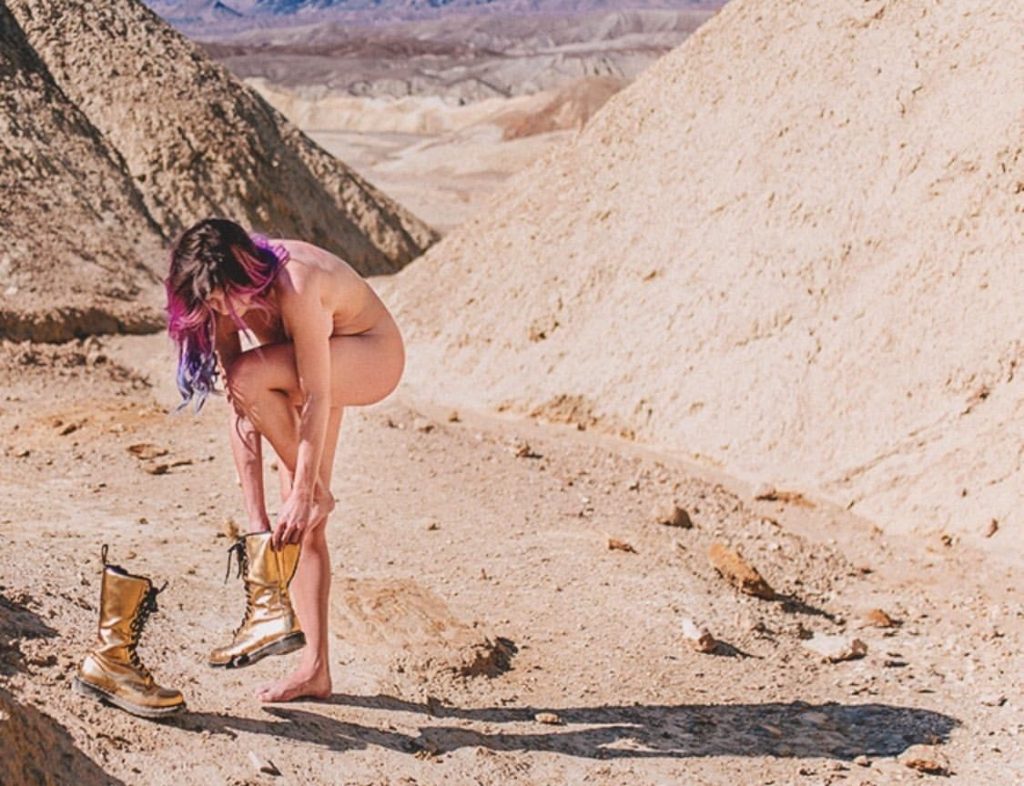 Aqui estão as fotos nuas de Mariana de Souza Alves Lima do seu último ensaio fotográfico por Fernando Schlaepfer em Death Valley, Califórnia (2020). MariMoon exibiu seu bumbum nu e cobriu seus grandes seios naturais.