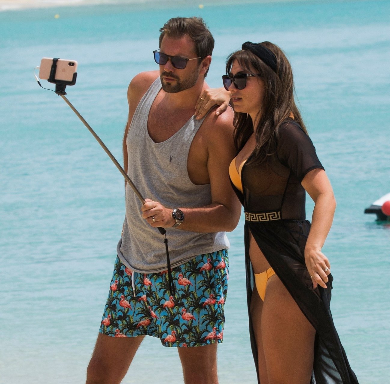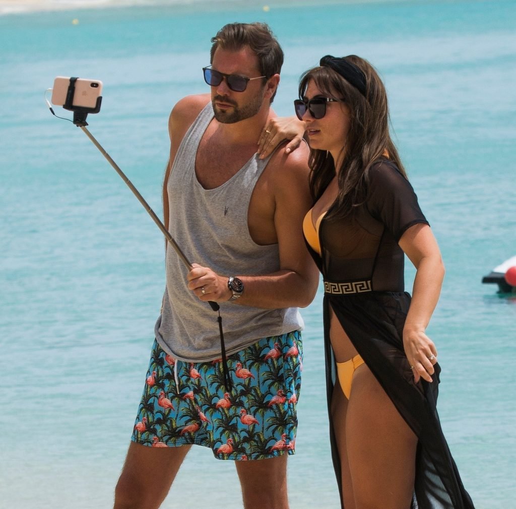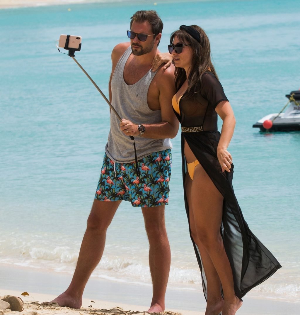 A ex-cantora do X Factor e apresentadora de TV Marina Berry com o marido, o apresentador de rádio Justin Dealey, foram vistos de férias em Barbados, 07/05/2019.