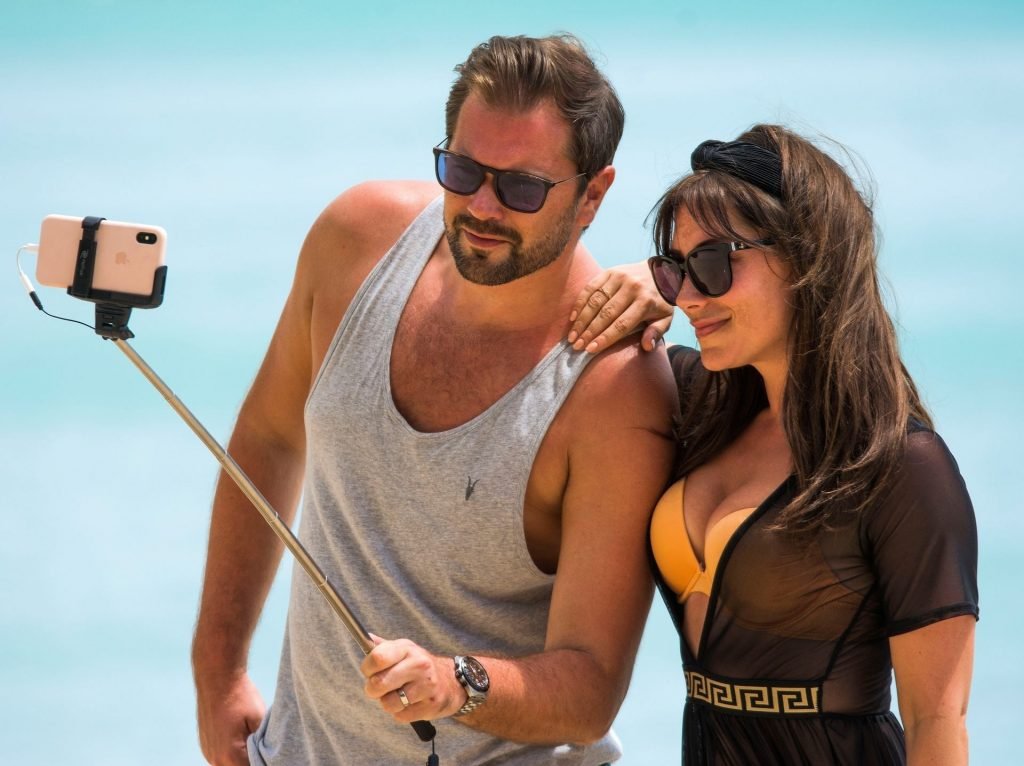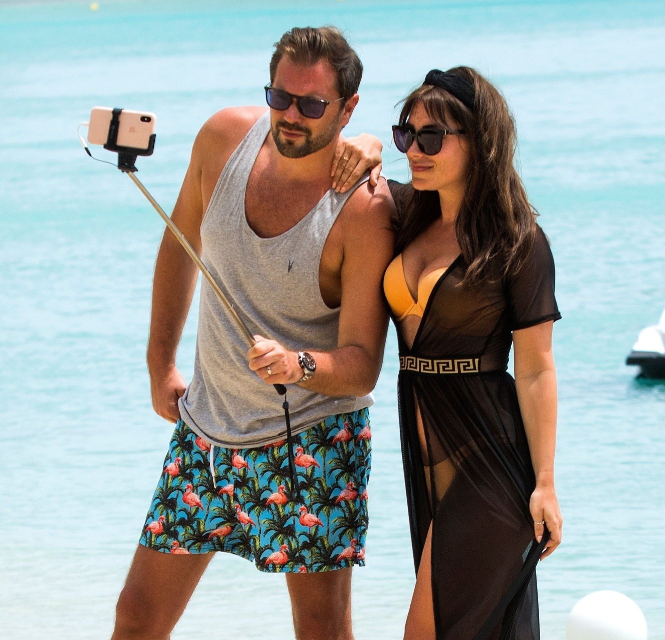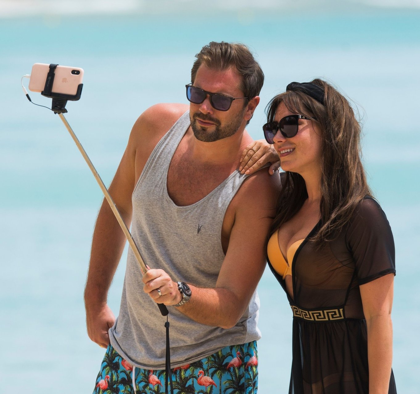 A ex-cantora do X Factor e apresentadora de TV Marina Berry com o marido, o apresentador de rádio Justin Dealey, foram vistos de férias em Barbados, 07/05/2019.
