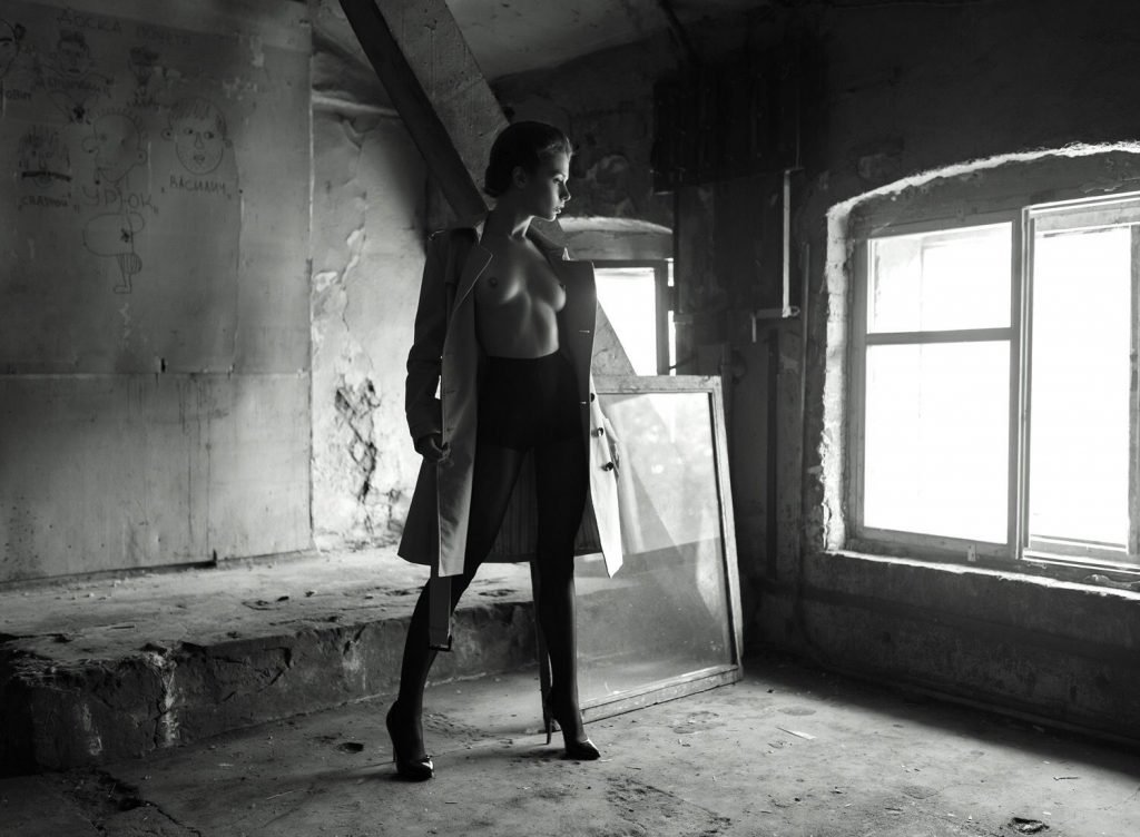 Modelo jovem russa Marta Gromova mostra sua figura deslumbrante, pernas sexy, seios perfeitos e pubis em um novo ensaio fotográfico de Igor Burba (2019).