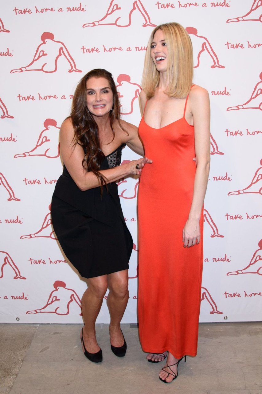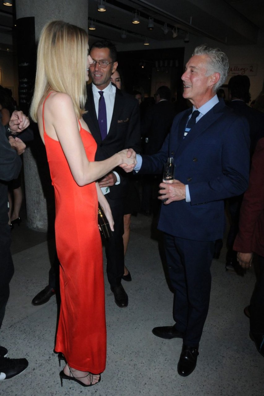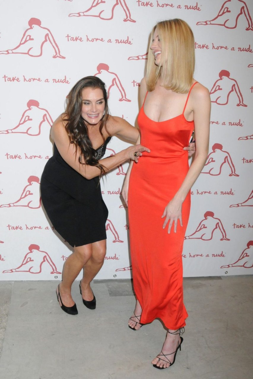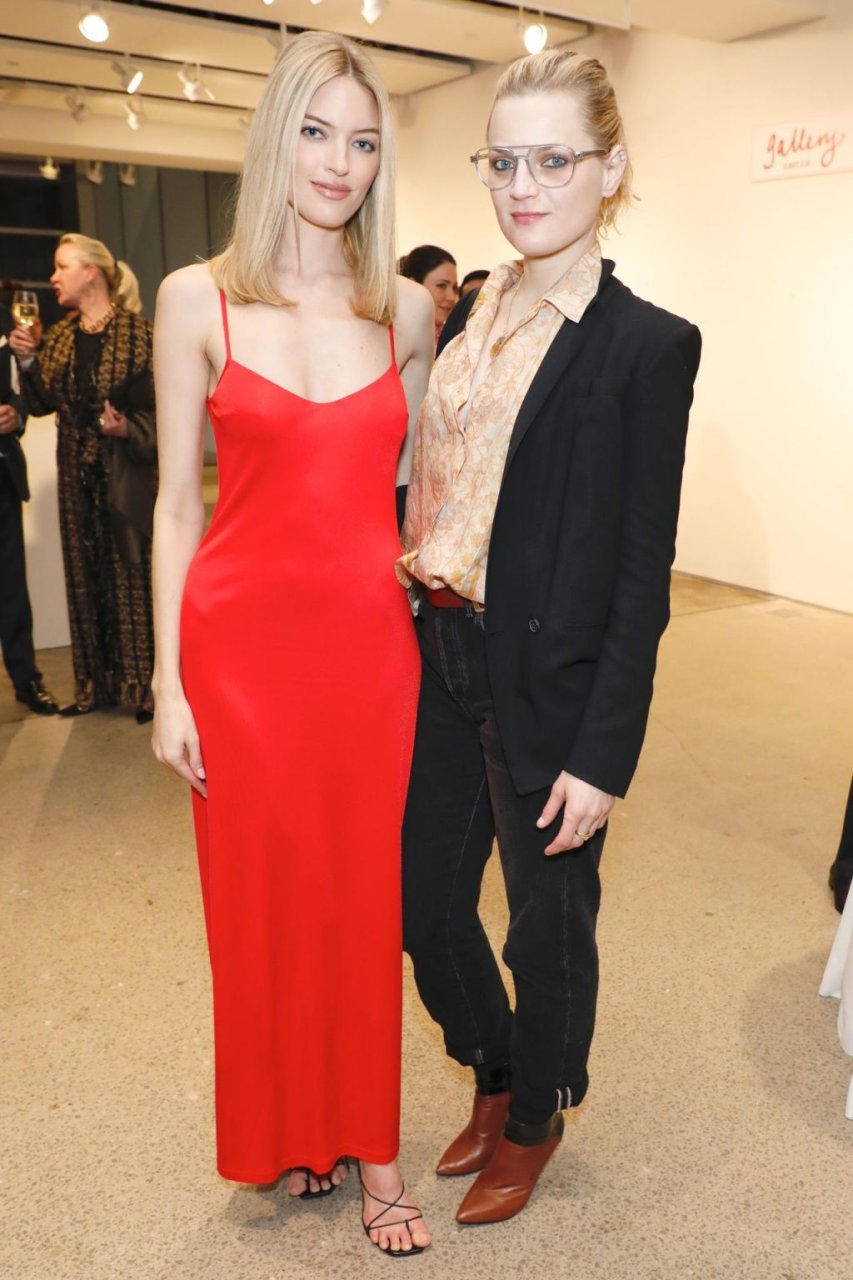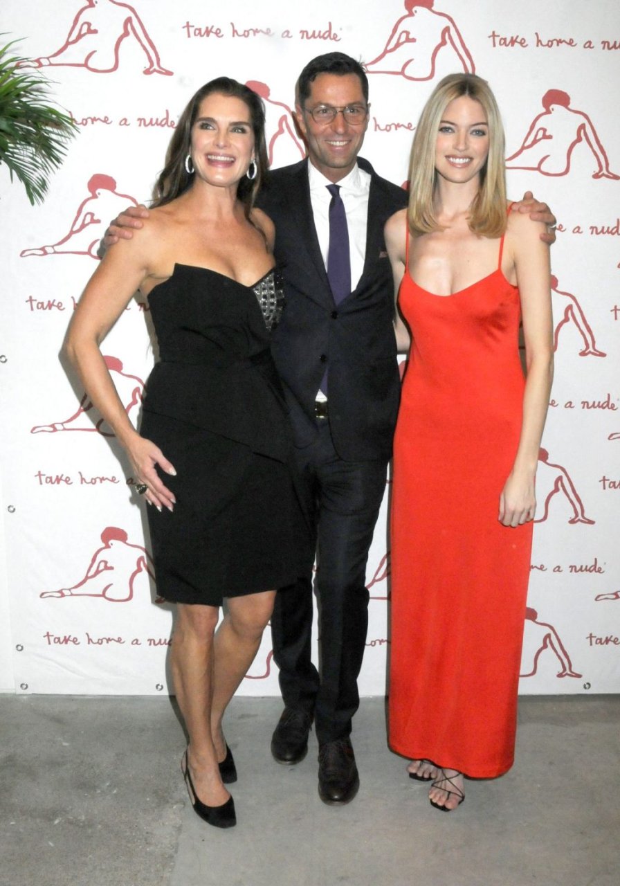 A modelo Martha Hunt foi vista sem sutiã em um vestido vermelho junto com Brooke Shields, David Kratz, Jason McDonald e outras celebridades no 28º evento anual Take Home A Nude da NY Academy of Art em Nova York, 15/10/2019.