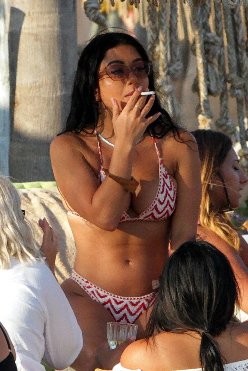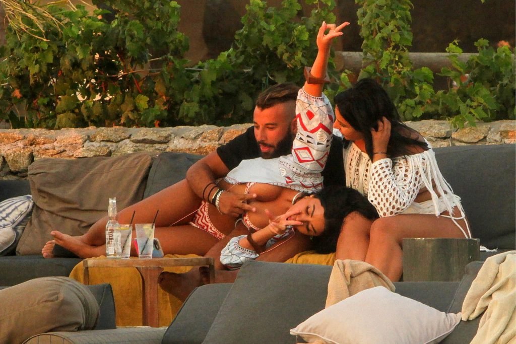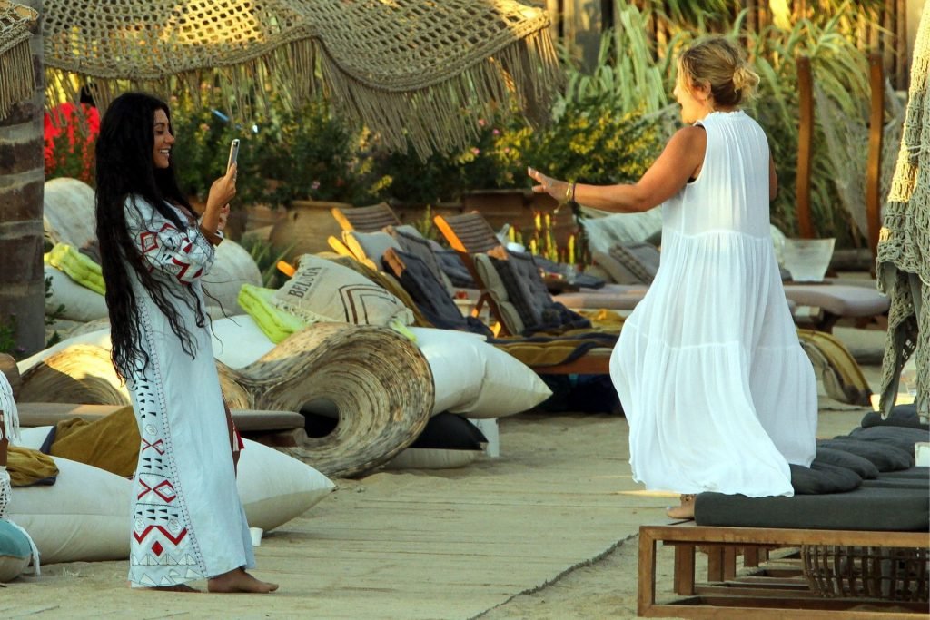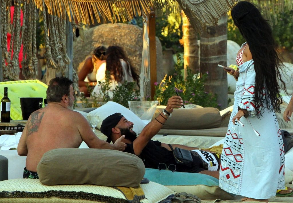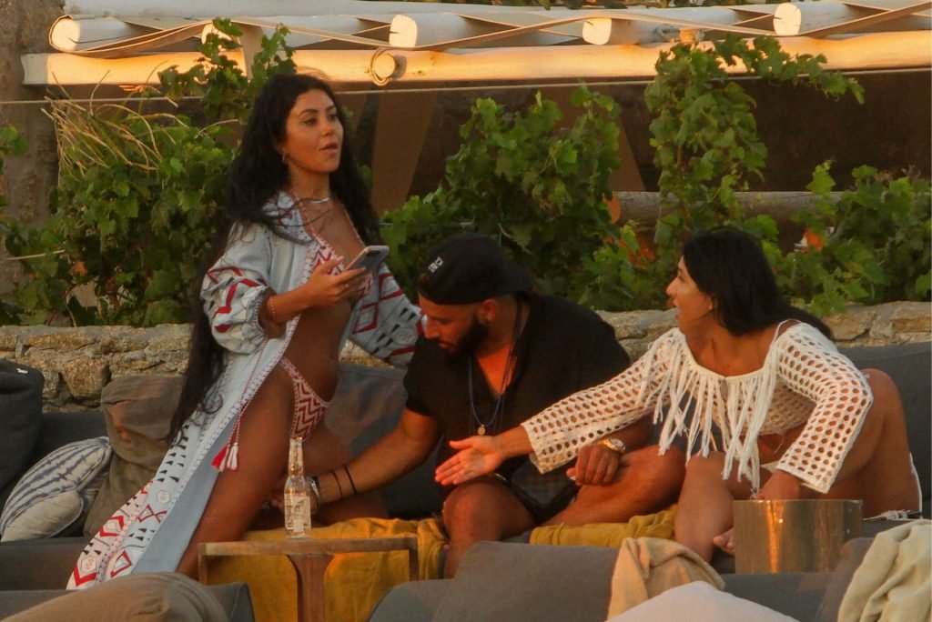 Martha “Mafs” Kalifatidis parece estar se divertindo com um homem misterioso durante as férias em Mykonos, Grécia, 16/08/2019.