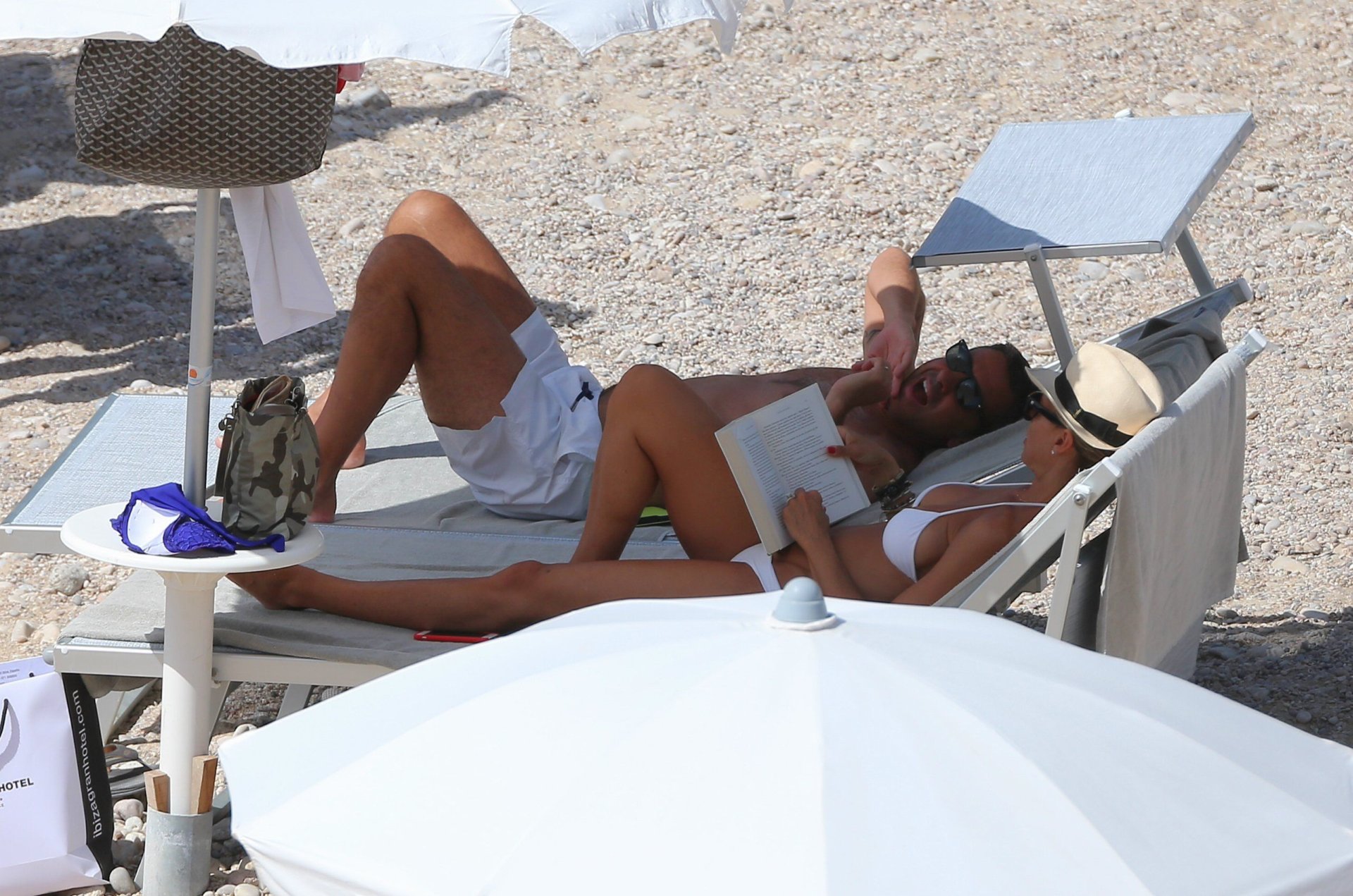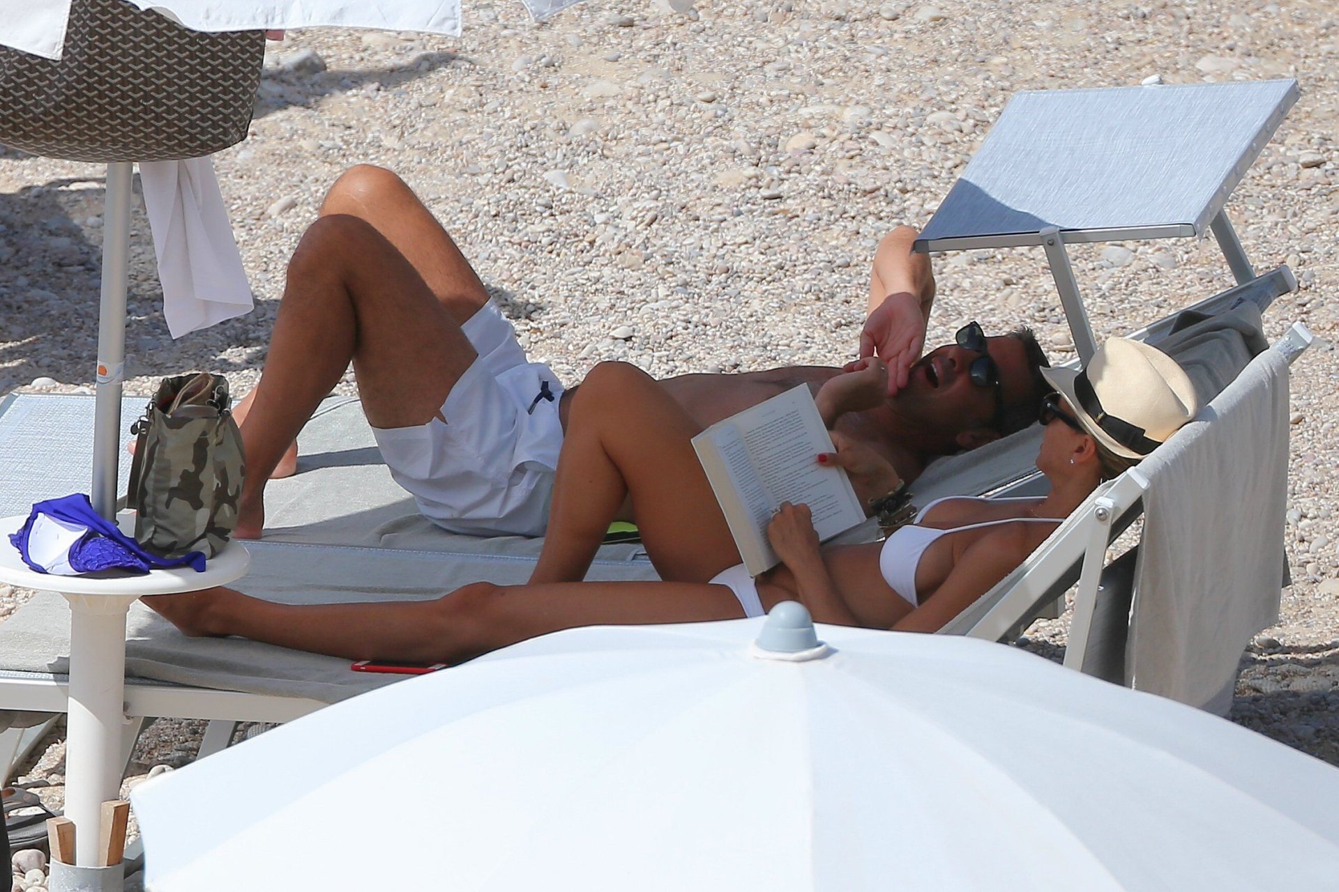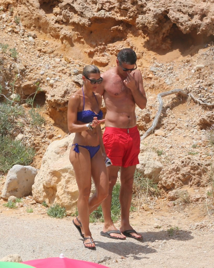 Martina Colombari e Alessandro Costacurta vistos em uma praia em Ibiza, 07/06/2017. Martina Colombari é uma atriz, modelo e apresentadora de televisão italiana. Idade: 42.