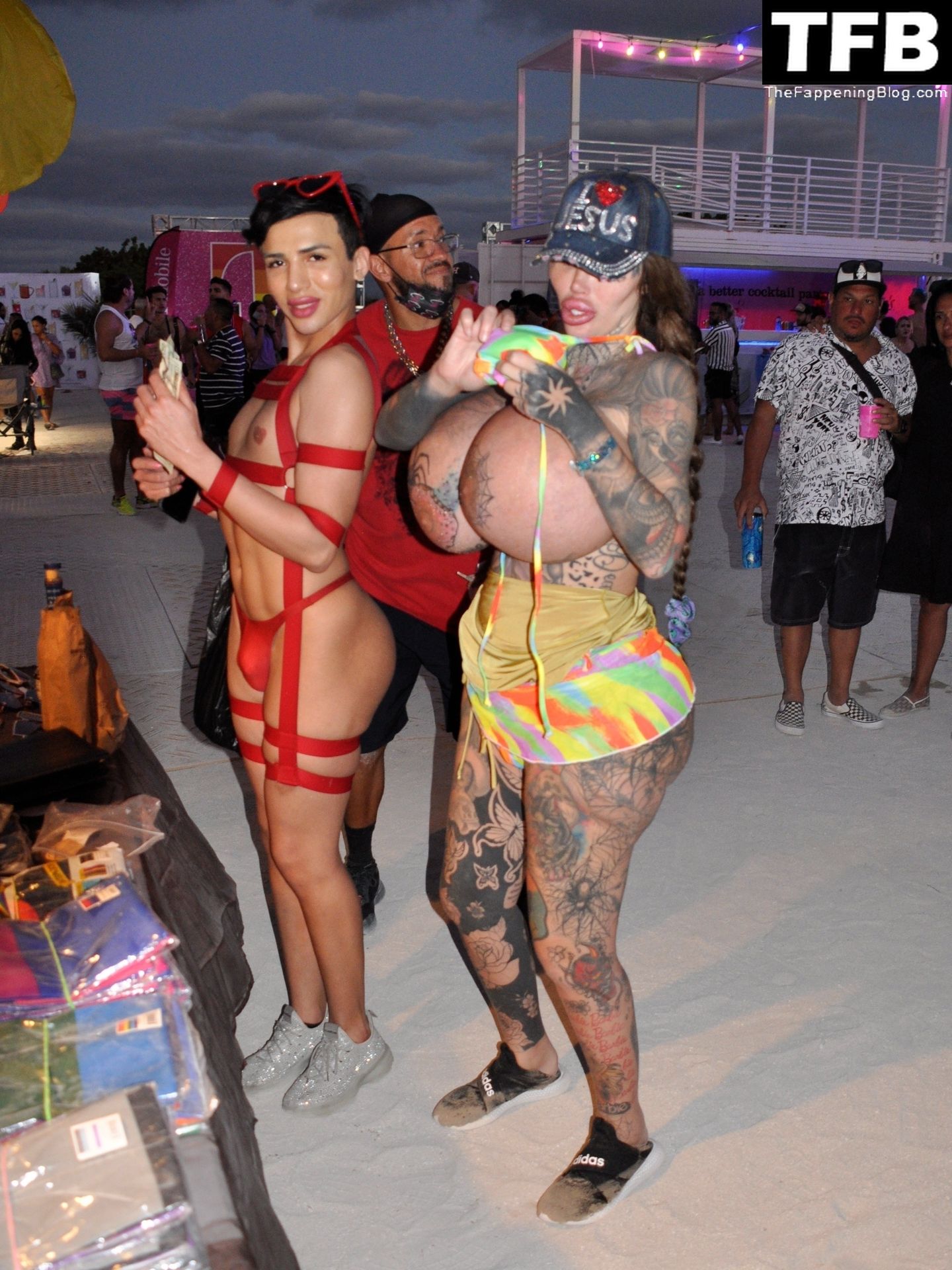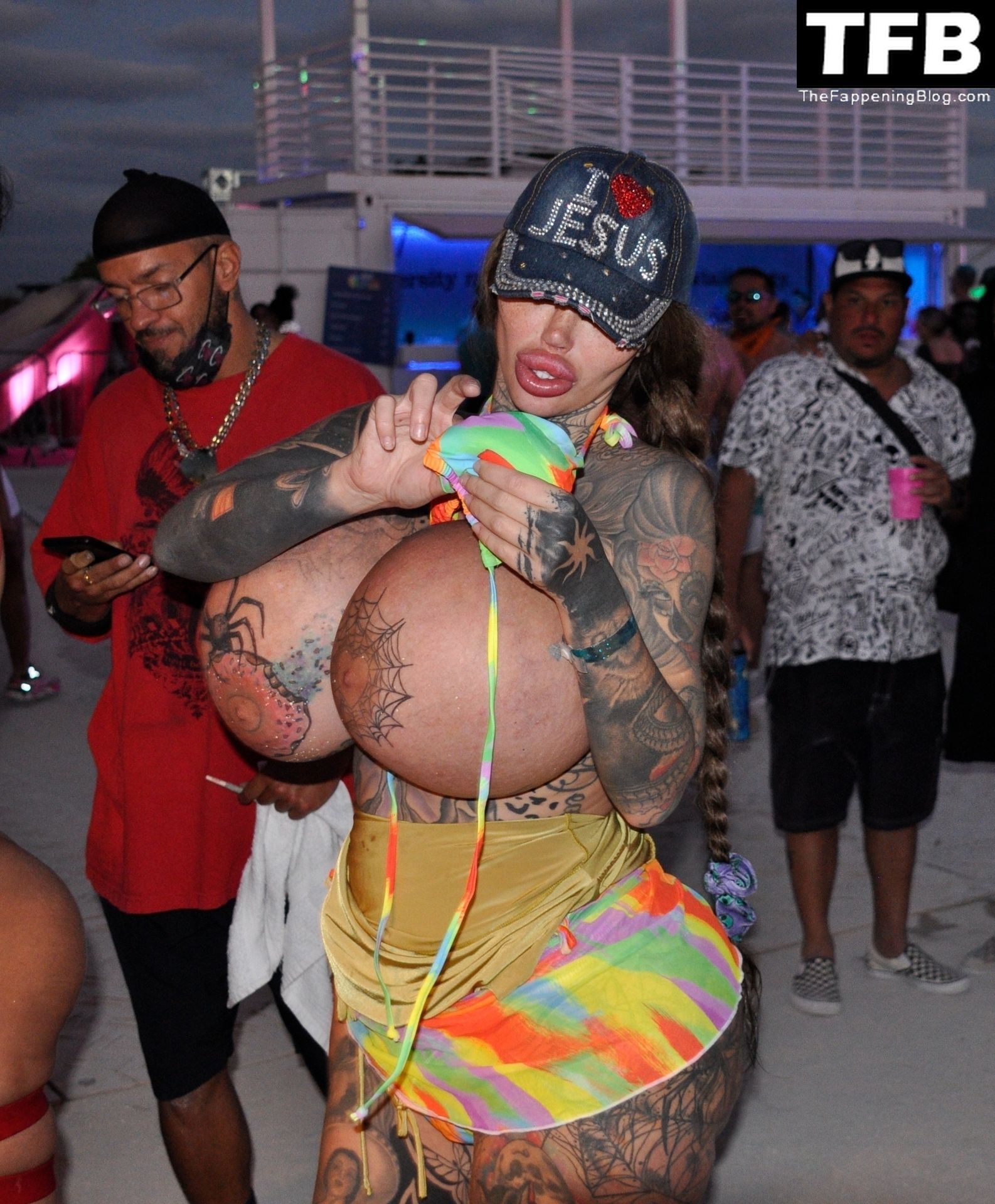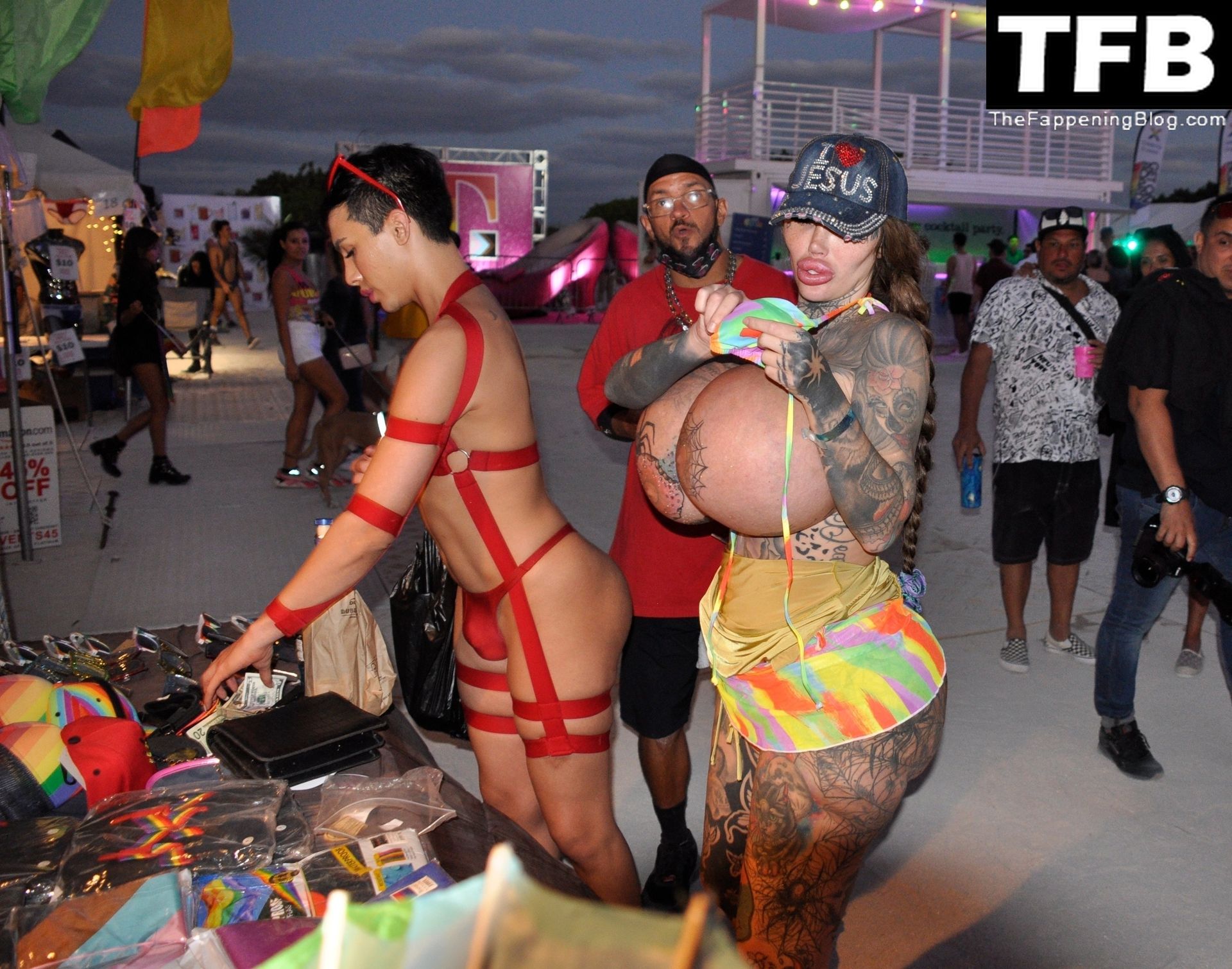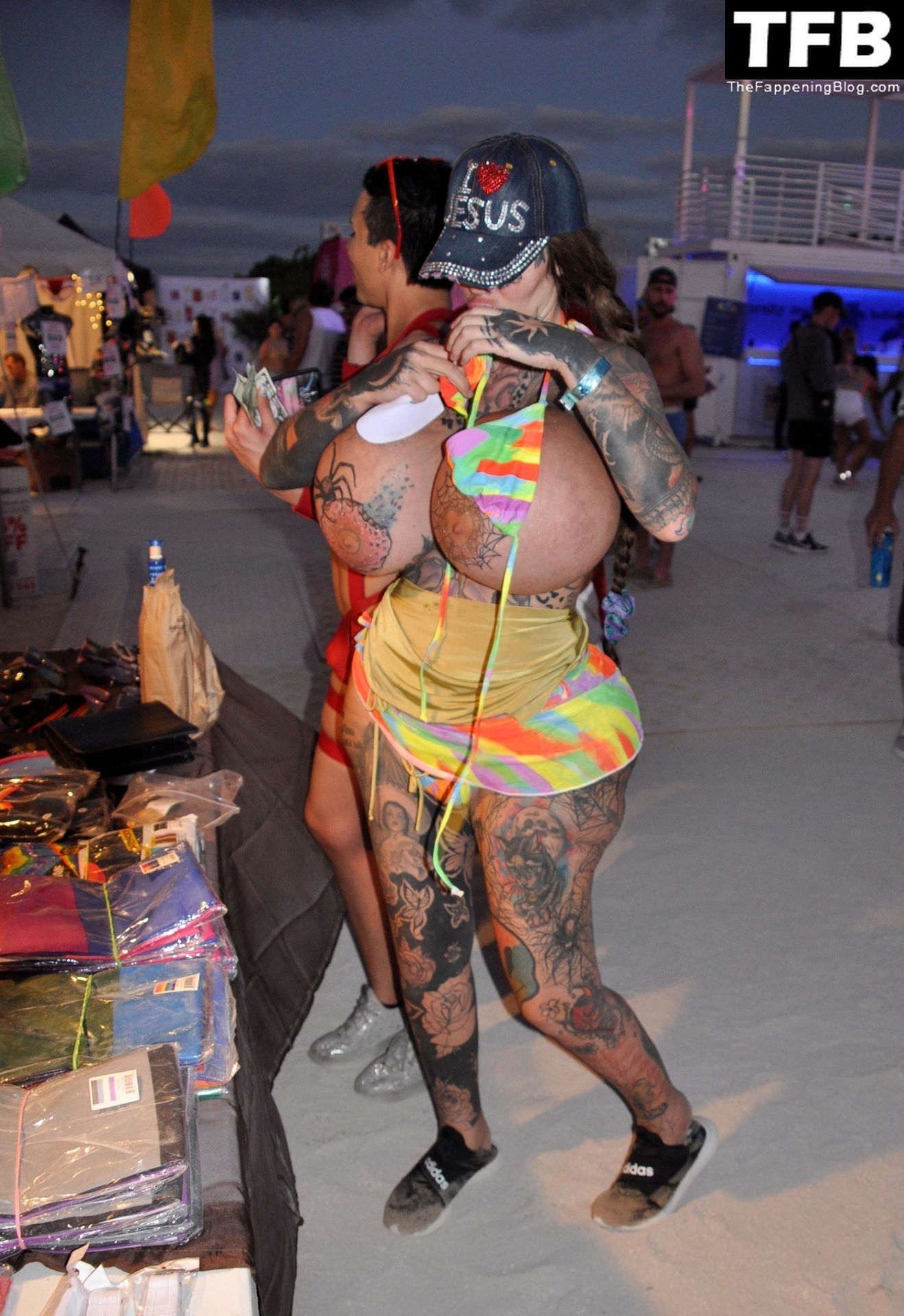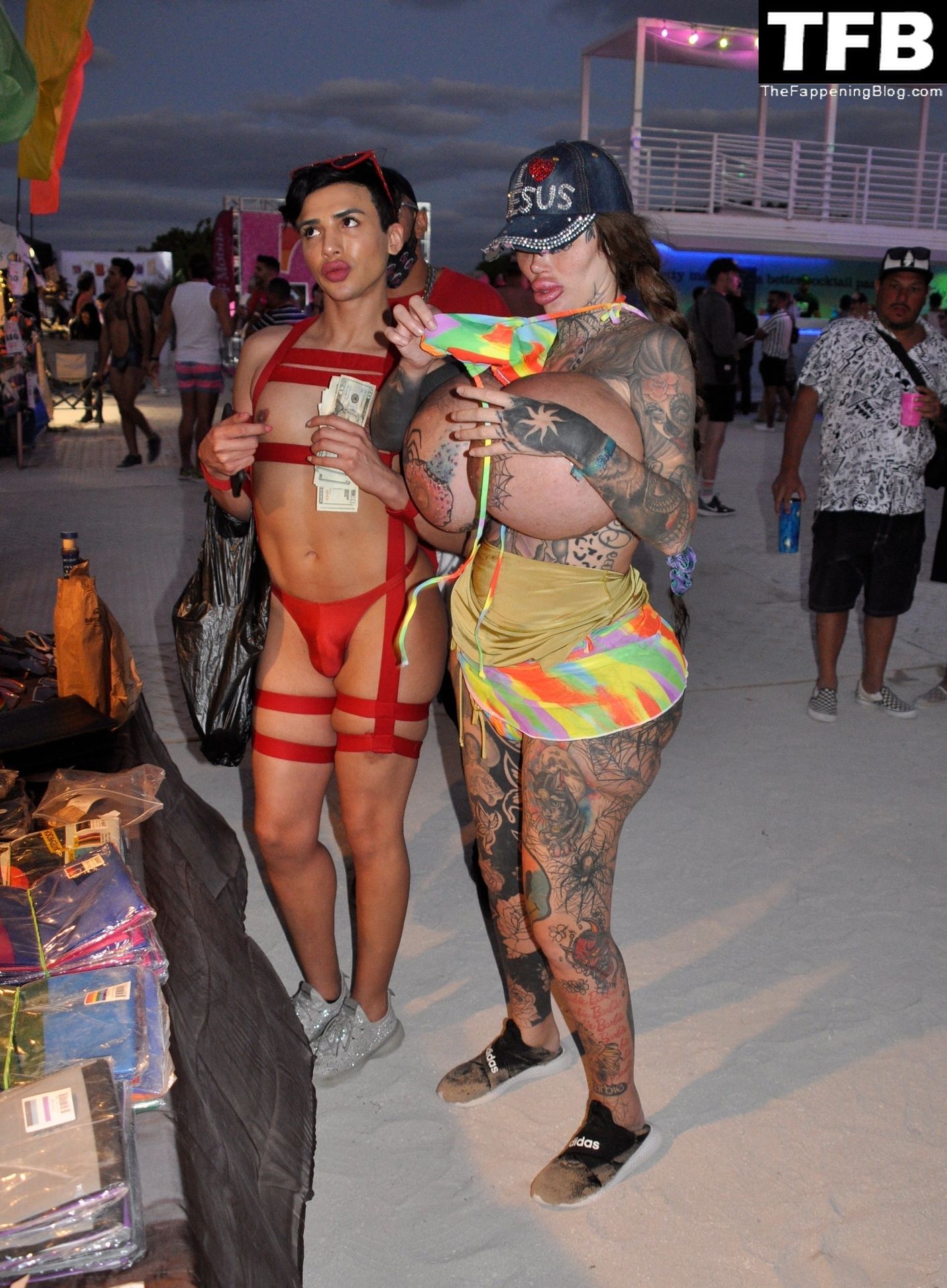 Ela estava no evento Miami Beach Pride em 10 de abril, quando ficou topless para experimentar um top de biquíni à venda em uma das barracas ao ar livre que ficava em público bem na praia na Ocean Drive, revelando seus seios enormes e mamilos tatuados.
