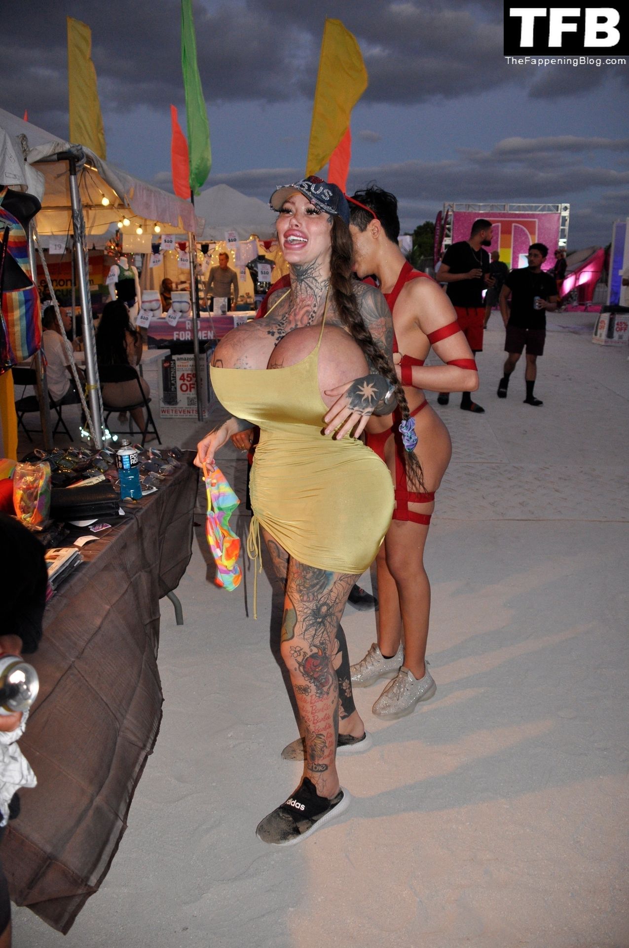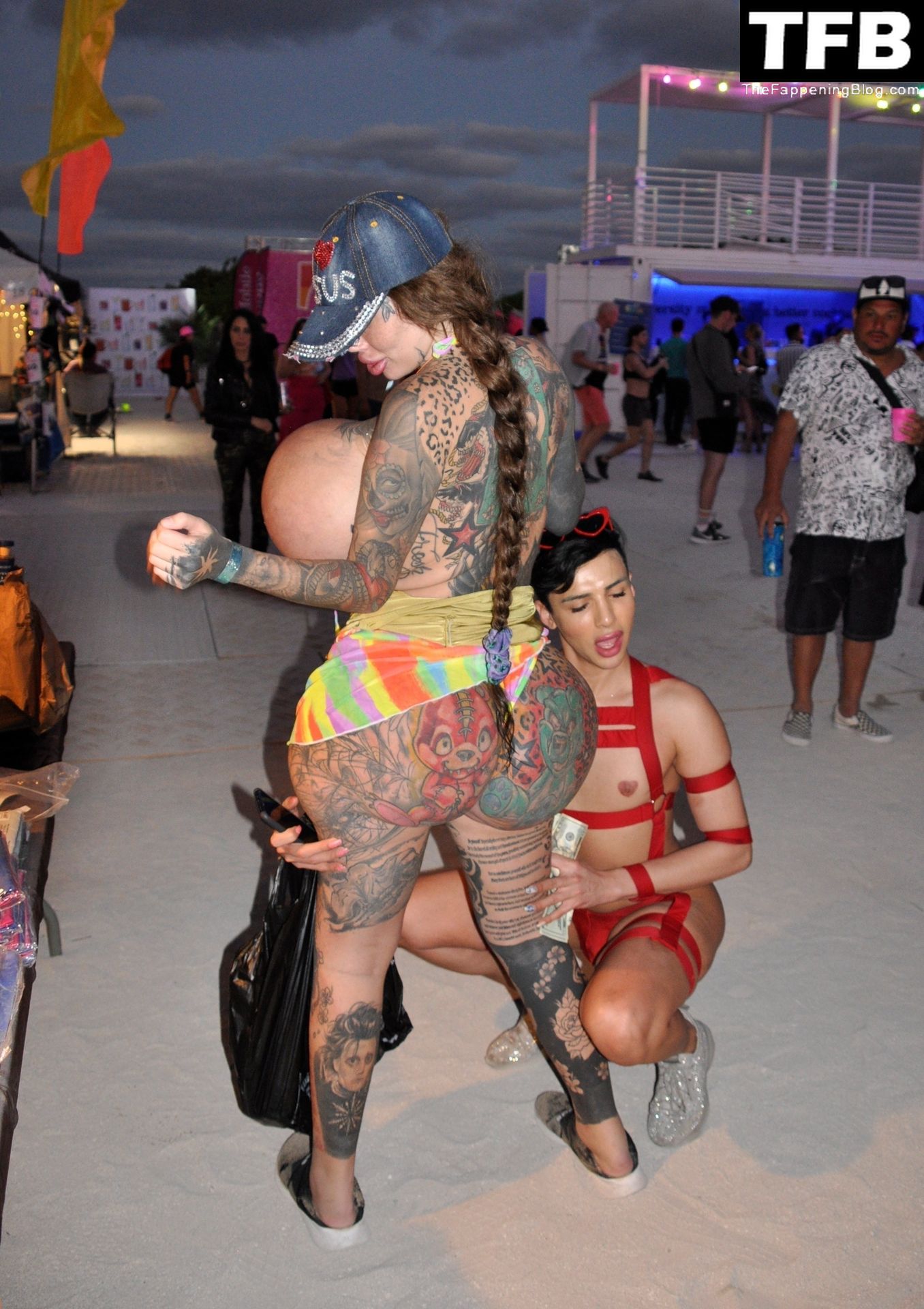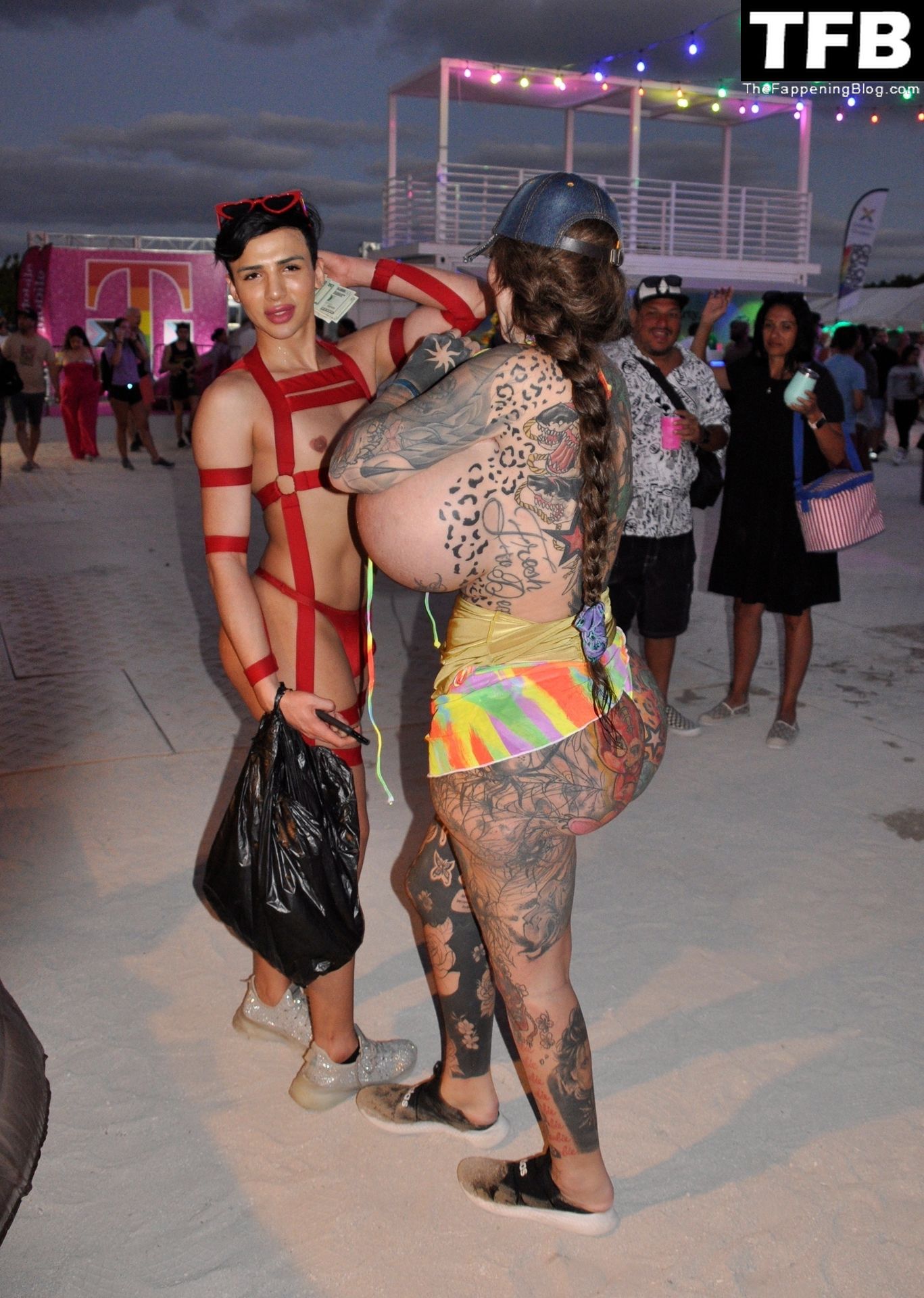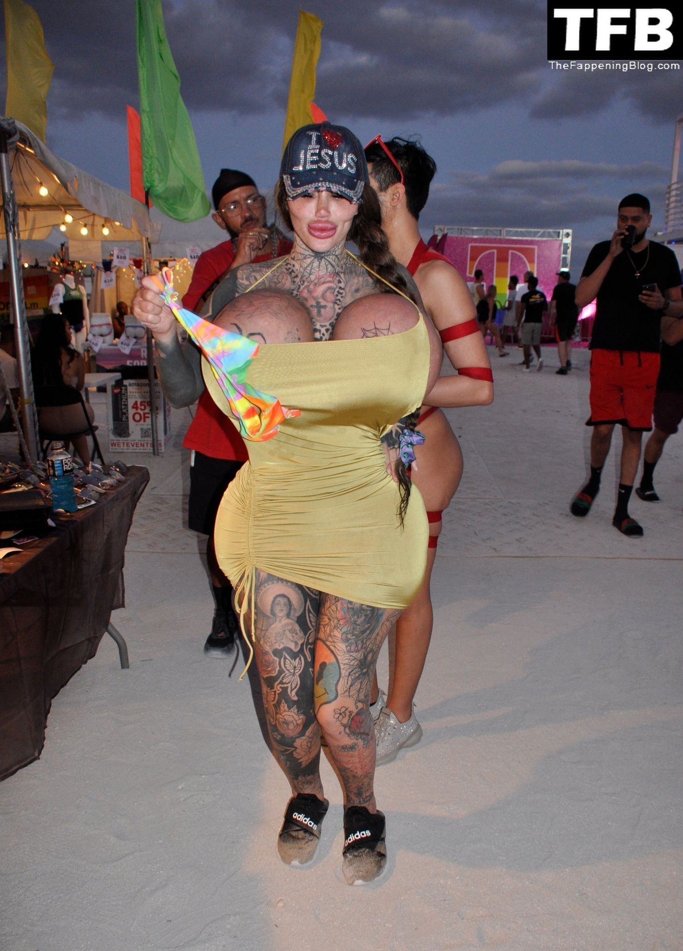 Ela estava no evento Miami Beach Pride em 10 de abril, quando ficou topless para experimentar um top de biquíni à venda em uma das barracas ao ar livre que ficava em público bem na praia na Ocean Drive, revelando seus seios enormes e mamilos tatuados.