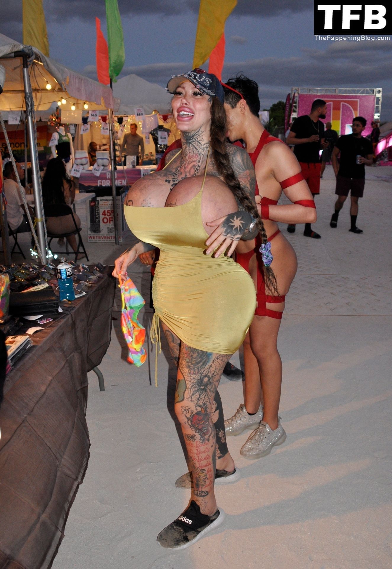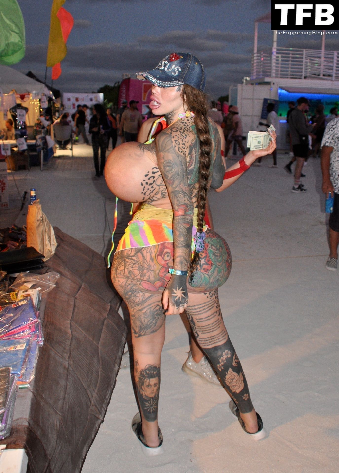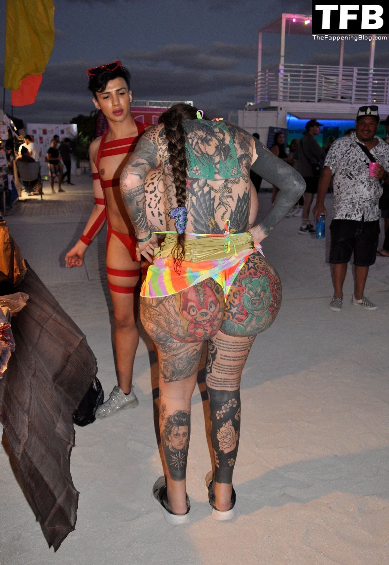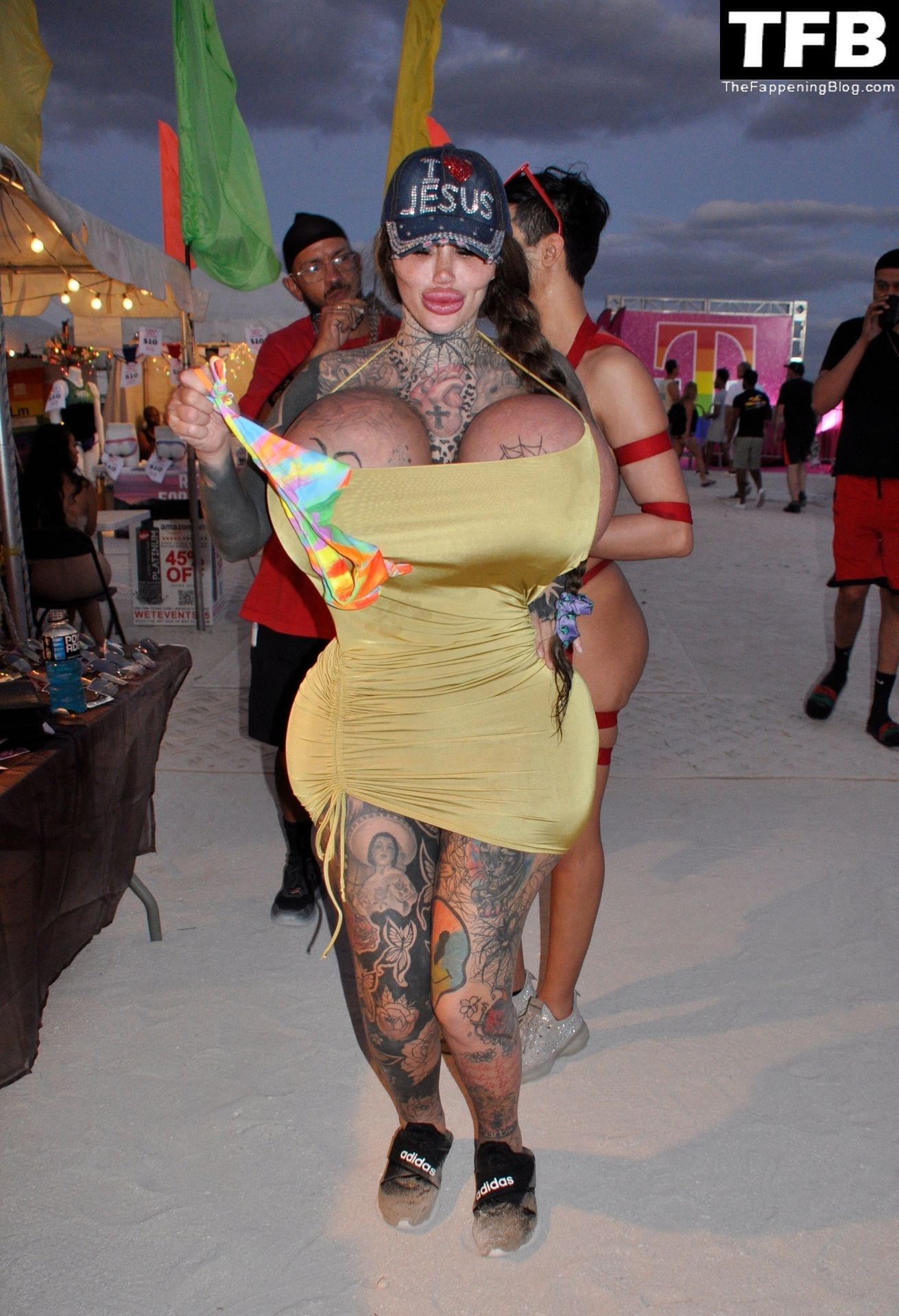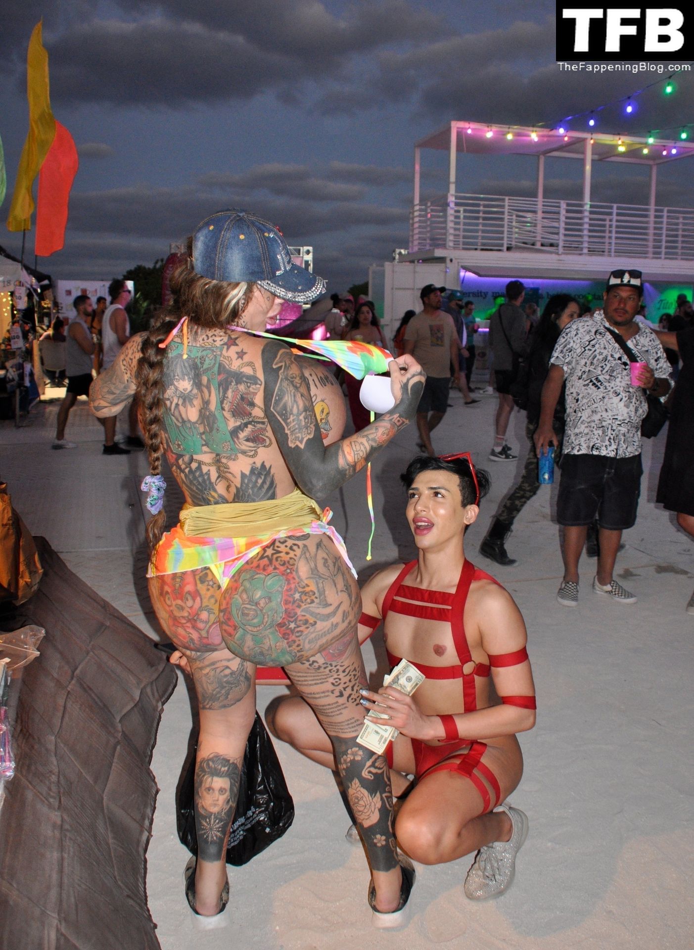 Ela estava no evento Miami Beach Pride em 10 de abril, quando ficou topless para experimentar um top de biquíni à venda em uma das barracas ao ar livre que ficava em público bem na praia na Ocean Drive, revelando seus seios enormes e mamilos tatuados.