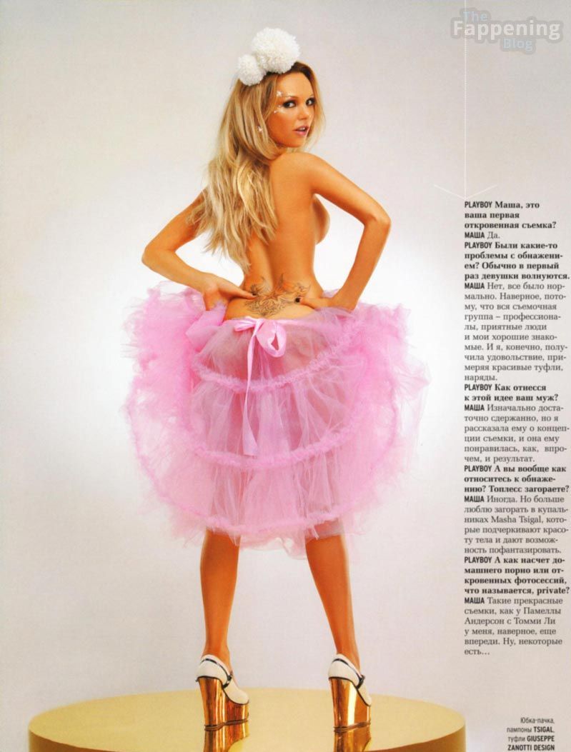 Masha Tsigal fez um ensaio fotográfico quente para a Playboy. A estilista posou nua como um anjo contra as nuvens, topless. A estrela nua parece confiante e sexy.